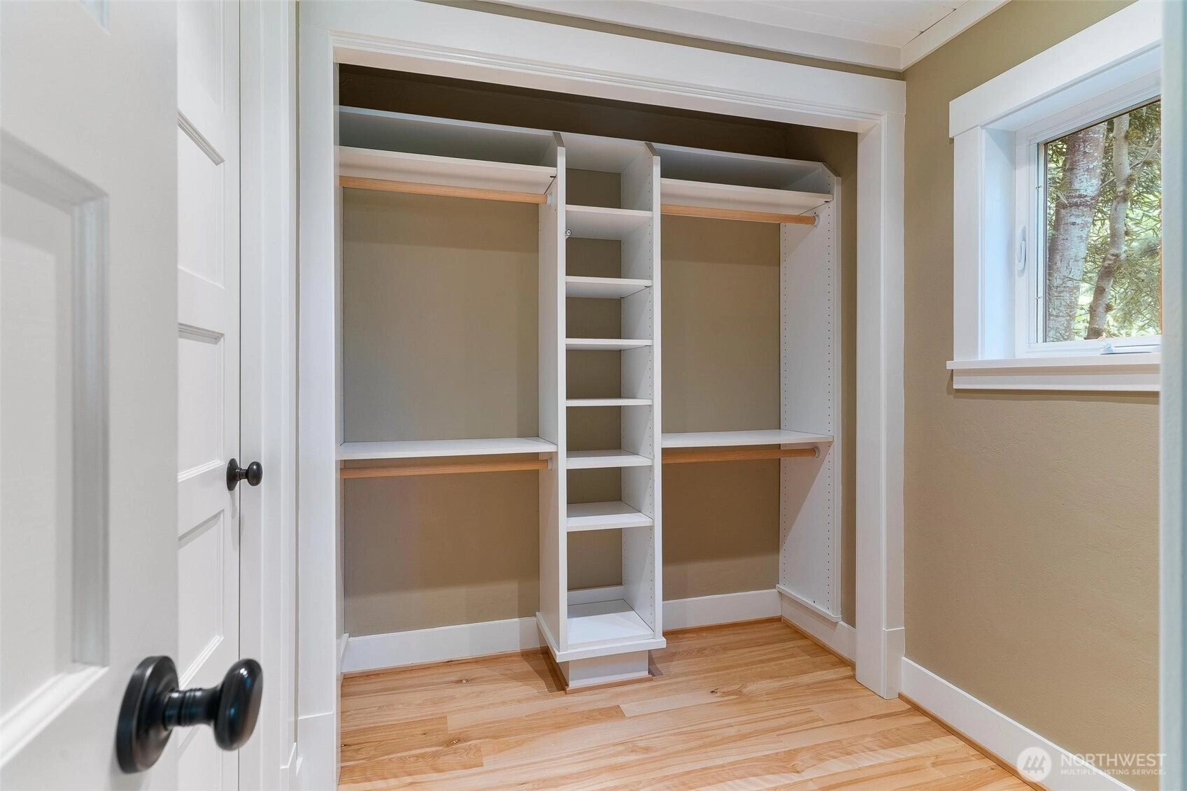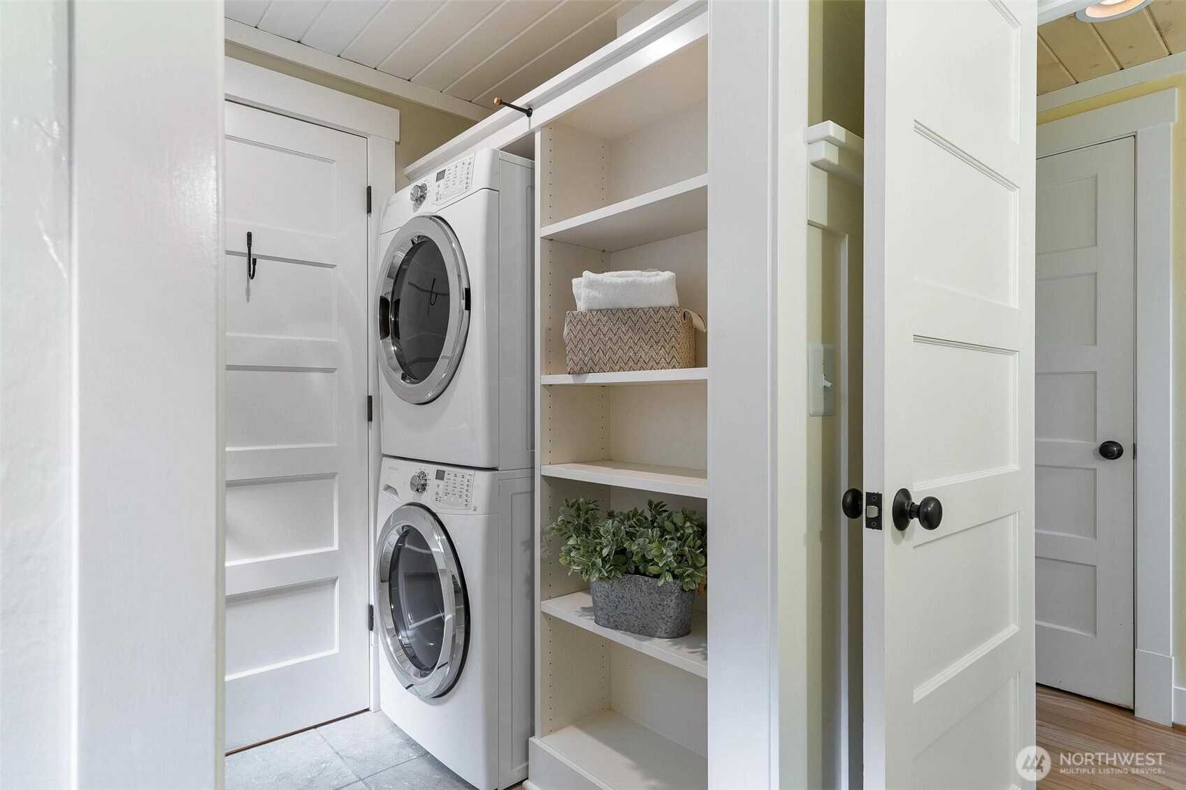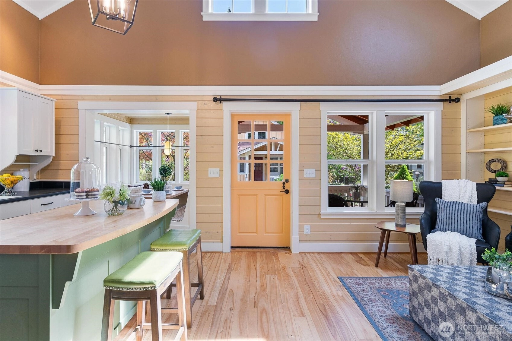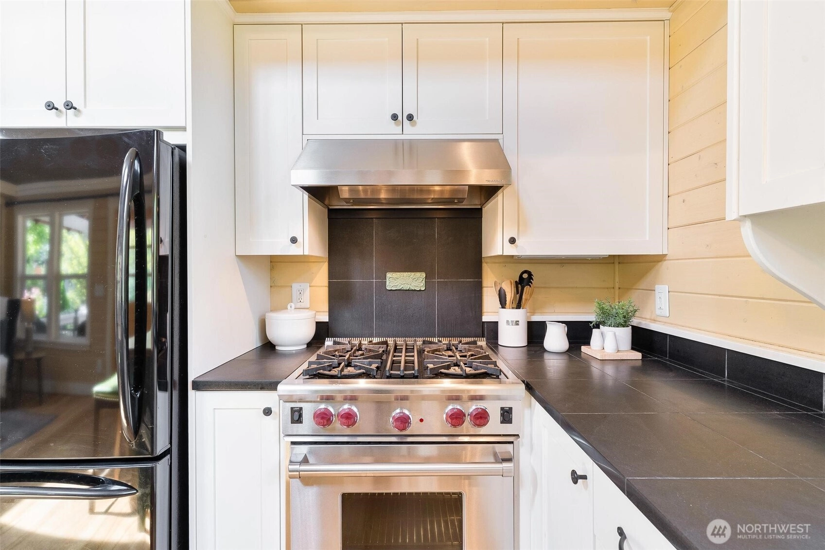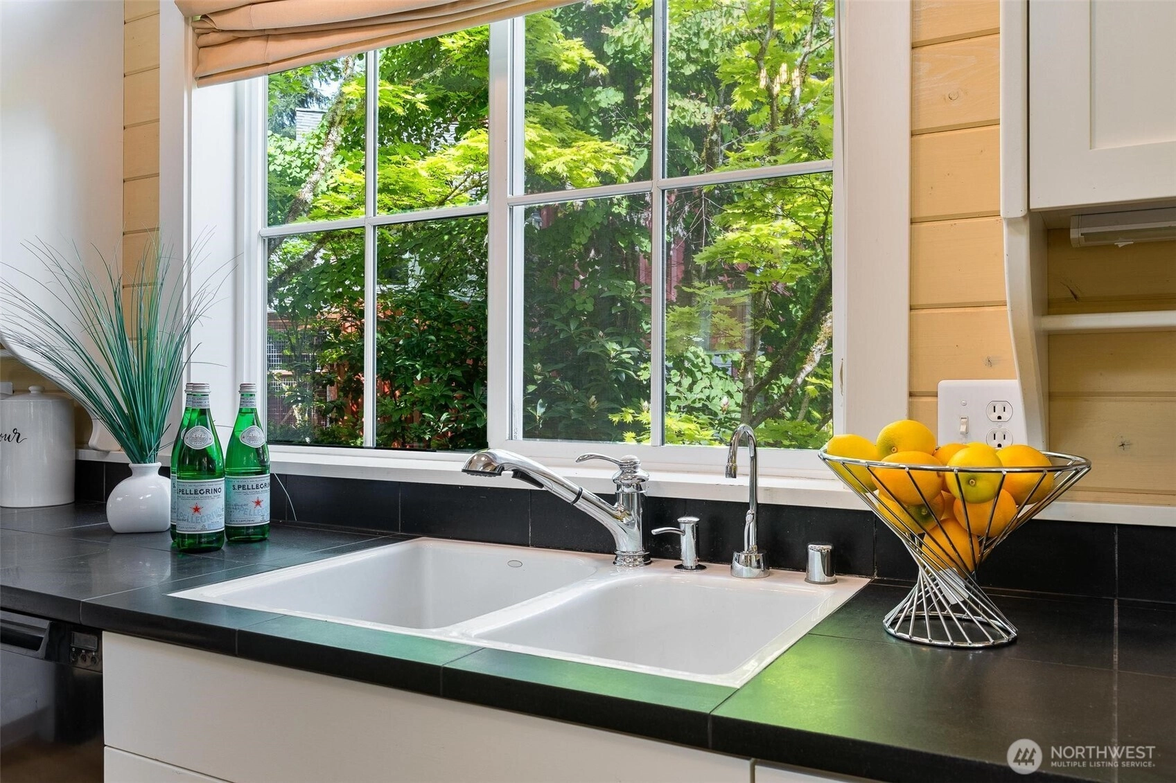 Conover Commons Cottages – Peaceful, private, and just minutes to Kirkland, Redmond, Microsoft, and nearby trails. Backing nearly 5 acres of protected woodland, this cottage blends charm with thoughtful updates. The main floor offers a bedroom, full bath, walk-in closet and a slider that opens to a private deck with tranquil forest views. The open kitchen features a maple island, Wolf range, matte granite counters, and stainless steel appliances. A cozy living room is flanked by a gas fireplace, creating a warm and inviting atmosphere. Upstairs, a spacious loft serves as a second bedroom with its own ¾ bathroom—perfect for guests or a home office. Enjoy the storybook front porch, lush gardens, and low-maintenance landscaping.