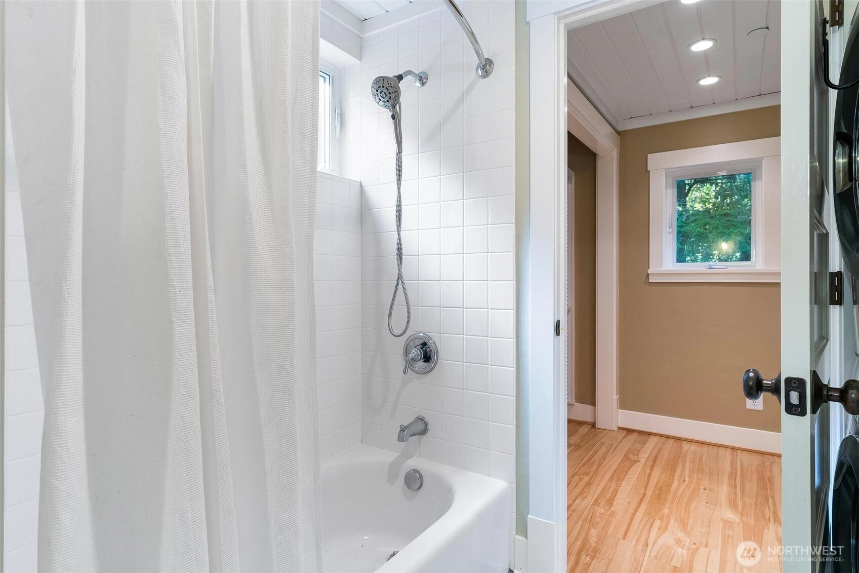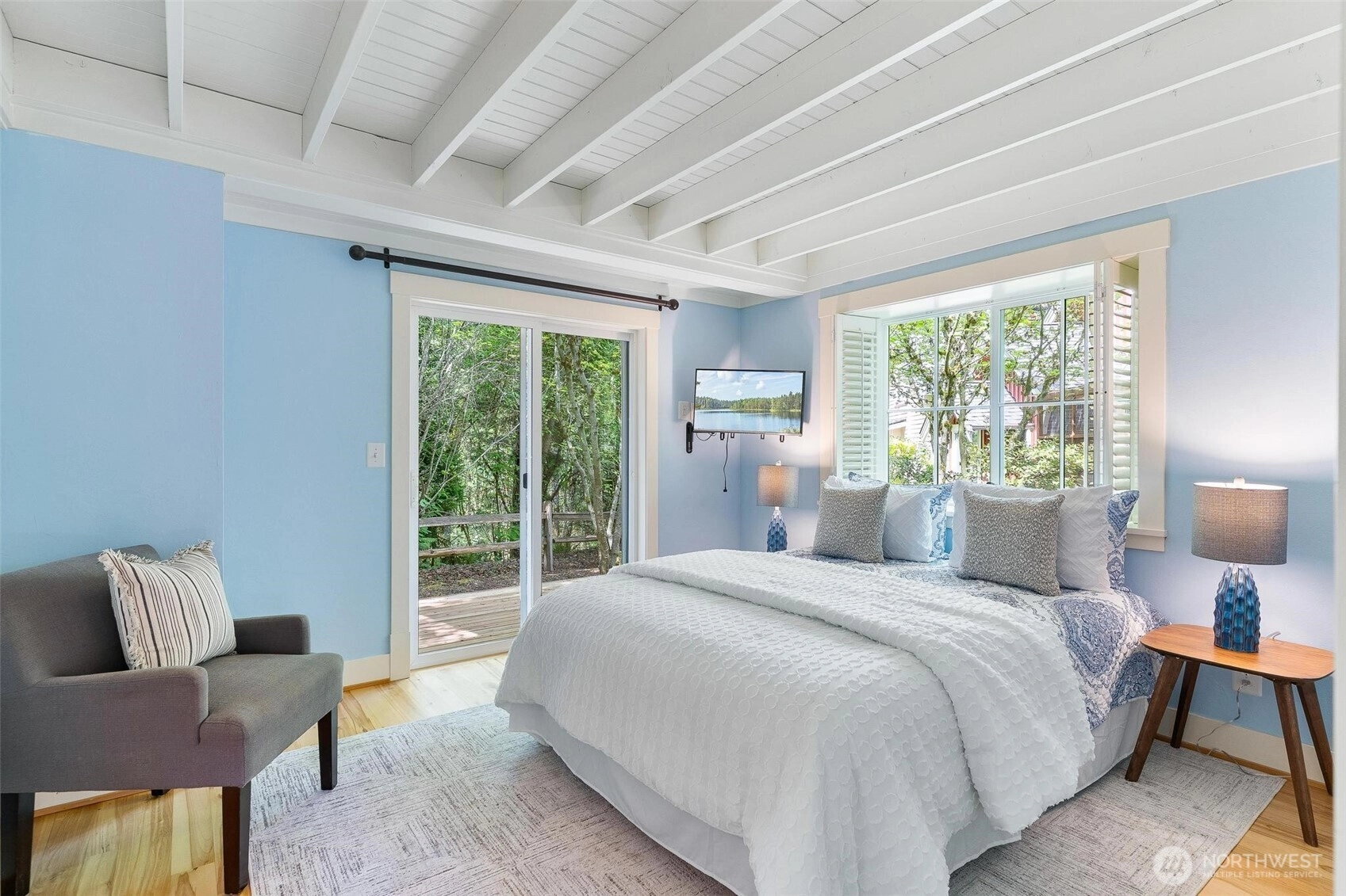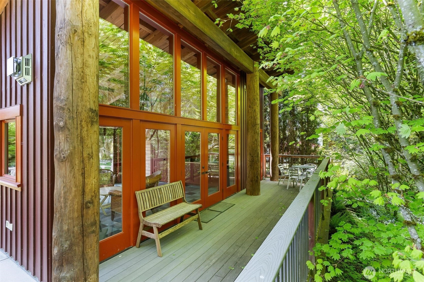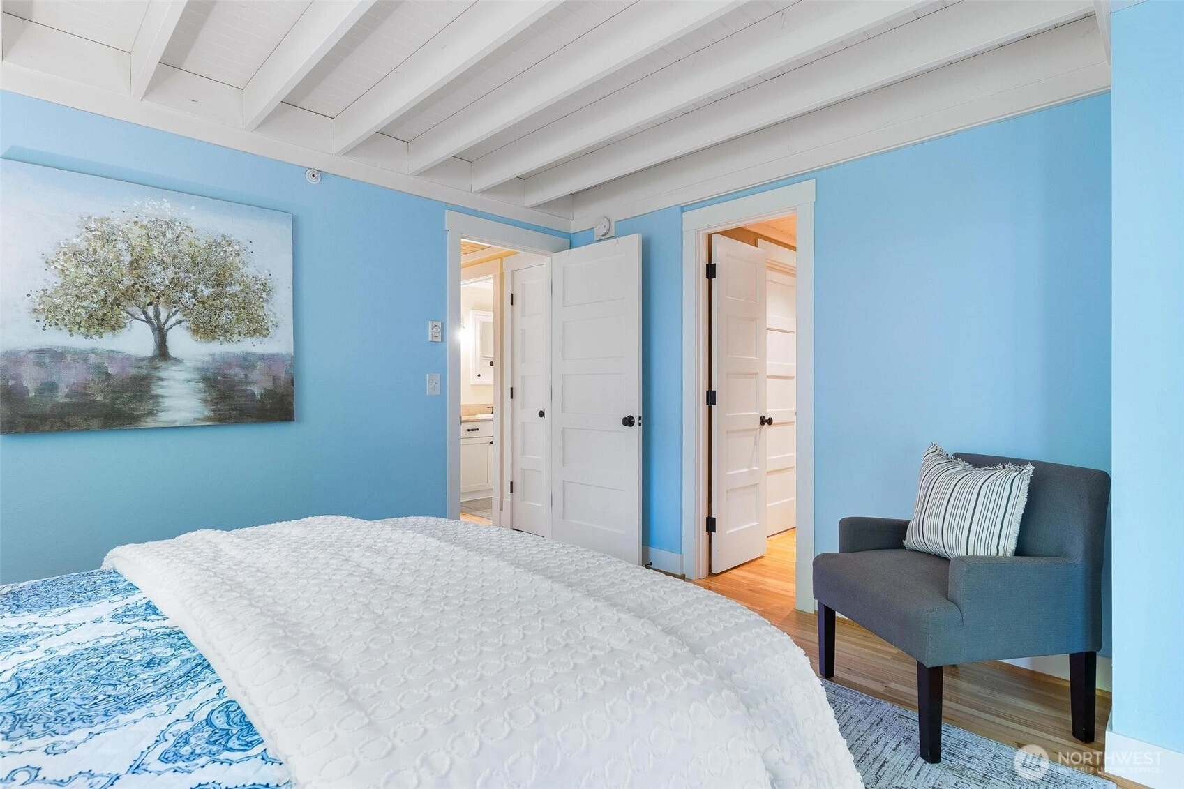 Conover Commons Cottages – Peaceful, private, and just minutes to Kirkland, Redmond, Microsoft, and nearby trails. Backing nearly 5 acres of protected woodland, this cottage blends charm with thoughtful updates. The main floor offers a bedroom, full bath, walk-in closet and a slider that opens to a private deck with tranquil forest views. The open kitchen features a maple island, Wolf range, matte granite counters, and stainless steel appliances. A cozy living room is flanked by a gas fireplace, creating a warm and inviting atmosphere. Upstairs, a spacious loft serves as a second bedroom with its own ¾ bathroom—perfect for guests or a home office. Enjoy the storybook front porch, lush gardens, and low-maintenance landscaping.