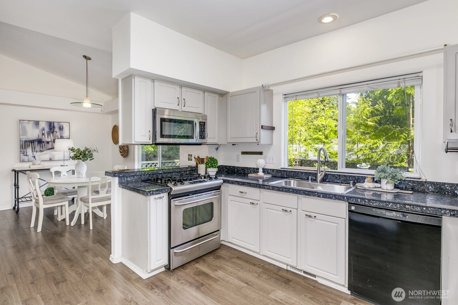 Welcome to this beautifully maintained 3-bedroom, 2 & 1/2 - bath townhouse with over 1,400 sf of comfortable living. Ideally located less than a mile from the Lynnwood Light Rail Station, this home provides the perfect blend of convenience and comfort. Inside, find an open floor plan with generous living spaces & thoughtful updates throughout. A functional kitchen features granite tile countertops & SS appliances, flowing seamlessly into the dining & living areas. Upstairs, enjoy the secluded primary bedroom with ensuite & walk-in closet, two additional bedrooms, full bathroom, and laundry. Step outside to a fenced patio with space for gardening & outdoor entertaining. Attached 2-car garage offers secure parking. Edmonds School District.