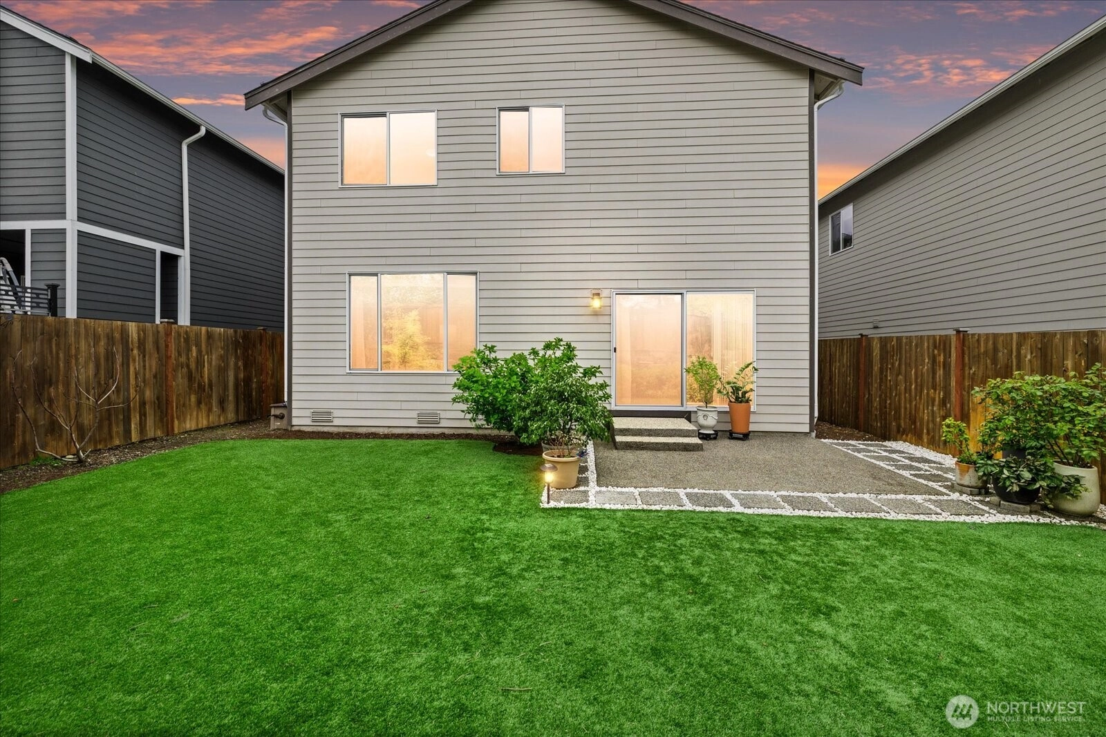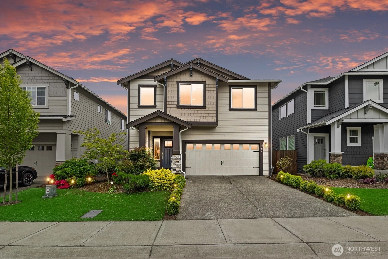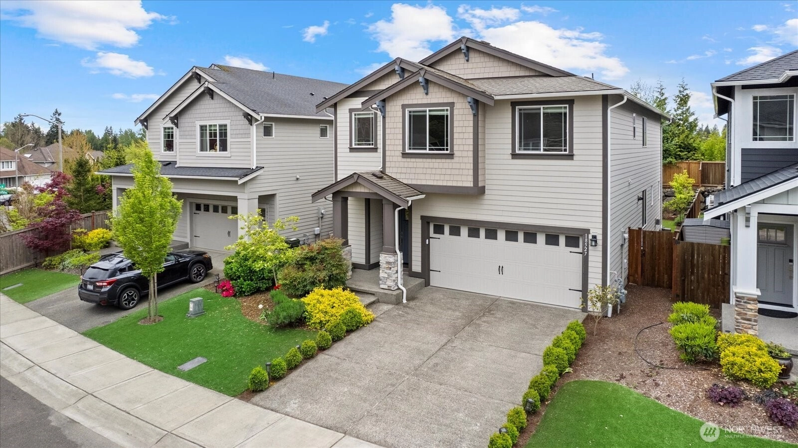 Welcome to this beautifully maintained two-story home with modern upgrades throughout! Enjoy year-round greenery in the backyard with premium turf for minimal upkeep. The open-concept main floor features a stylish kitchen that flows into a bright living and dining area filled with natural light. Upstairs includes a spacious bonus room, a generous primary suite with a 5-piece bath, three additional bedrooms, a full bath, and a laundry room. Smart home features like a smart thermostat and lighting, plus an EV charger in the garage, bring added convenience. Located in a quiet, well-kept community with easy access to parks, schools, and highways, this home blends comfort, functionality, and low-maintenance living.