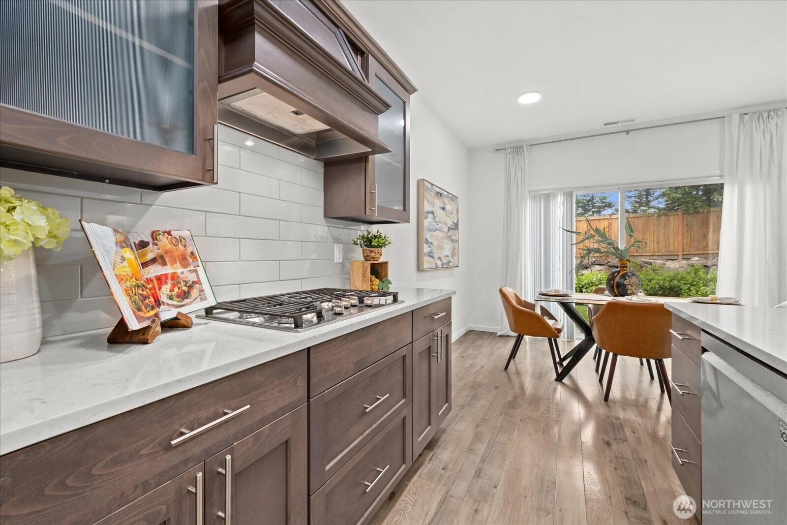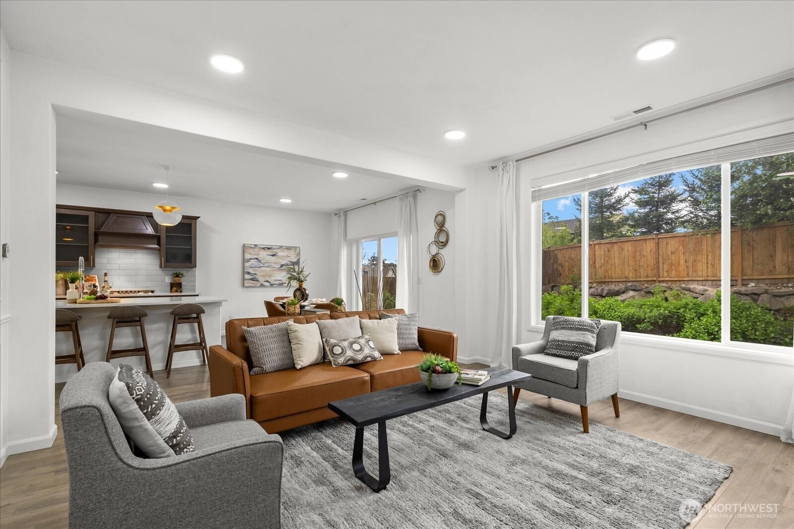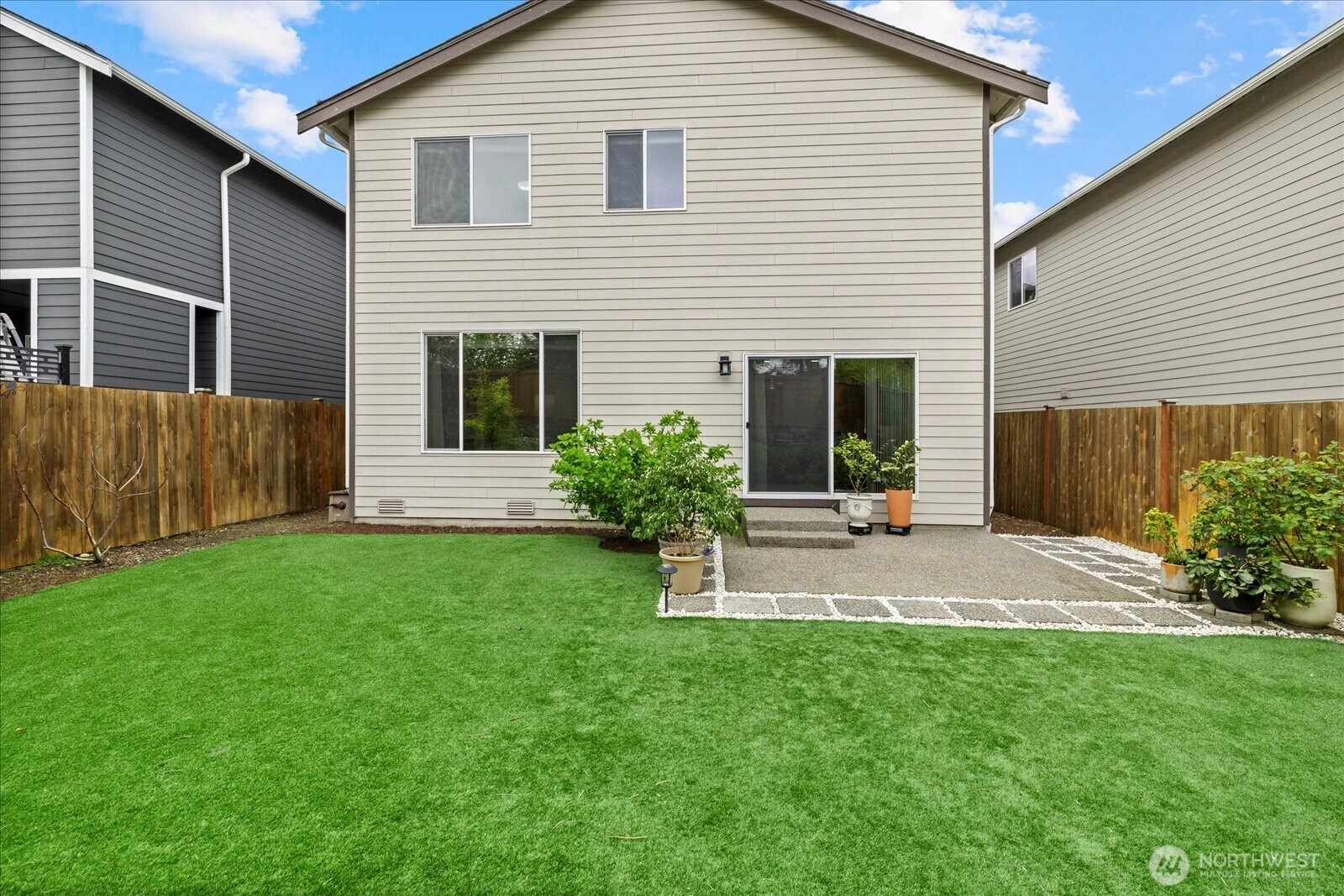 Welcome to this beautifully maintained two-story home with modern upgrades throughout! Enjoy year-round greenery in the backyard with premium turf for minimal upkeep. The open-concept main floor features a stylish kitchen that flows into a bright living and dining area filled with natural light. Upstairs includes a spacious bonus room, a generous primary suite with a 5-piece bath, three additional bedrooms, a full bath, and a laundry room. Smart home features like a smart thermostat and lighting, plus an EV charger in the garage, bring added convenience. Located in a quiet, well-kept community with easy access to parks, schools, and highways, this home blends comfort, functionality, and low-maintenance living.