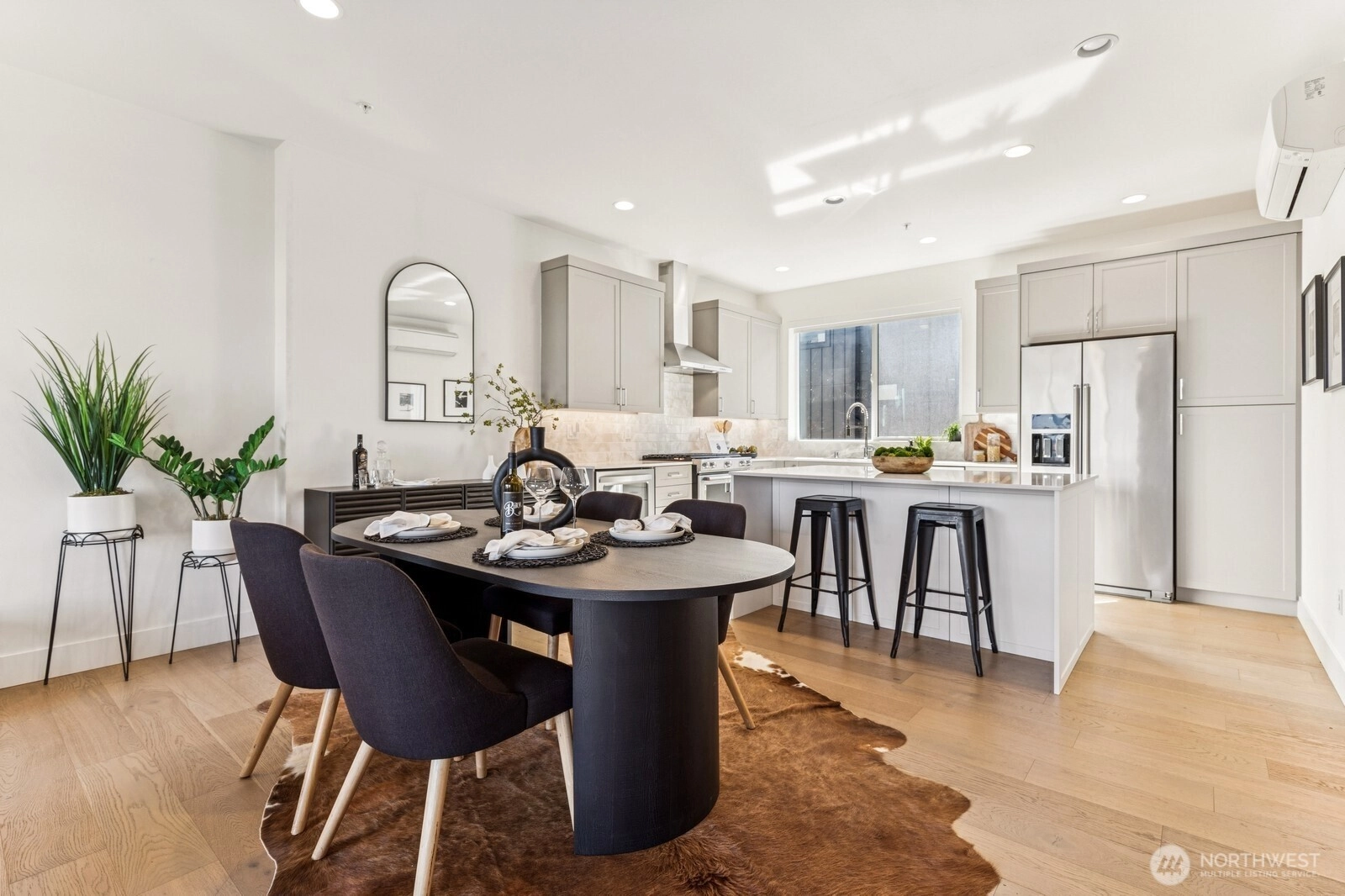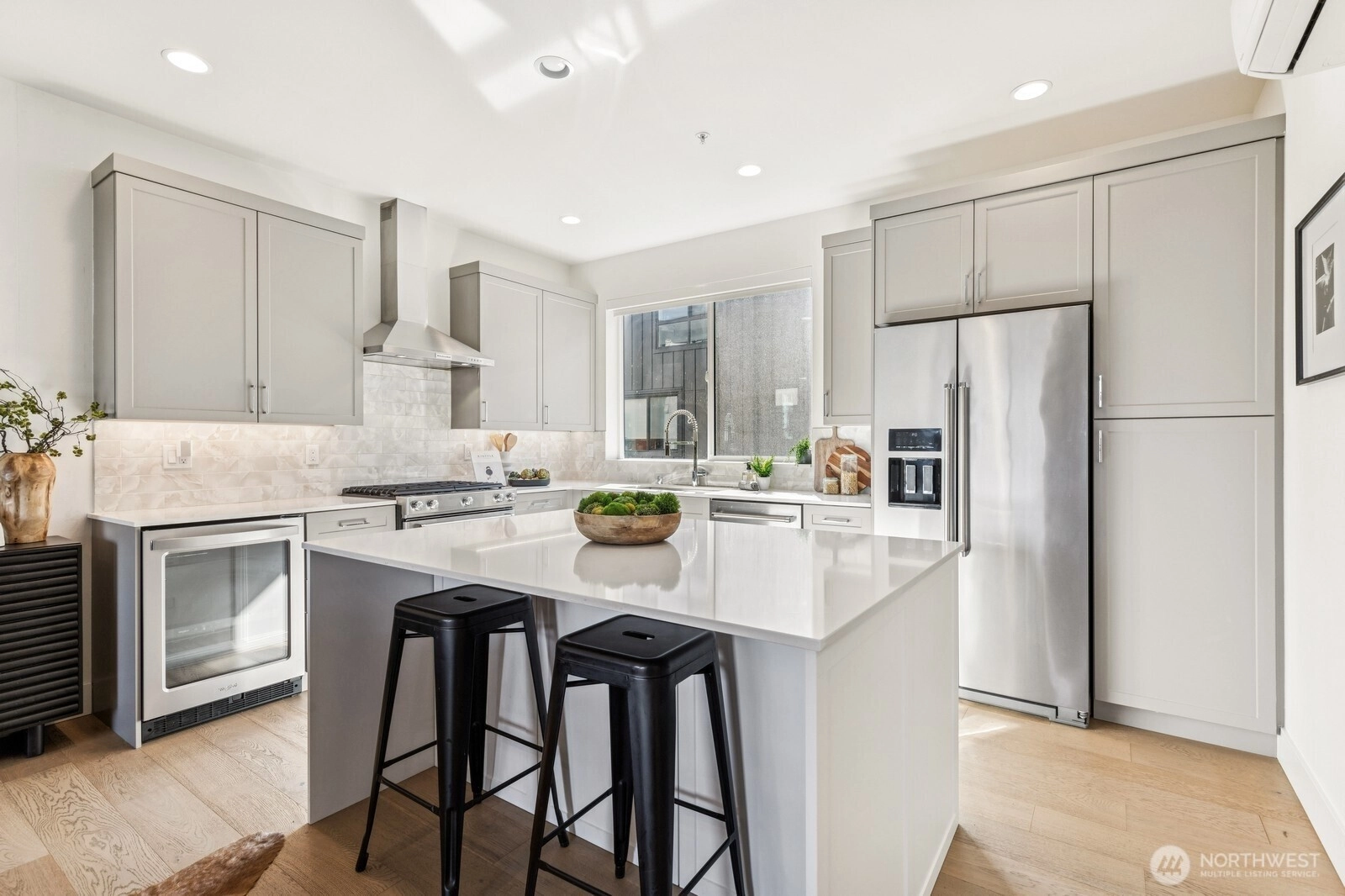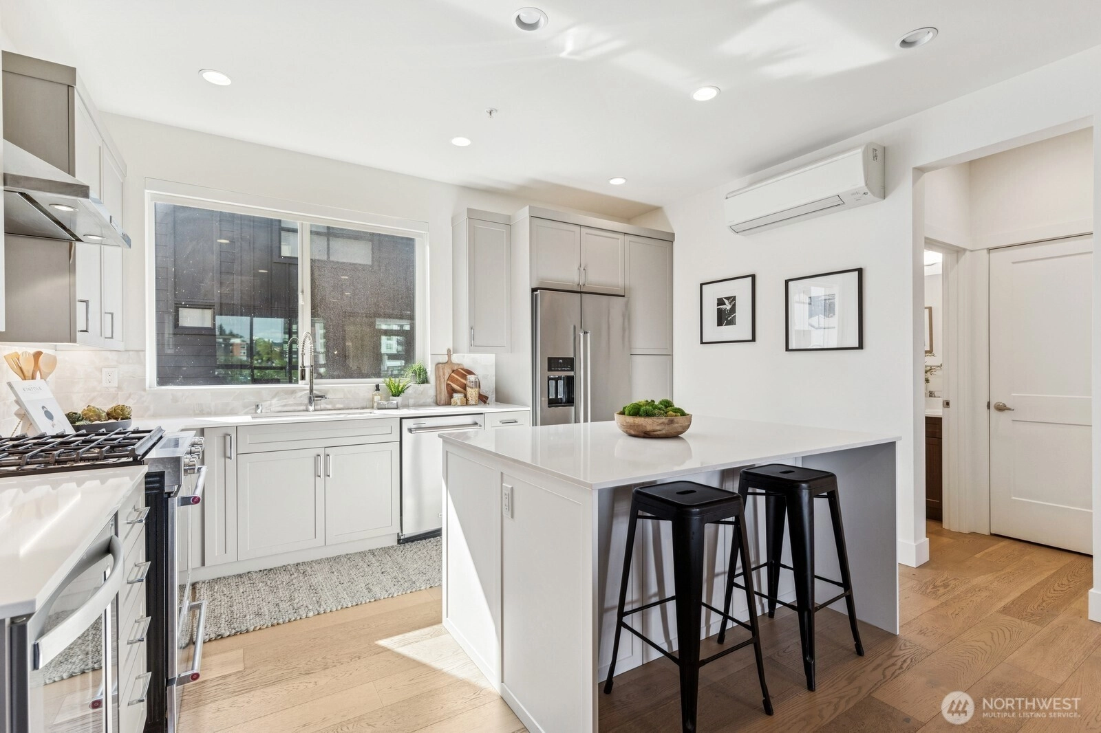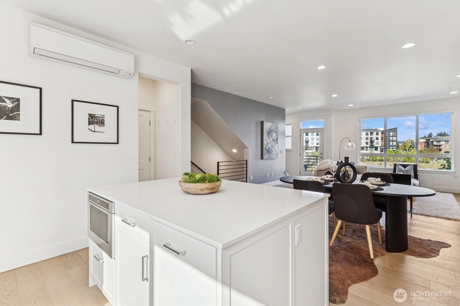 Live at the Landing in downtown Bothell. You will feel right at home in this beautiful bright 1,632 Sq Ft, 3 bedroom, 2.5 bath townhome. Spacious east-facing great room with large windows. The chef's kitchen includes quartz counters, tile backsplash, and an oversized island with seating. SS appliances and wine cabinet. Dining area off the kitchen. 3/4 bath & covered patio as well. Head up to primary w massive W/I closet and spa-like 3/4 bath + floating cabinets w/under cabinet lighting. Another nice-sized bedroom w/a full bath. Office or 3rd bedroom on entry-level is private and away from main living. 2 car garage w/electric car charger. 9 ft ceilings, AC. Walk to nearby green spaces, parks, and trails. Northshore schools! EZ access to 405.