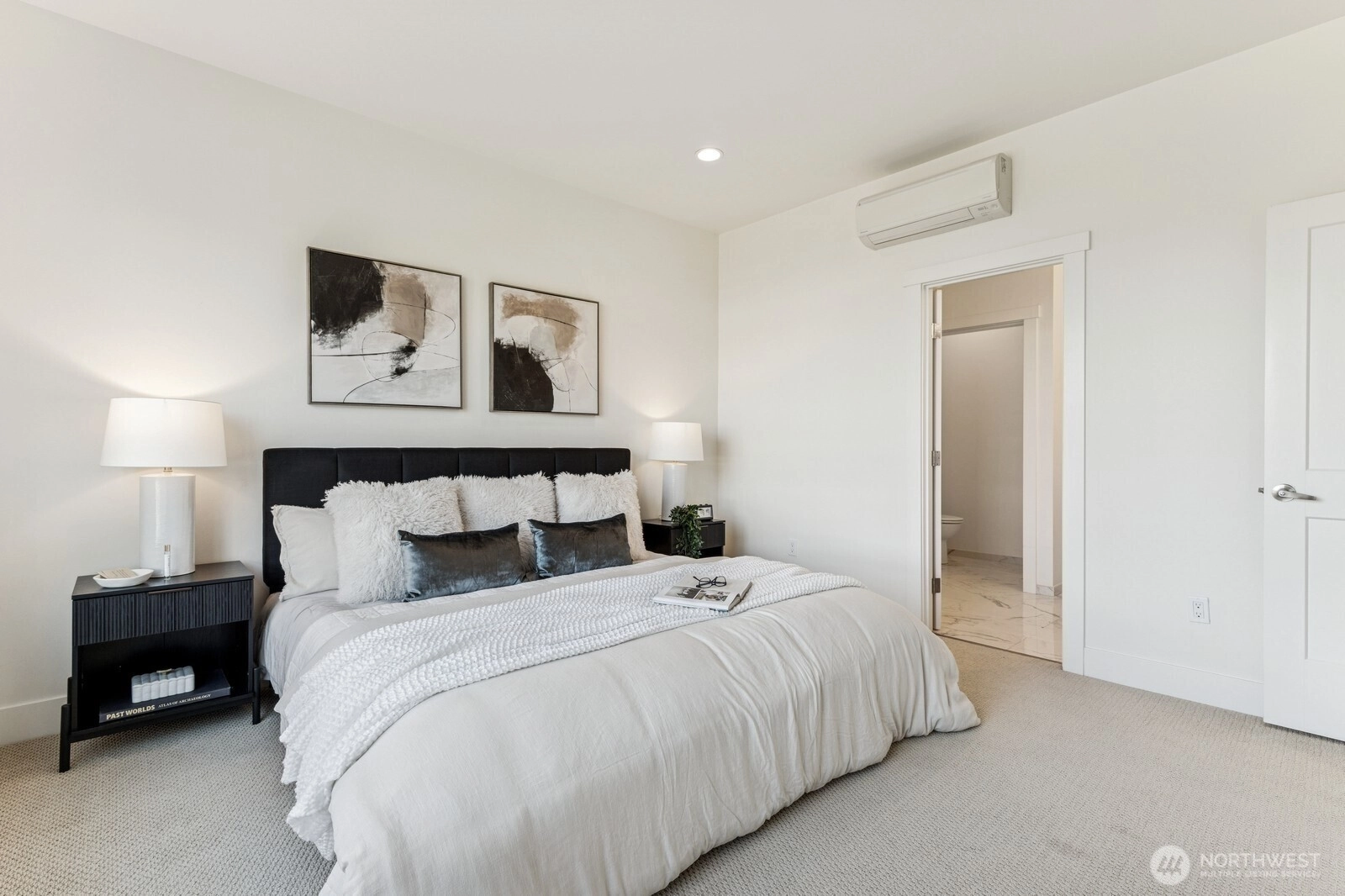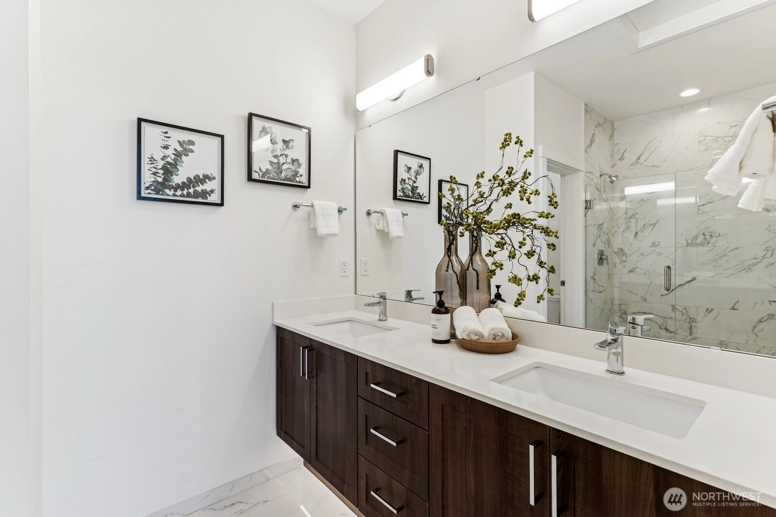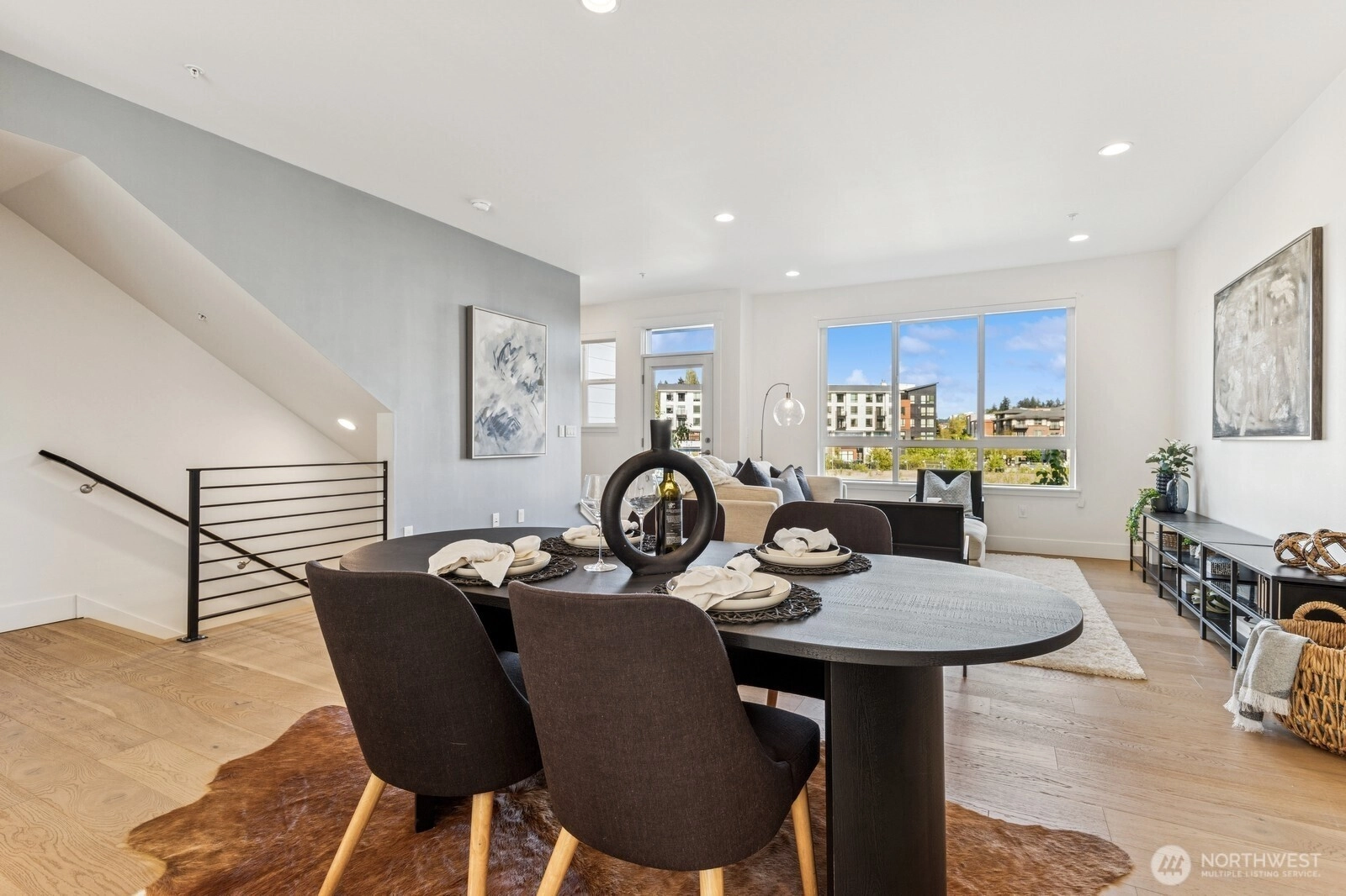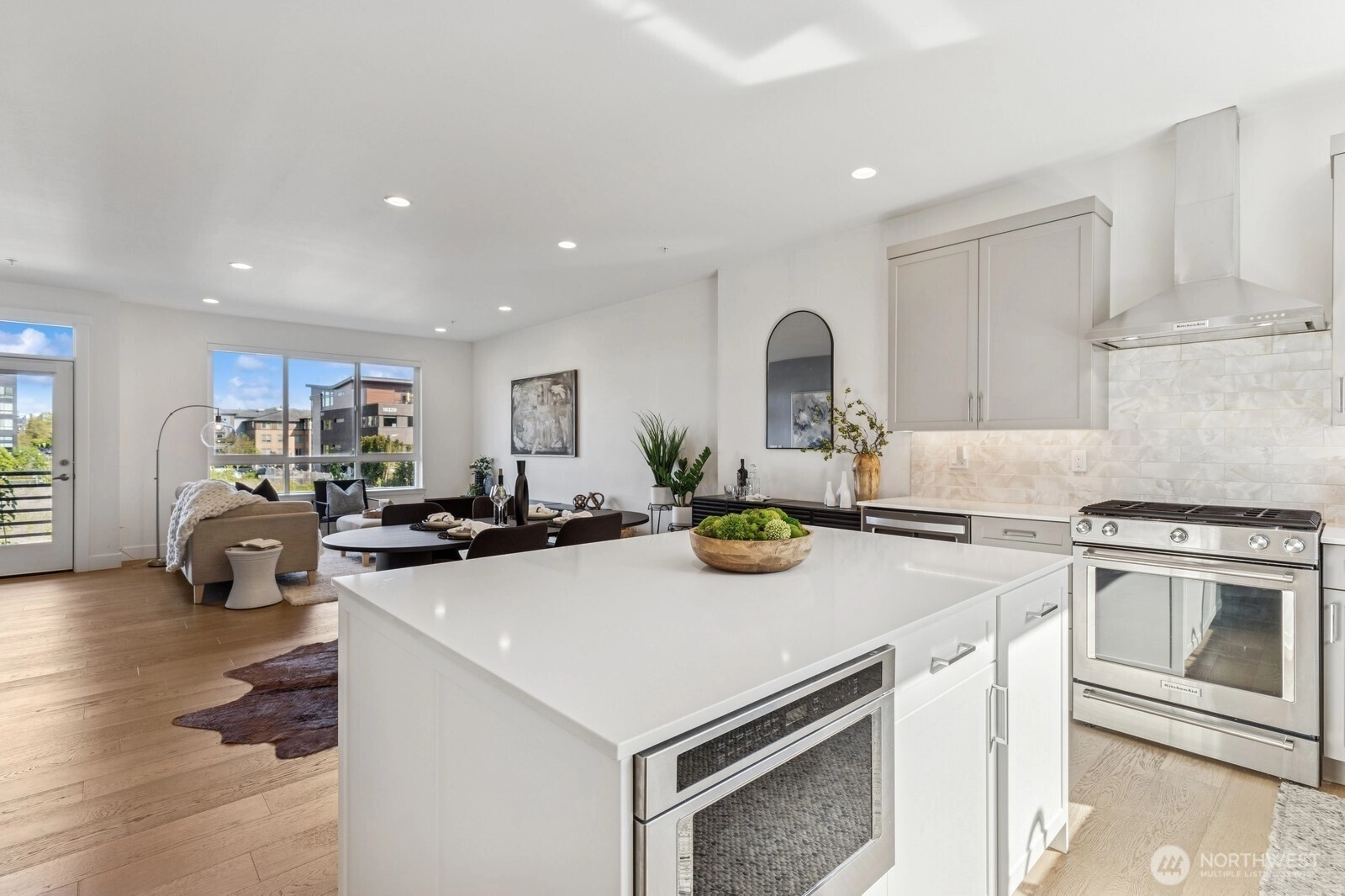 Live at the Landing in downtown Bothell. You will feel right at home in this beautiful bright 1,632 Sq Ft, 3 bedroom, 2.5 bath townhome. Spacious east-facing great room with large windows. The chef's kitchen includes quartz counters, tile backsplash, and an oversized island with seating. SS appliances and wine cabinet. Dining area off the kitchen. 3/4 bath & covered patio as well. Head up to primary w massive W/I closet and spa-like 3/4 bath + floating cabinets w/under cabinet lighting. Another nice-sized bedroom w/a full bath. Office or 3rd bedroom on entry-level is private and away from main living. 2 car garage w/electric car charger. 9 ft ceilings, AC. Walk to nearby green spaces, parks, and trails. Northshore schools! EZ access to 405.