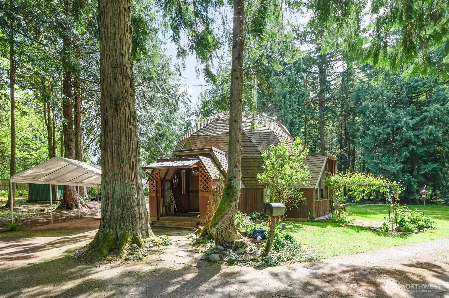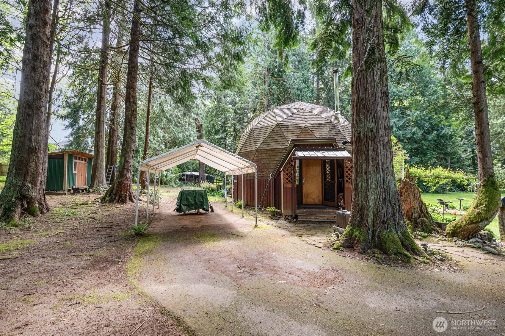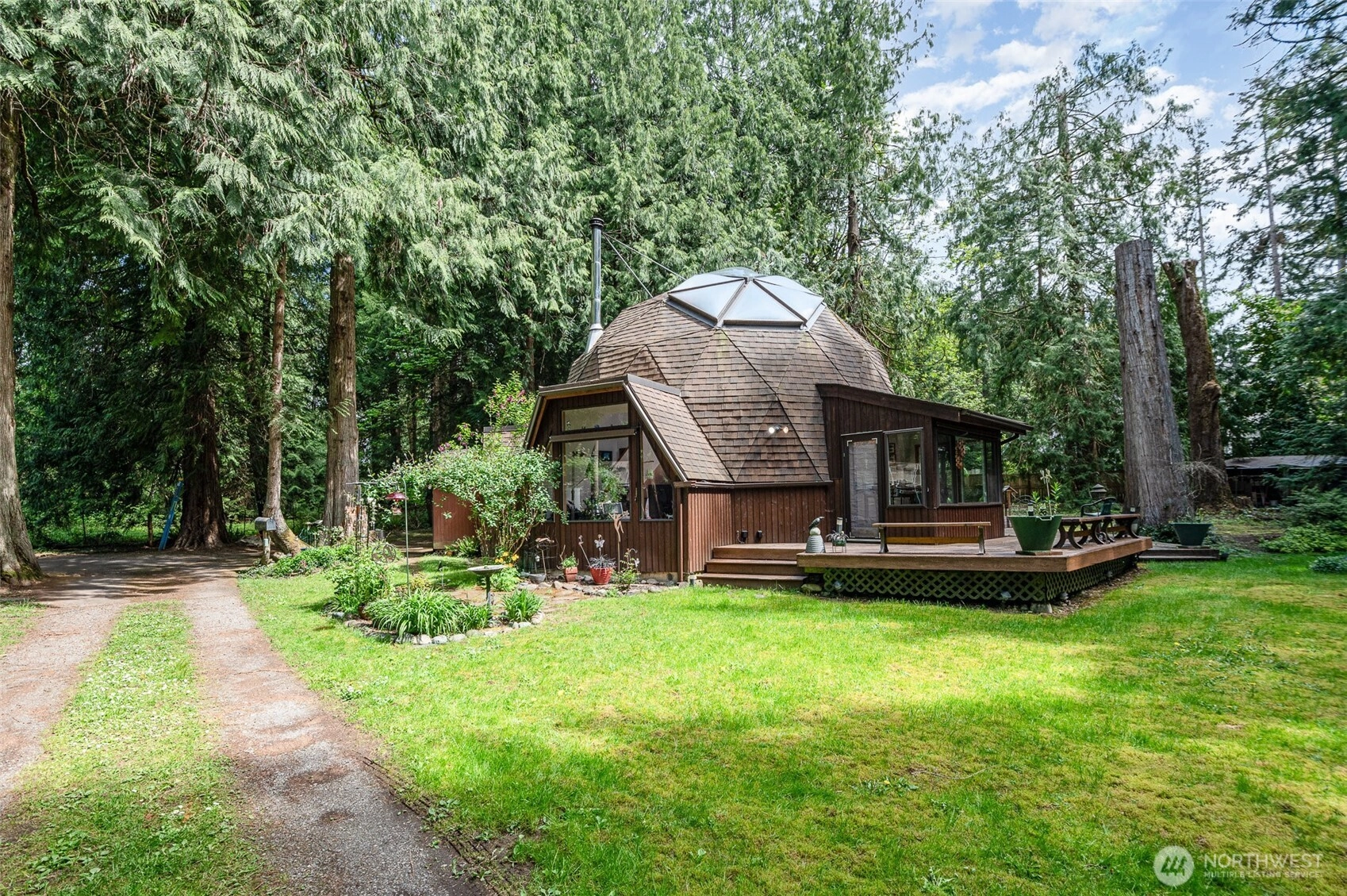 Discover a truly unique opportunity in the heart of Sammamish Plateau! This impeccably maintained geodesic dome, offering 1 BR and 1 BA over 1300 sqft, is situated on a secluded, gated and fully fenced .81-acre flat lot. The Dome features include structural updates, custom sheds, a heated ceramic tile bathroom floor, and an inviting open concept, creating a move-in ready sanctuary. Enjoy the vibrant scenery with blooming flowers and ample space, all while contemplating future projects or building your dream home. A rare gem combining innovation, privacy, and potential awaits! Don't miss your chance to see this amazing property. VALUE IN LAND!