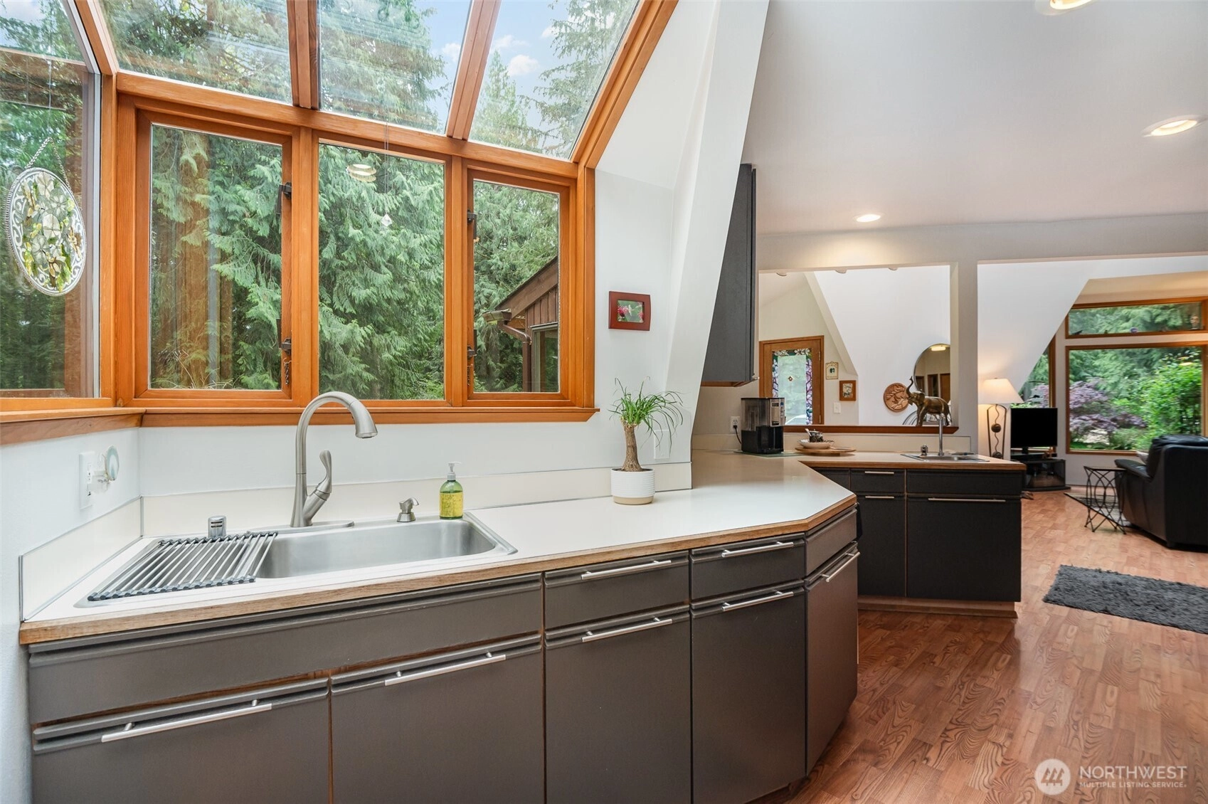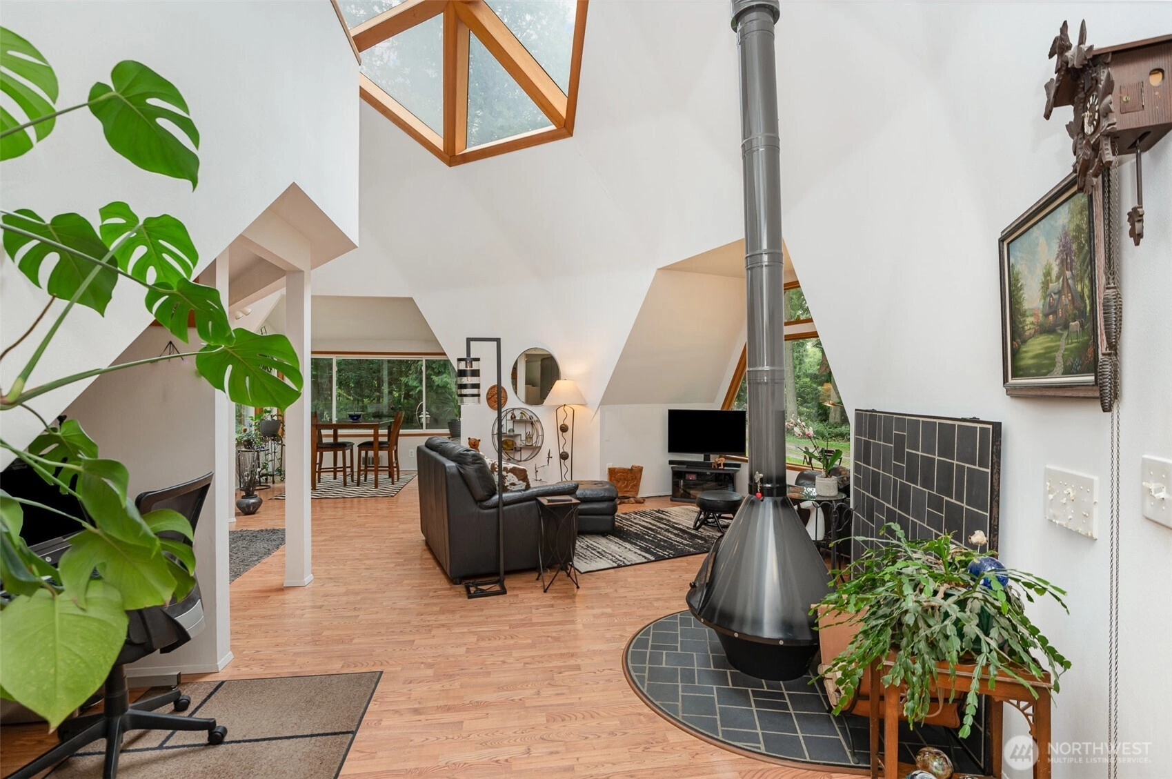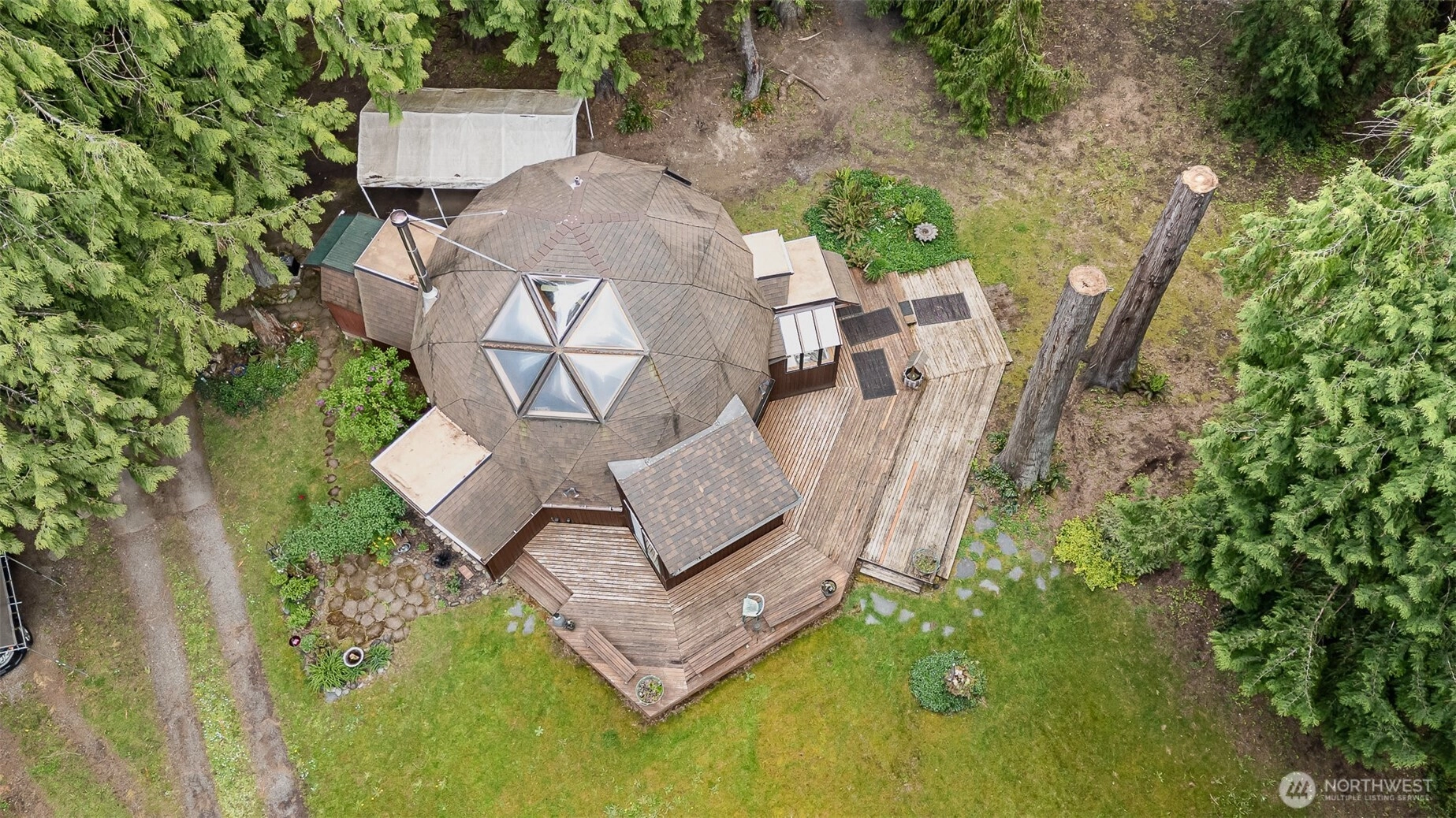 Discover a truly unique opportunity in the heart of Sammamish Plateau! This impeccably maintained geodesic dome, offering 1 BR and 1 BA over 1300 sqft, is situated on a secluded, gated and fully fenced .81-acre flat lot. The Dome features include structural updates, custom sheds, a heated ceramic tile bathroom floor, and an inviting open concept, creating a move-in ready sanctuary. Enjoy the vibrant scenery with blooming flowers and ample space, all while contemplating future projects or building your dream home. A rare gem combining innovation, privacy, and potential awaits! Don't miss your chance to see this amazing property. VALUE IN LAND!