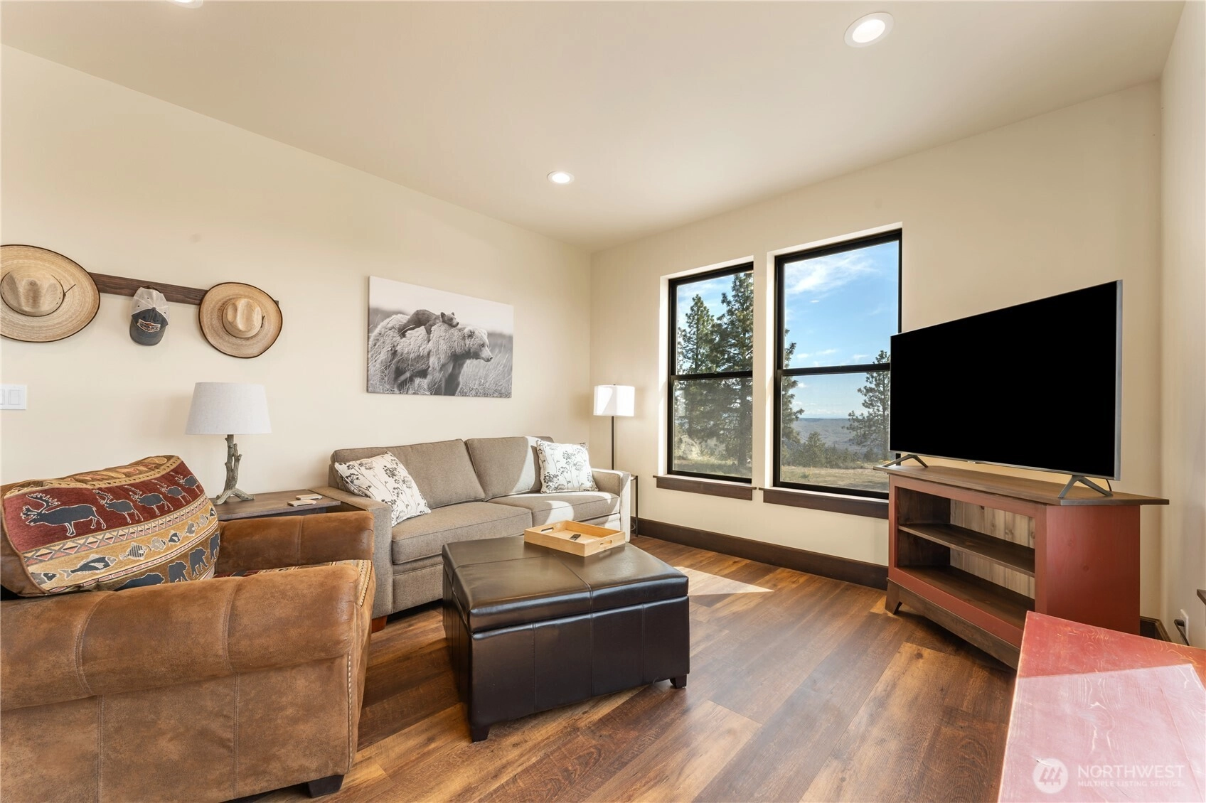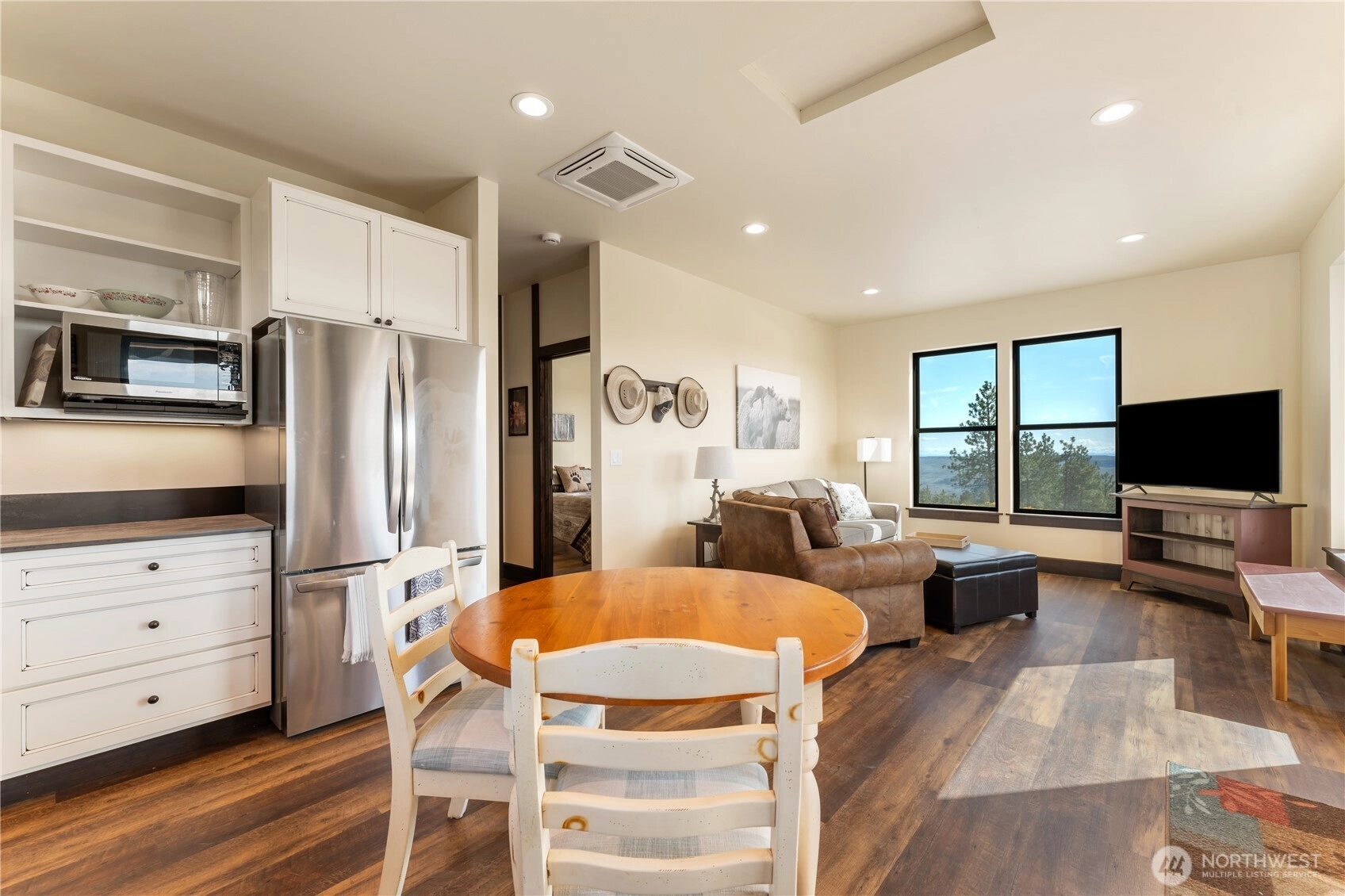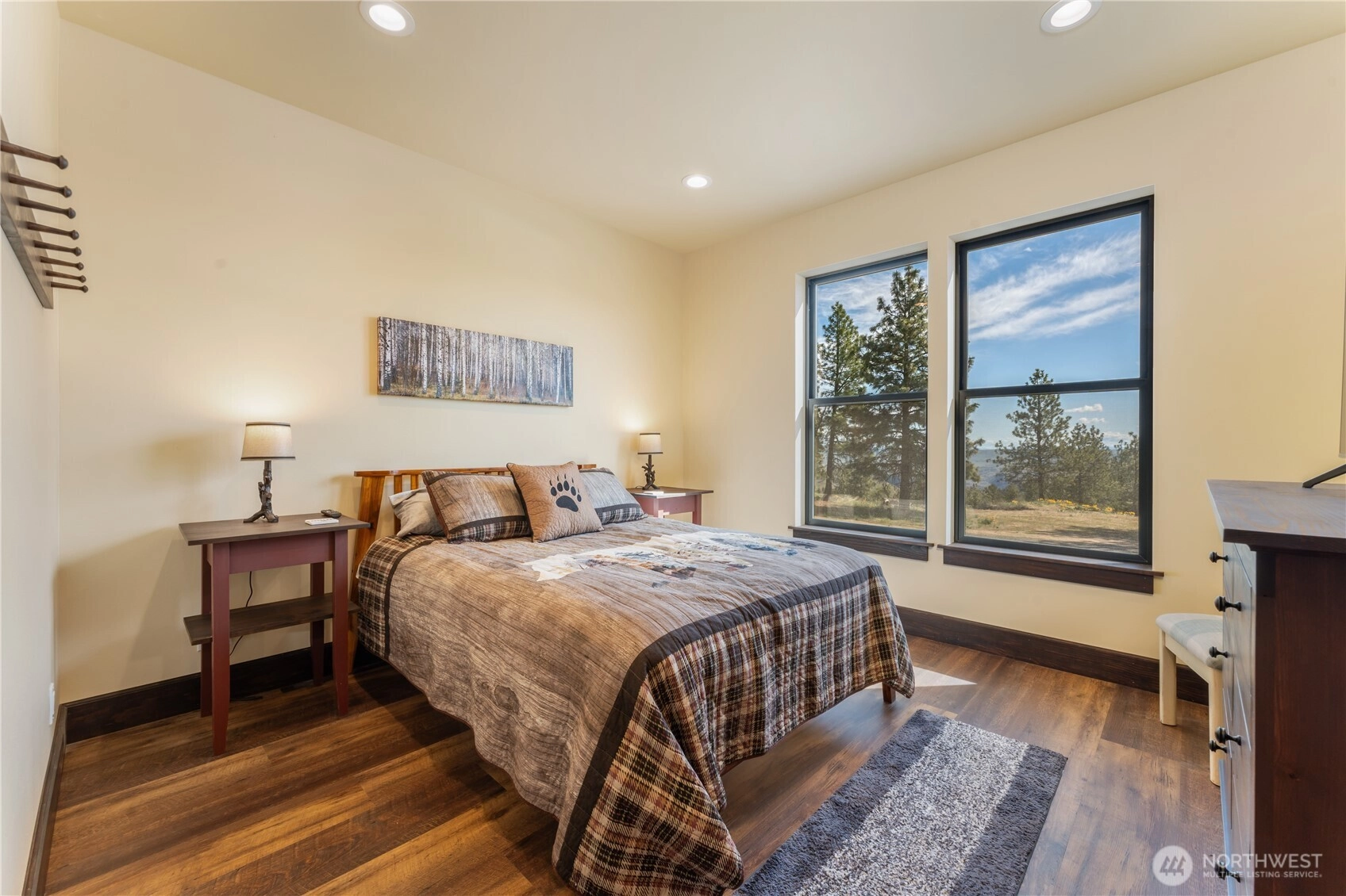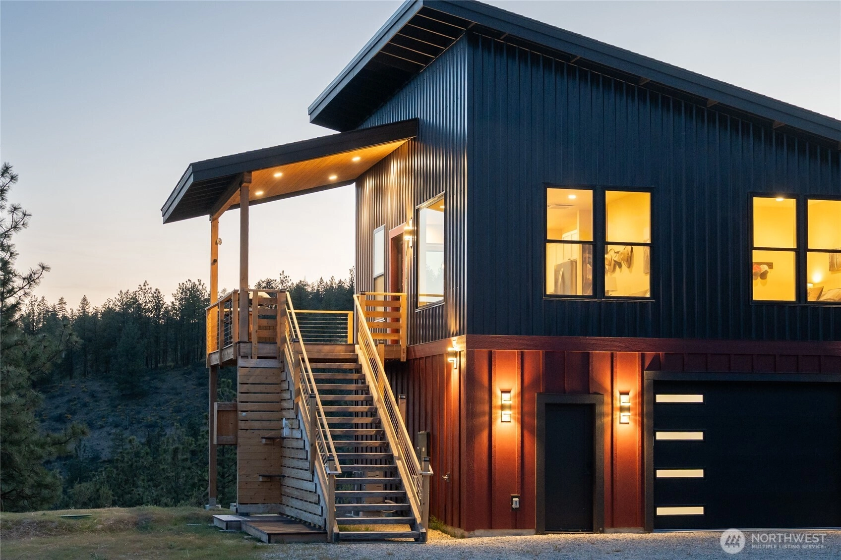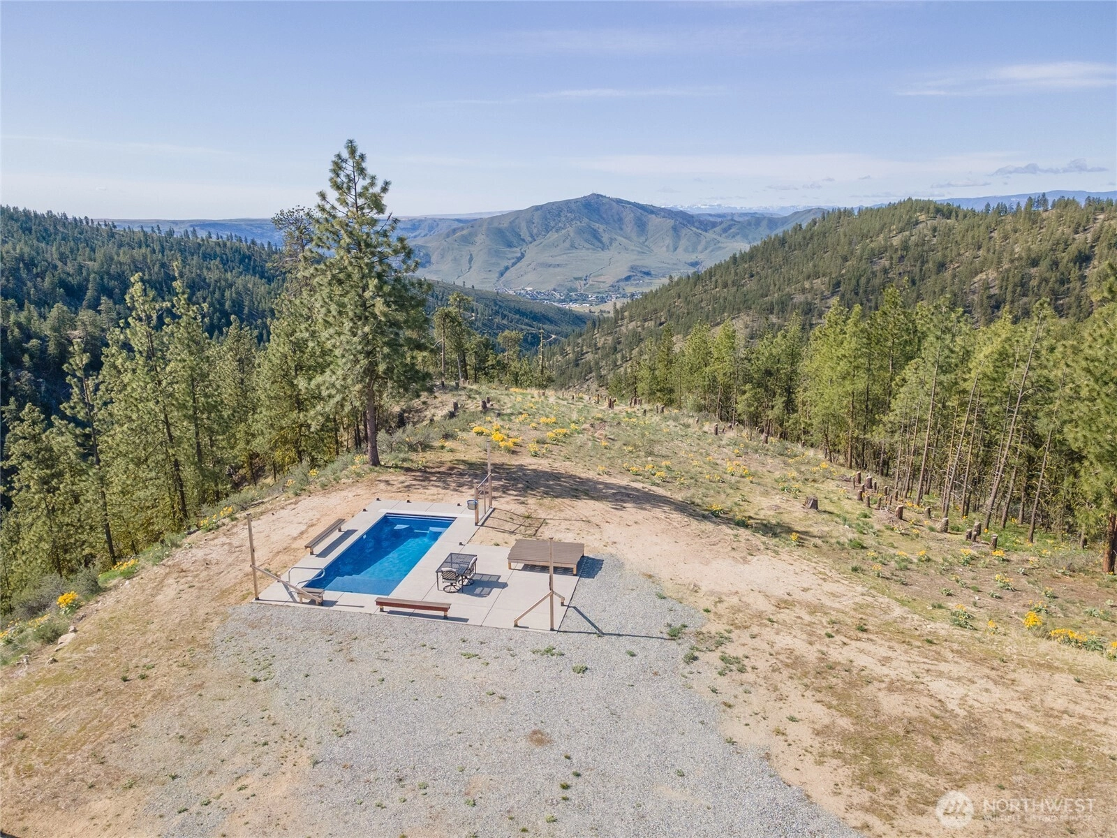 Newly constructed home in Chelan Vista Heights on 20 acres. This custom built practical home, designed as an Accessory Dwelling Unit, features a contemporary design with one spacious bedroom, luxury bathroom, open concept kitchen, light and airy living area and covered view deck, perched above the 2 car garage/shop area. The focal point is the 12x 24 foot sparkling in ground fiberglass pool with stunning views of the city and surrounding mountains and forest. RV hookup. Home is served by private well, septic system and Starlink. Building design for additional home available for review. Seclusion and privacy are the trademarks of this unique property. Can also be used as an STR.
