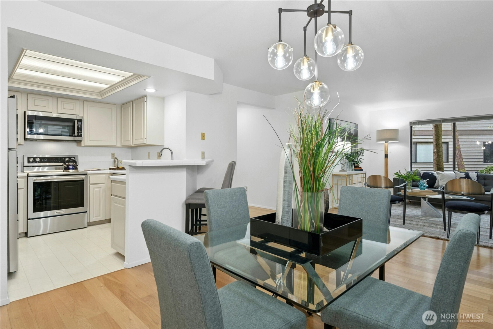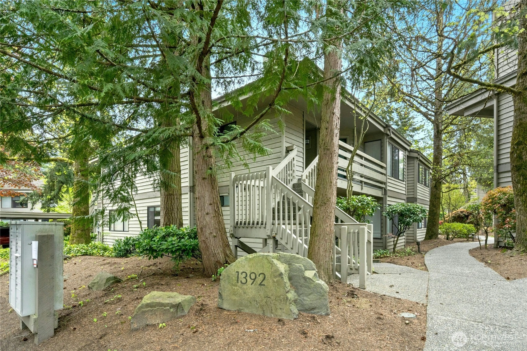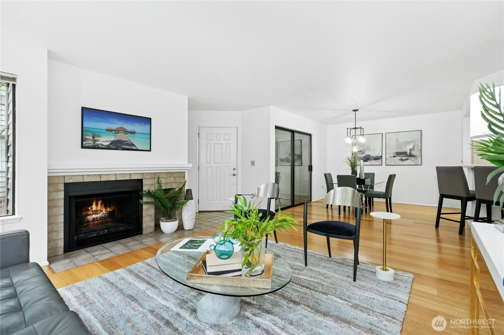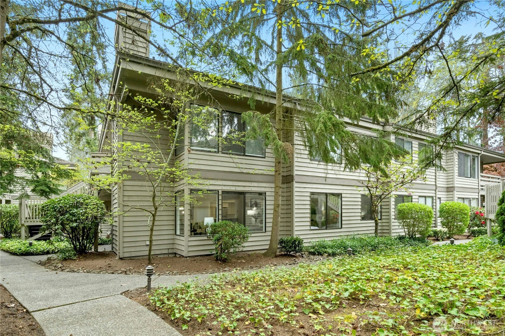 Don't miss this rare opportunity to live in the heart of Downtown Bellevue in a serene, park-like community. This refreshed condo offers ultimate convenience just blocks from world-class shopping, dining, parks, and the new Amazon Towers. Recently updated with fresh paint and new stainless steel appliances, the home features rich hardwood floors, abundant natural light, and a warm inviting atmosphere. The spacious layout includes large bedrooms, generous living room with a cozy wood-burning fireplace, separate dining area, and tranquil primary suite with a walk-in closet and private bath. Located at the quiet back of the property with dedicated covered parking. Clubhouse, indoor/outdoor pool/hot tub. Pet friendly.Top-rated Bellevue schools!