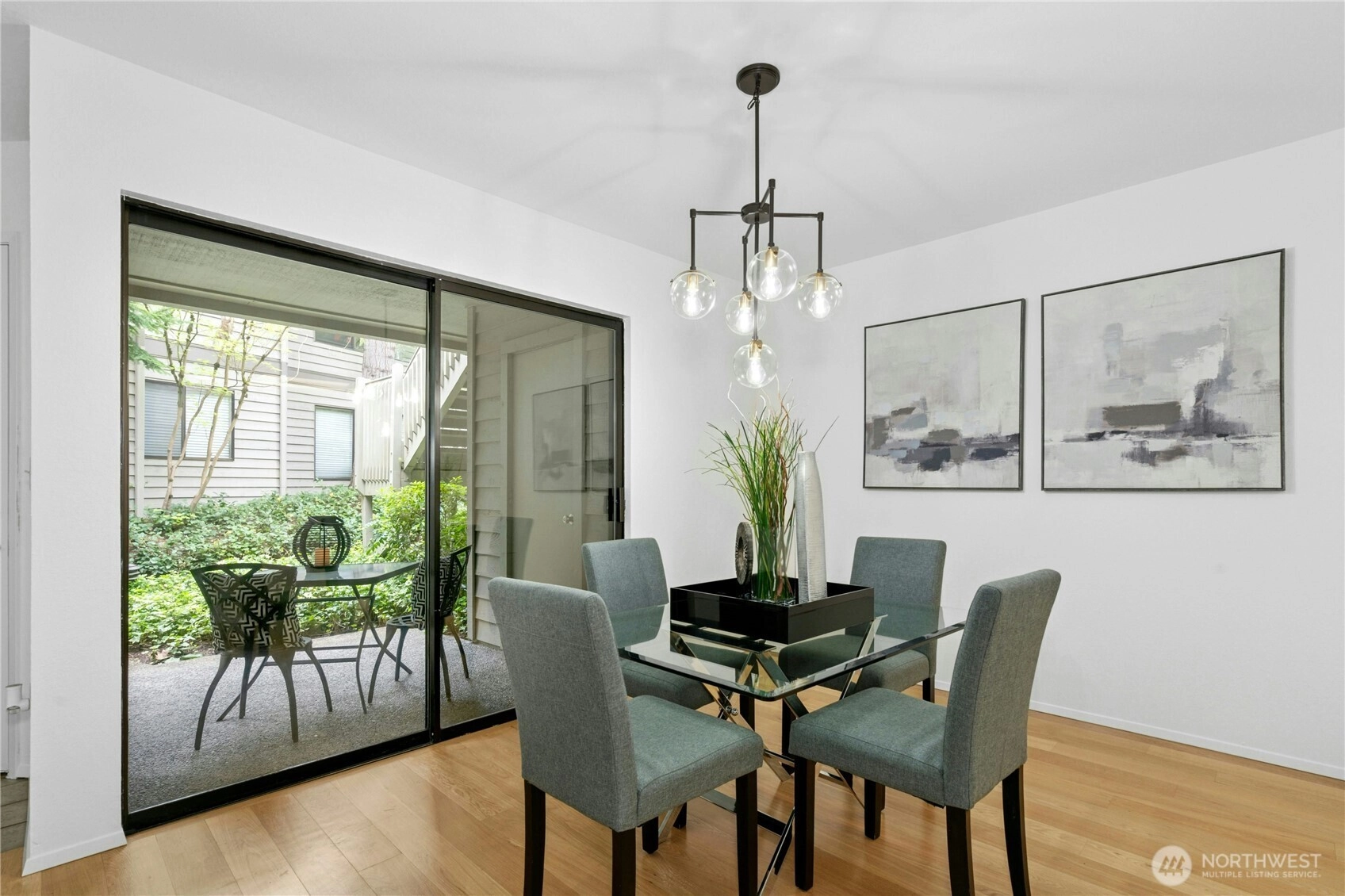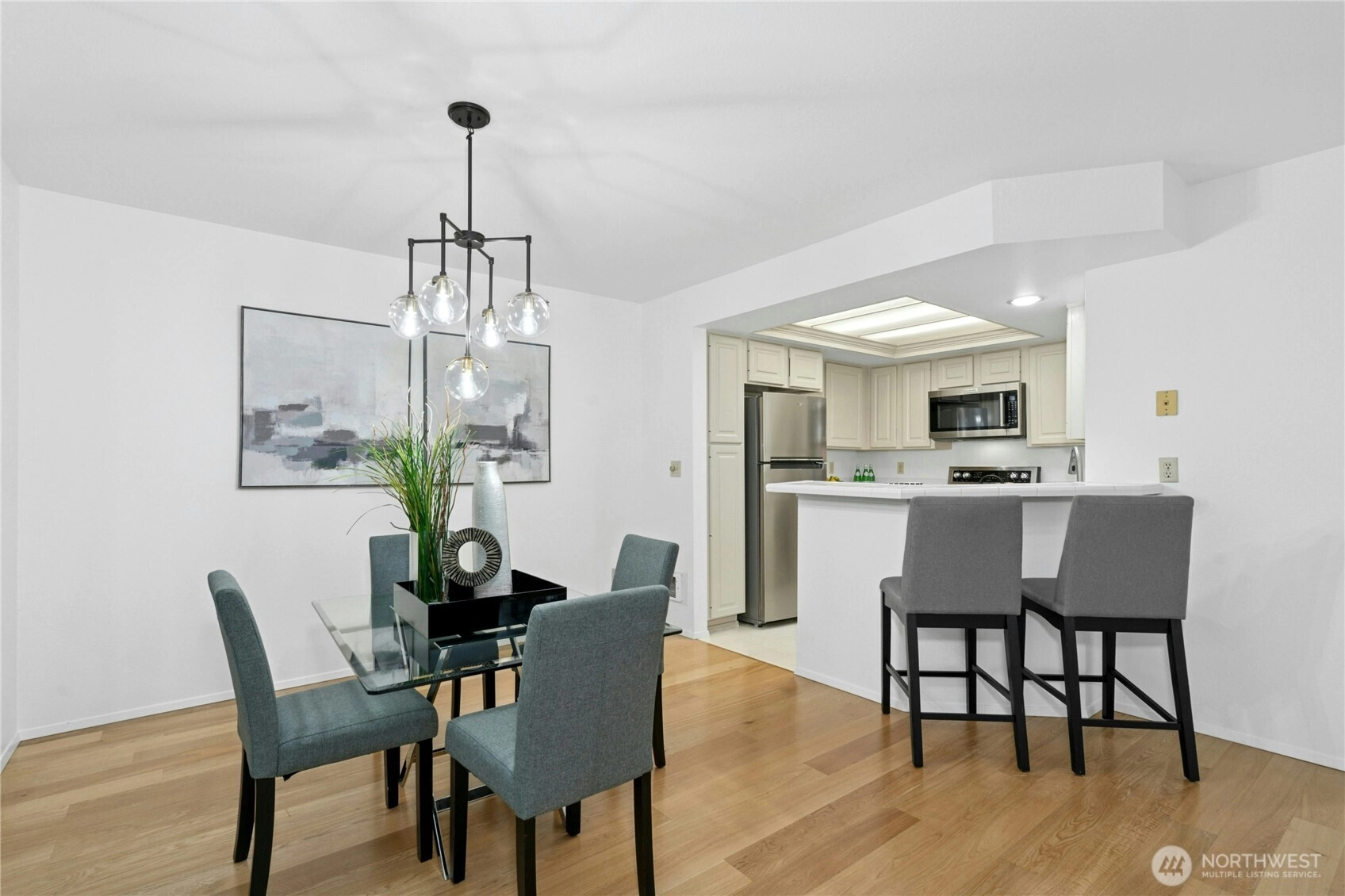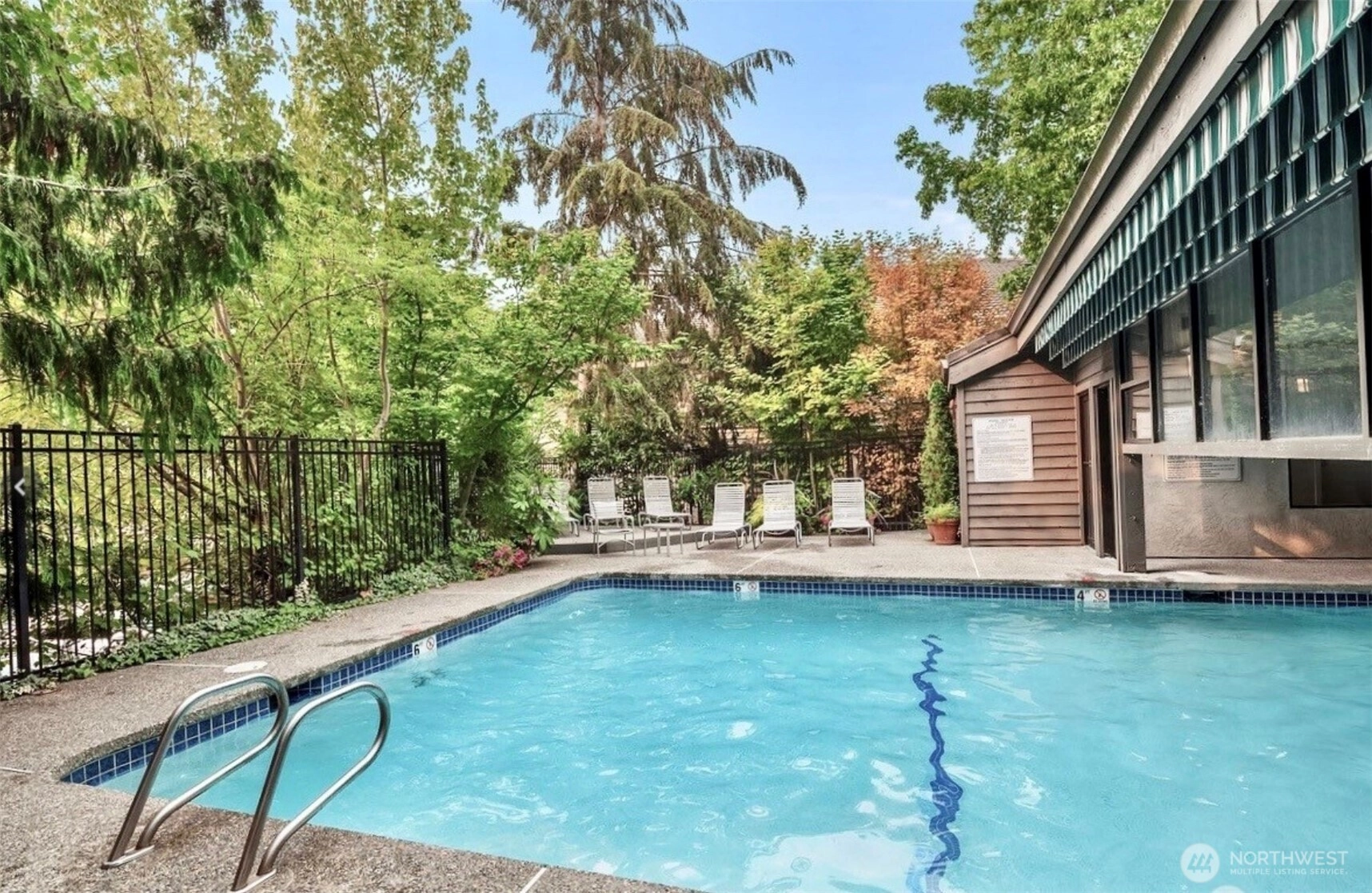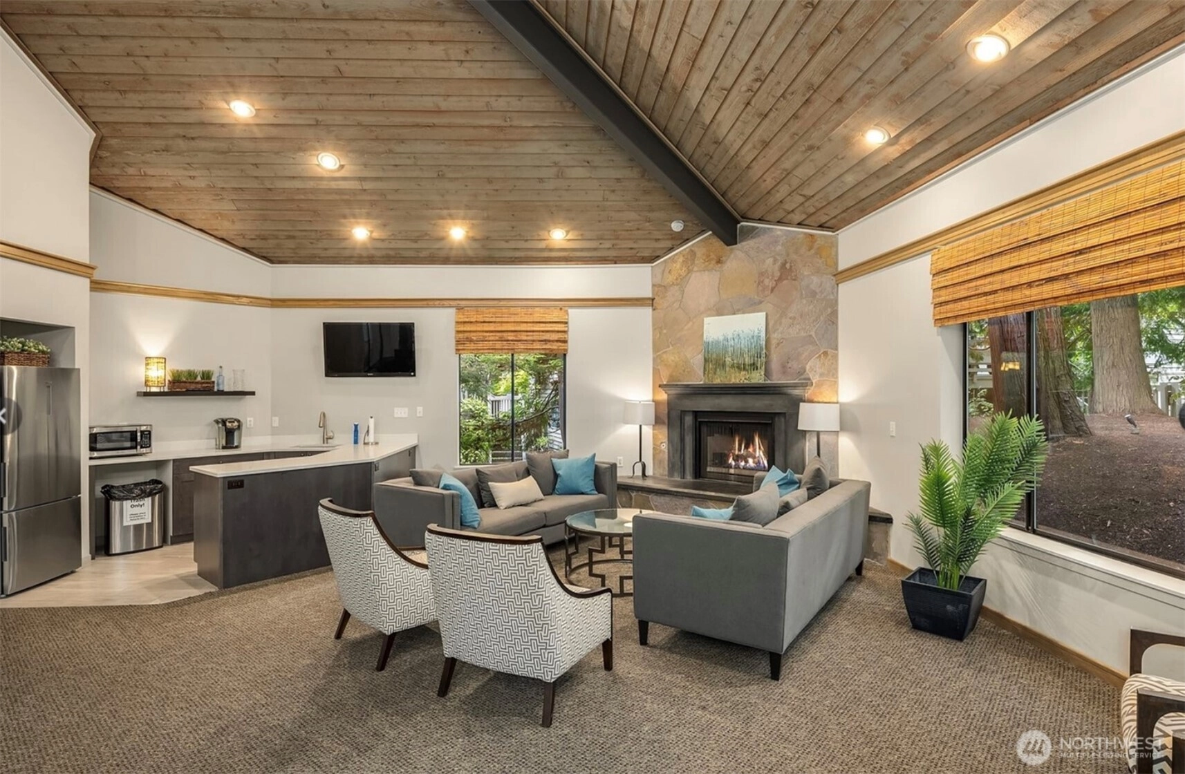 Don't miss this rare opportunity to live in the heart of Downtown Bellevue in a serene, park-like community. This refreshed condo offers ultimate convenience just blocks from world-class shopping, dining, parks, and the new Amazon Towers. Recently updated with fresh paint and new stainless steel appliances, the home features rich hardwood floors, abundant natural light, and a warm inviting atmosphere. The spacious layout includes large bedrooms, generous living room with a cozy wood-burning fireplace, separate dining area, and tranquil primary suite with a walk-in closet and private bath. Located at the quiet back of the property with dedicated covered parking. Clubhouse, indoor/outdoor pool/hot tub. Pet friendly.Top-rated Bellevue schools!