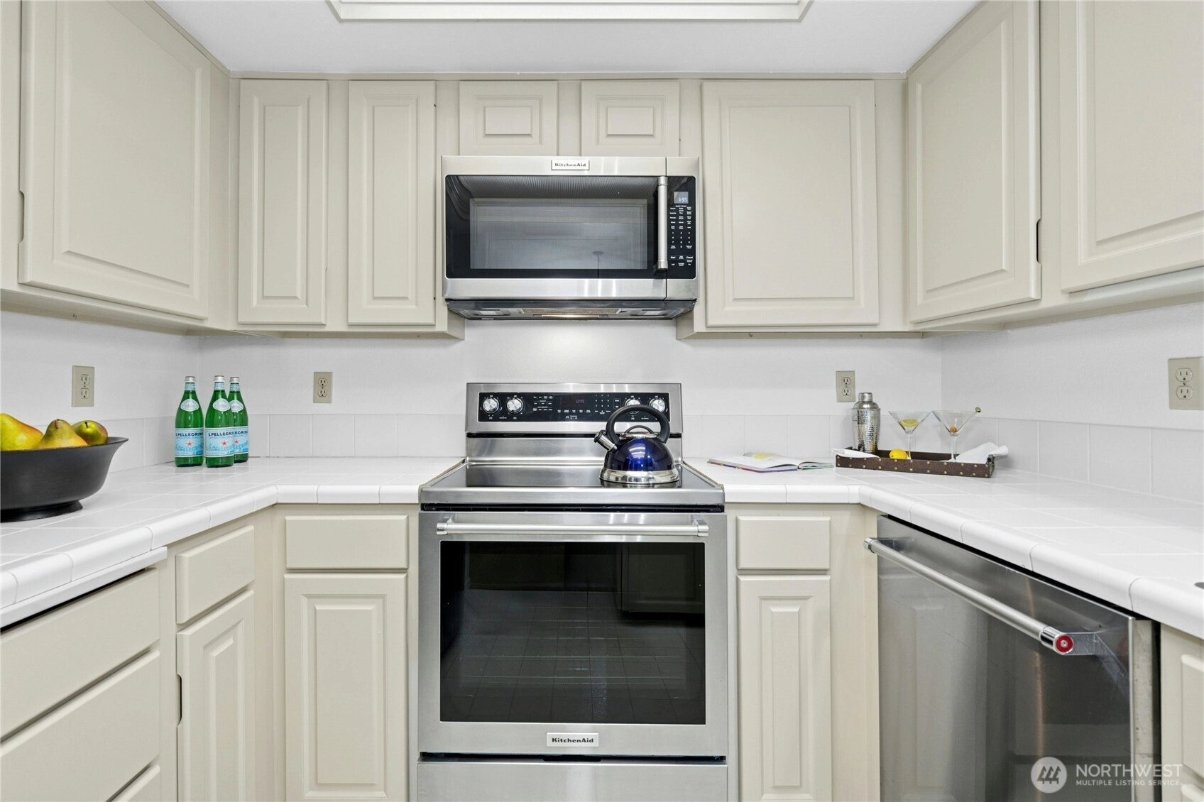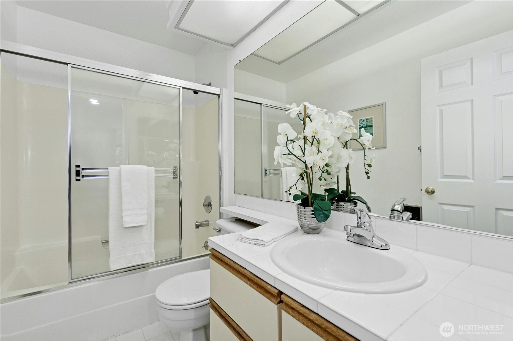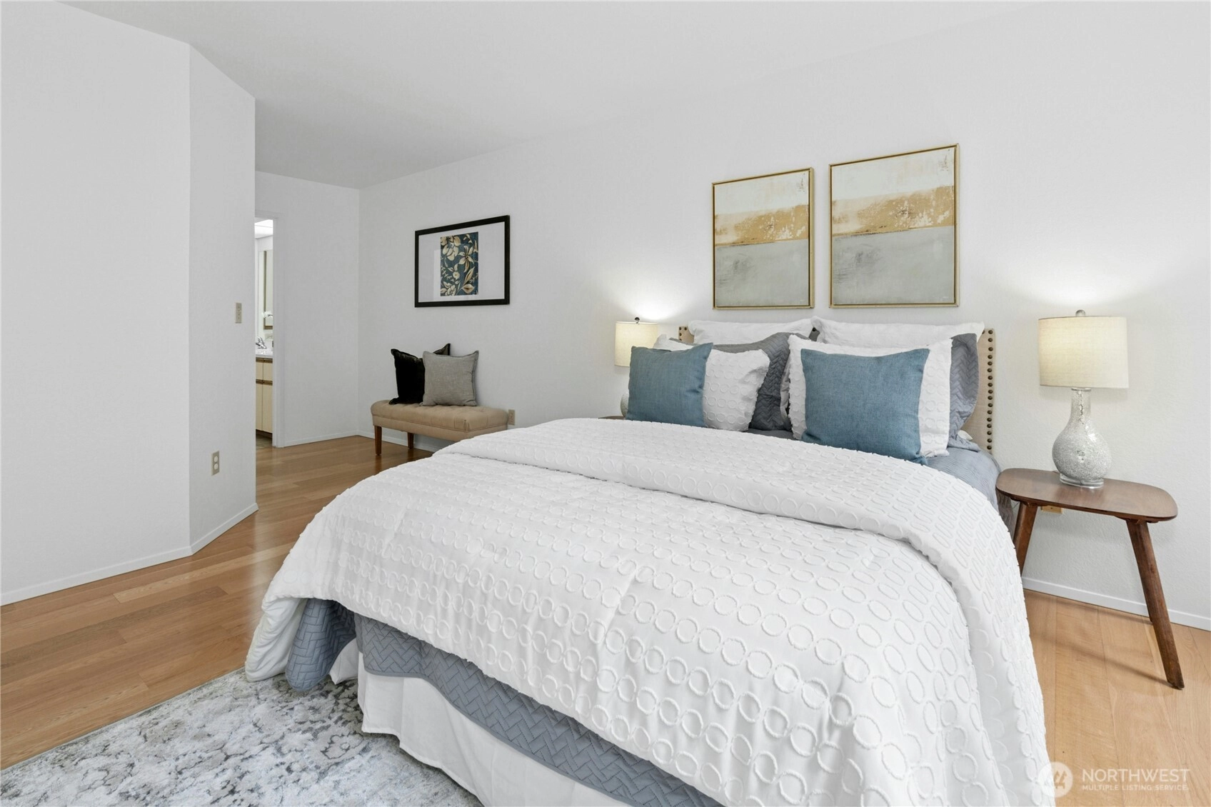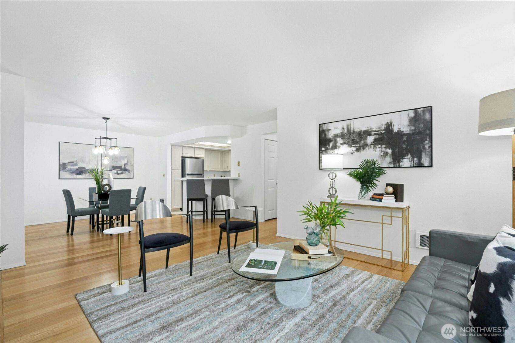 Don't miss this rare opportunity to live in the heart of Downtown Bellevue in a serene, park-like community. This refreshed condo offers ultimate convenience just blocks from world-class shopping, dining, parks, and the new Amazon Towers. Recently updated with fresh paint and new stainless steel appliances, the home features rich hardwood floors, abundant natural light, and a warm inviting atmosphere. The spacious layout includes large bedrooms, generous living room with a cozy wood-burning fireplace, separate dining area, and tranquil primary suite with a walk-in closet and private bath. Located at the quiet back of the property with dedicated covered parking. Clubhouse, indoor/outdoor pool/hot tub. Pet friendly.Top-rated Bellevue schools!