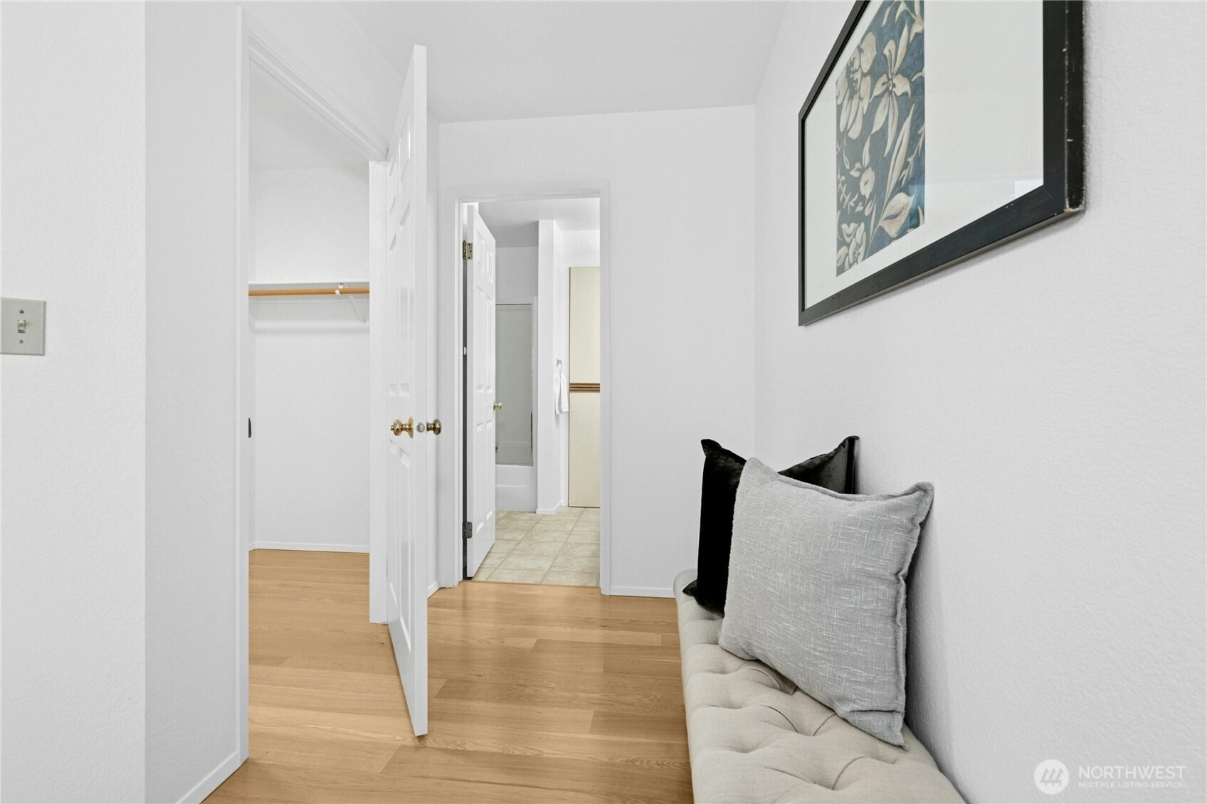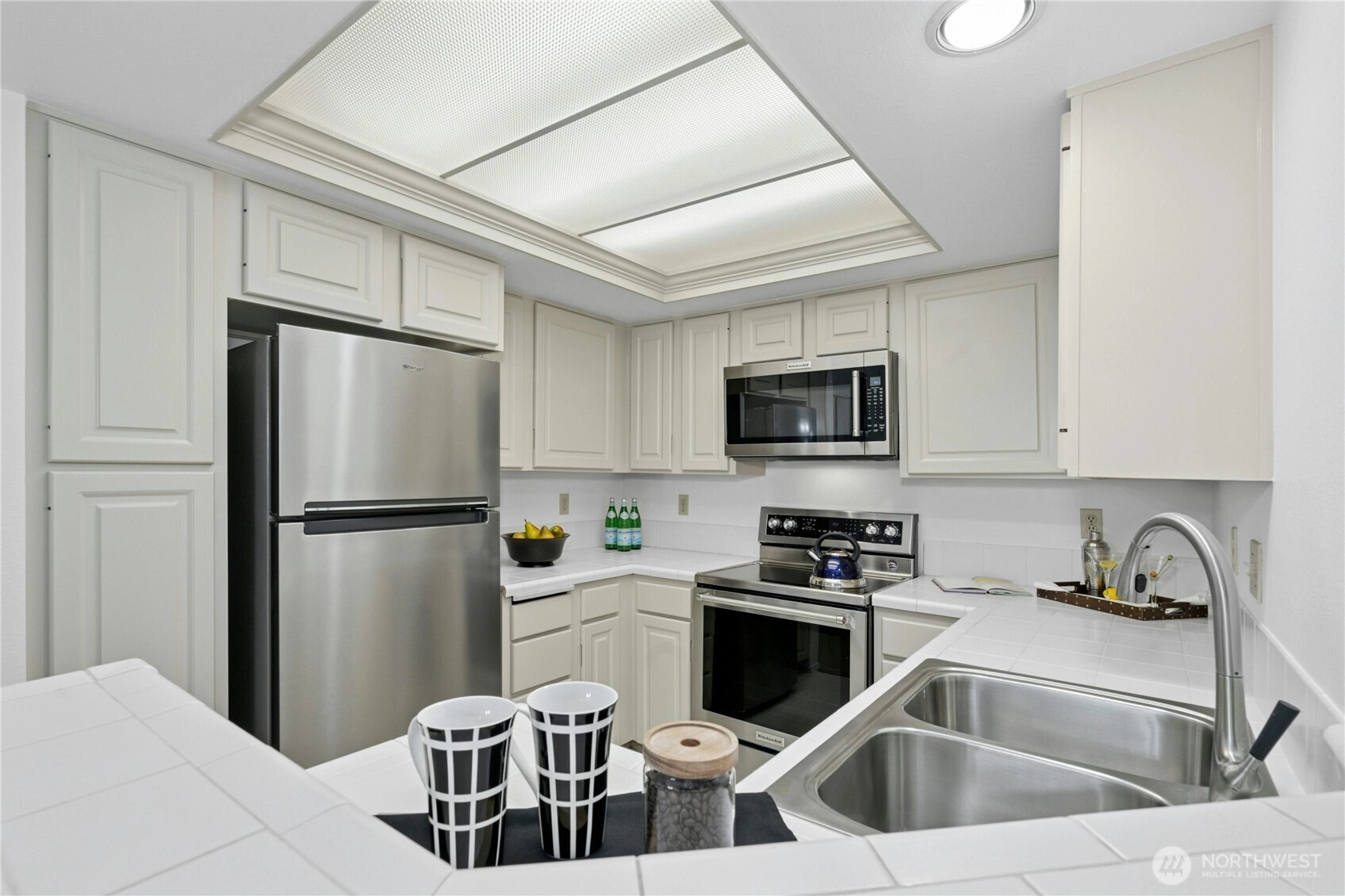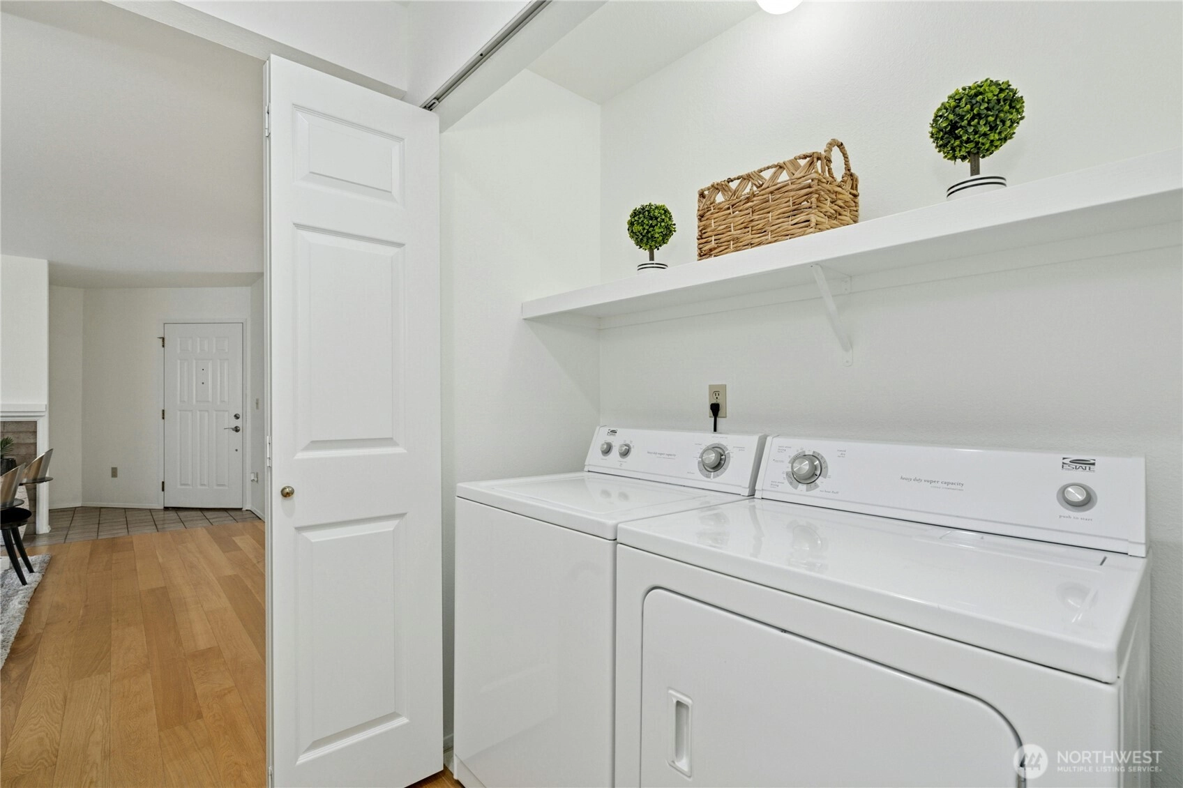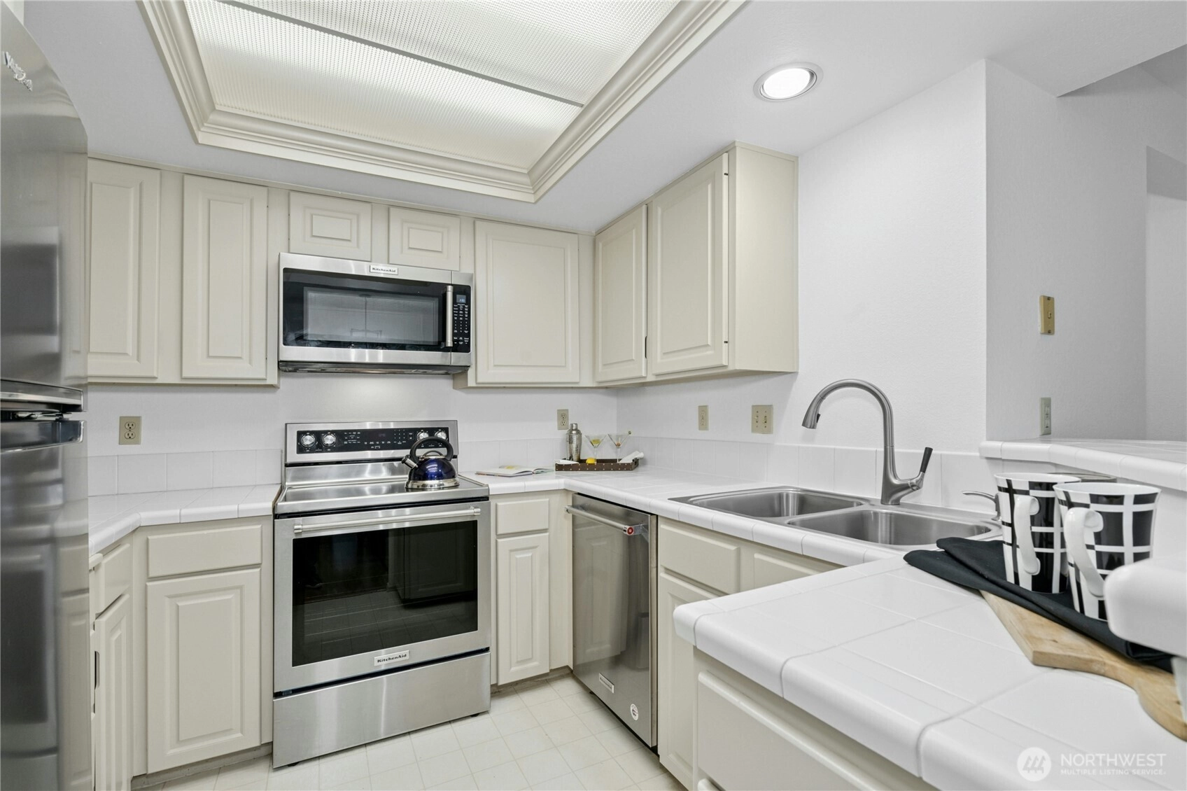 Don't miss this rare opportunity to live in the heart of Downtown Bellevue in a serene, park-like community. This refreshed condo offers ultimate convenience just blocks from world-class shopping, dining, parks, and the new Amazon Towers. Recently updated with fresh paint and new stainless steel appliances, the home features rich hardwood floors, abundant natural light, and a warm inviting atmosphere. The spacious layout includes large bedrooms, generous living room with a cozy wood-burning fireplace, separate dining area, and tranquil primary suite with a walk-in closet and private bath. Located at the quiet back of the property with dedicated covered parking. Clubhouse, indoor/outdoor pool/hot tub. Pet friendly.Top-rated Bellevue schools!