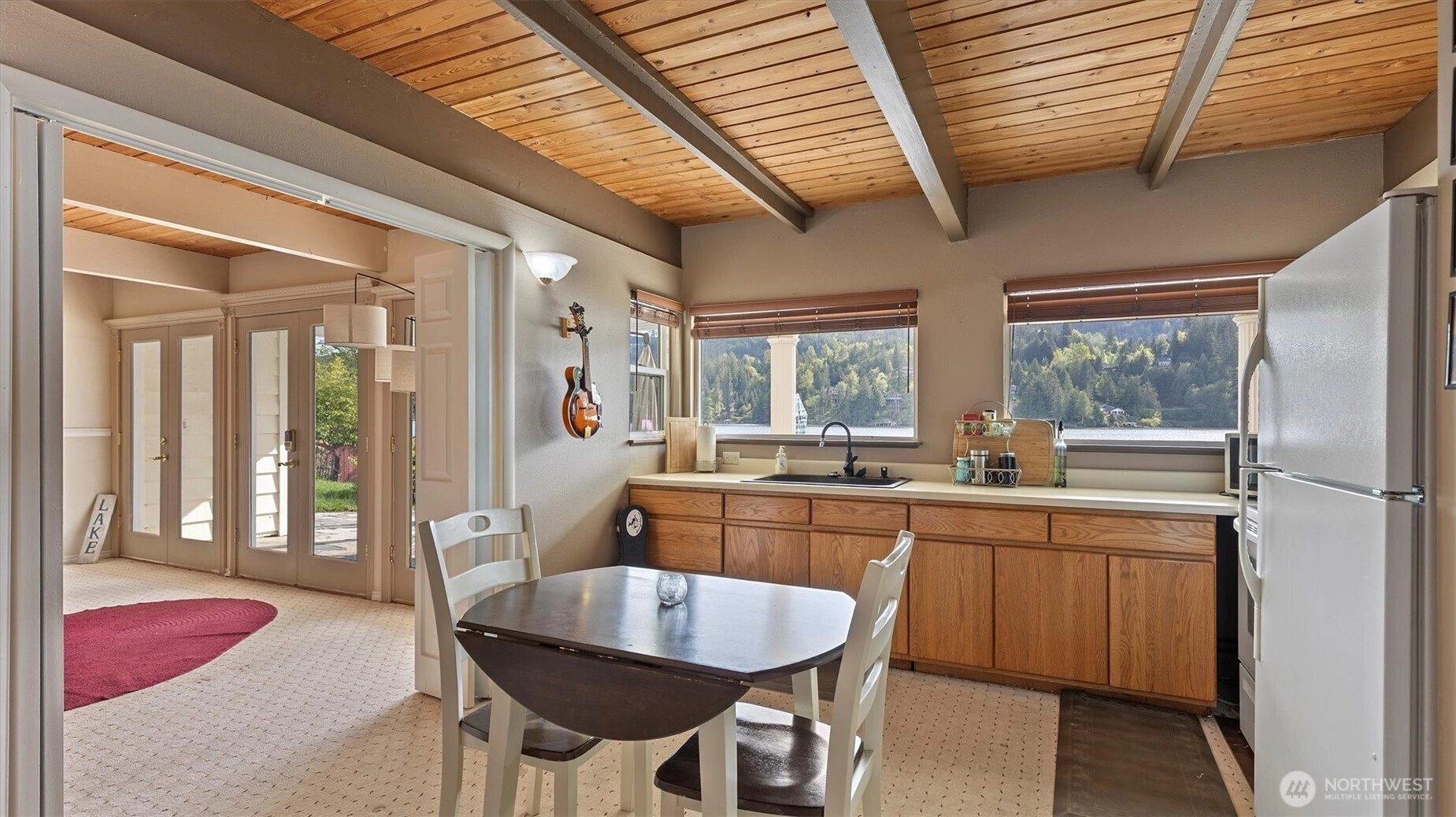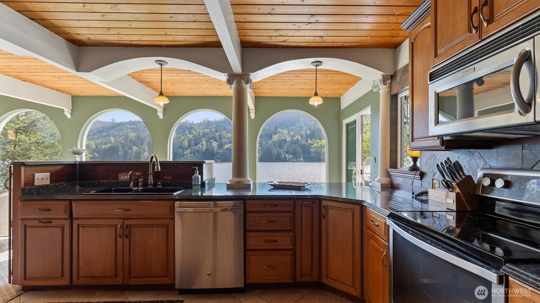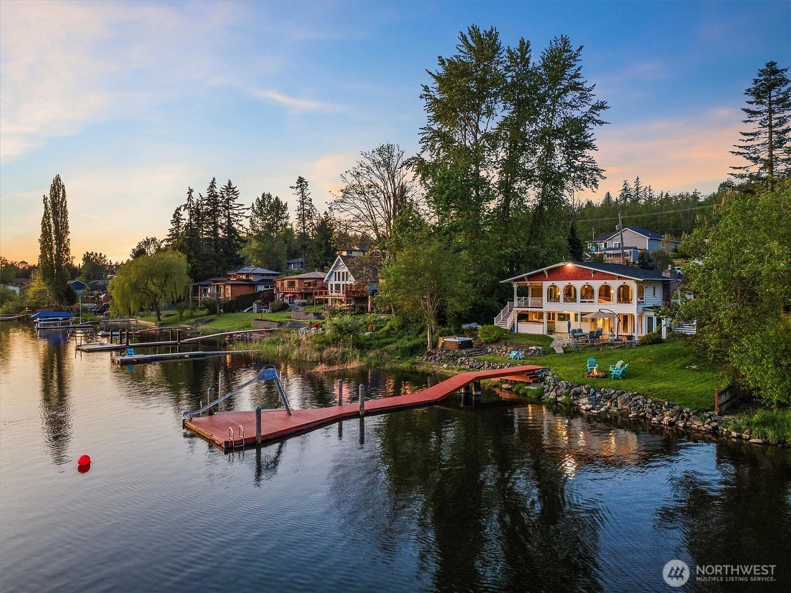 Rare opportunity to acquire over 1/2 acre on the sunny-side of Big Lake with 95' of low-bank waterfront! Includes 1,232sf shop (+560' loft) with gas, water, & electric; excellent potential for an easy ADU add-on! Structurally sound home that has been well cared for by the same owners over the last 24 years is ready for your personal cosmetic refresh, several pictures are provided to show potential re-model options! Property size allows room to expand footprint of home if desired. Large dock w/ boat lift for 8,000 lbs / 28' boat (dock pilings will be re-done, and dock floats leveled, prior to closing). Lower-level unit has full 2nd kitchen (which currently doubles as the 3rd bedrm), and it has been used as an AirBnB for 36k/yr of income.