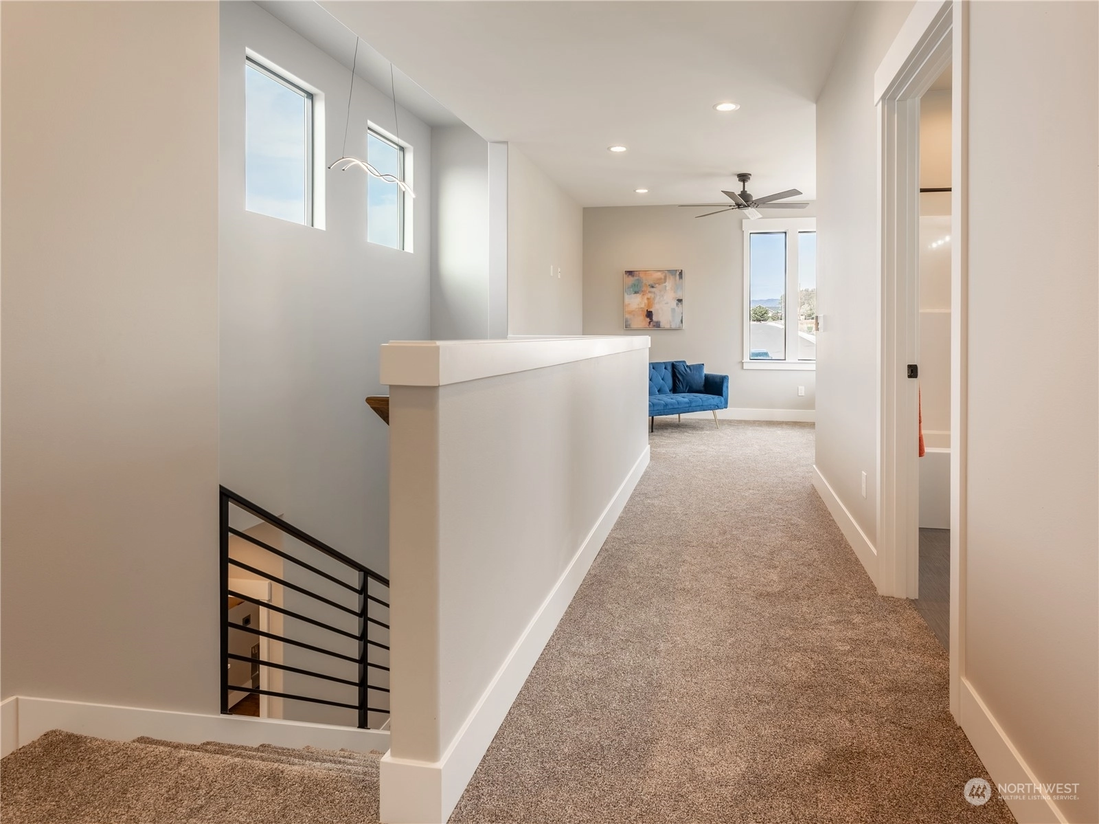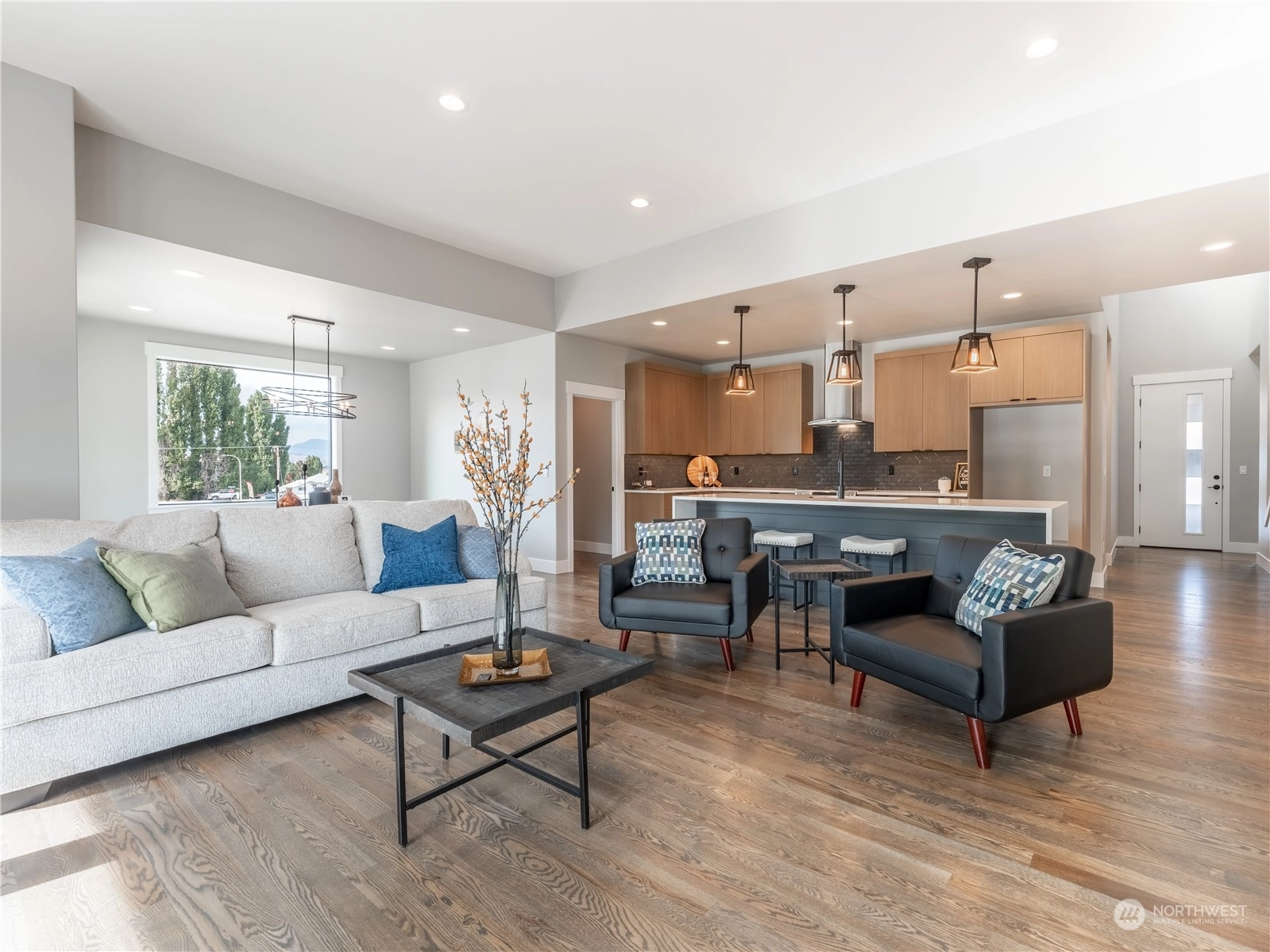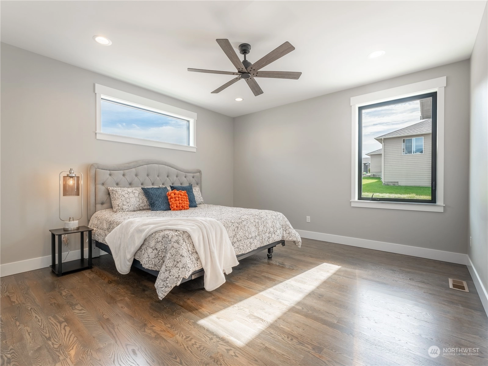 Priced to Move – Instant Equity Opportunity! Rich hardwood floors flow through the entry, kitchen, dining, and luxe main-floor primary suite with spa-worthy ensuite and heated floors. The stunning kitchen is a showstopper with a quartz waterfall-edge island, custom white oak cabinetry. GREAT space for living & entertaining. Main-floor living made easy with a 2nd bedroom and full bath. Upstairs features a 3rd bedroom, full bath & flexible bonus space-ideal for work or play. Enjoy a fully fenced backyard with lush grass, a huge covered patio plus already wired for a hot tub with plenty of space to relax or entertain. Oversized 2-car garage fits your truck or SUV. Ready for an EV car. Prime location with easy access to the Loop Trail!
