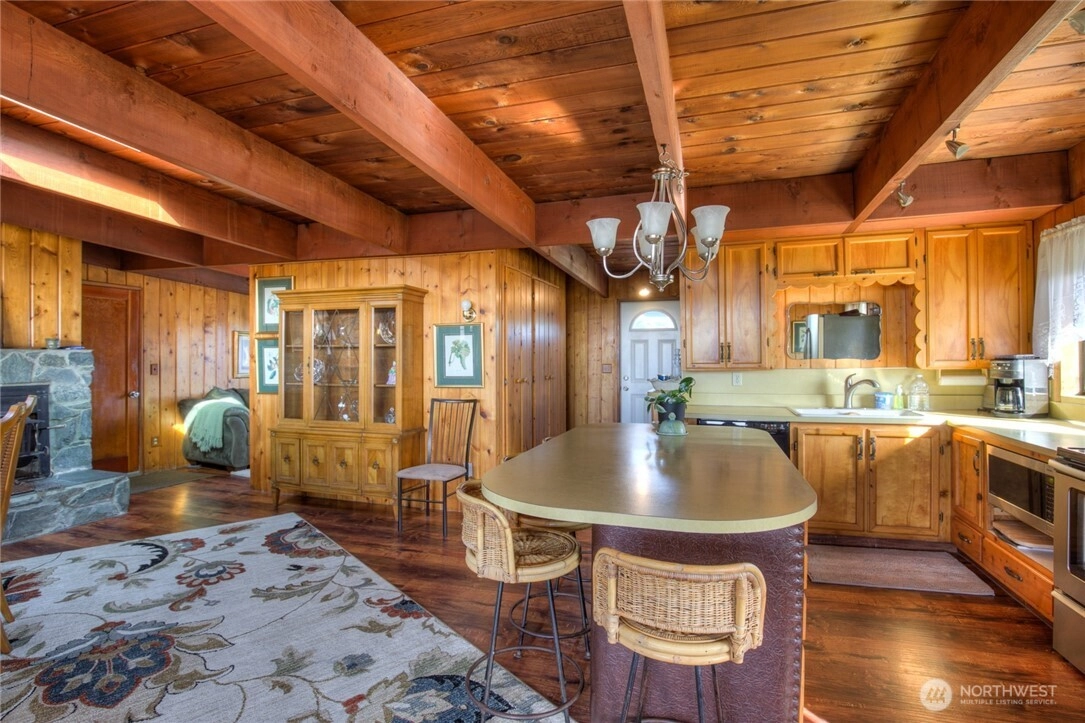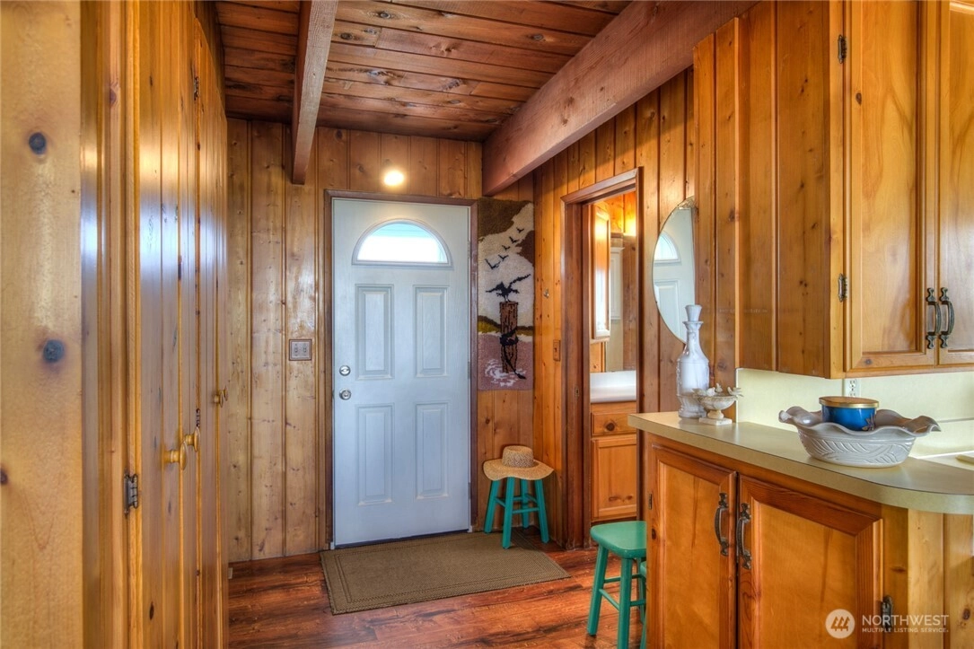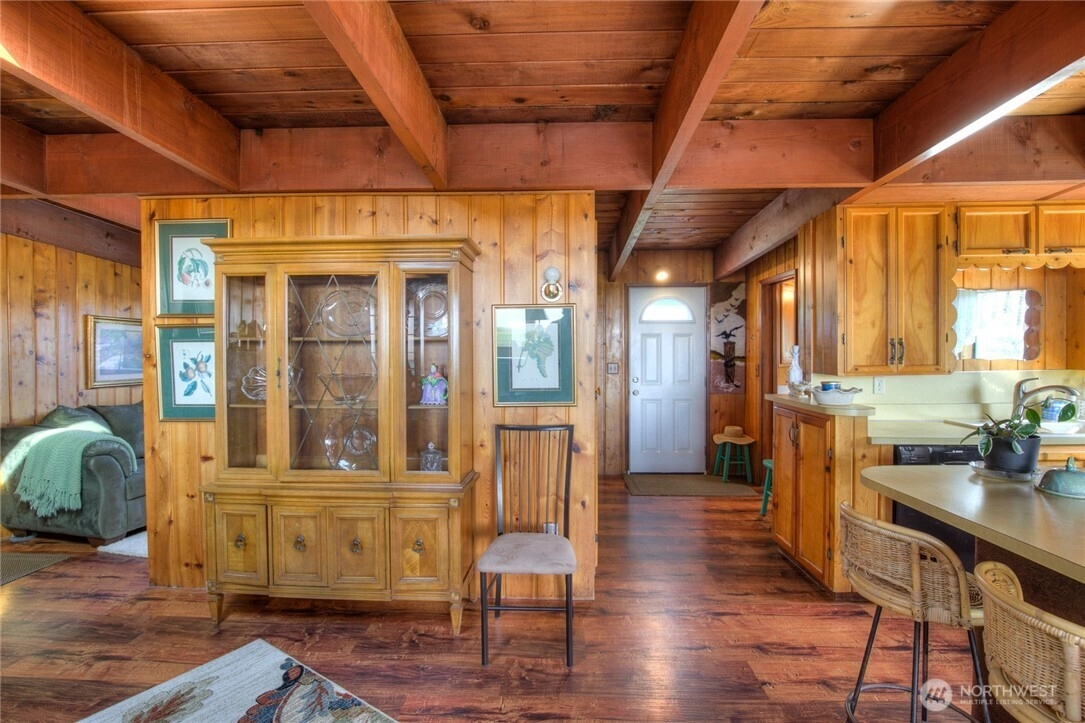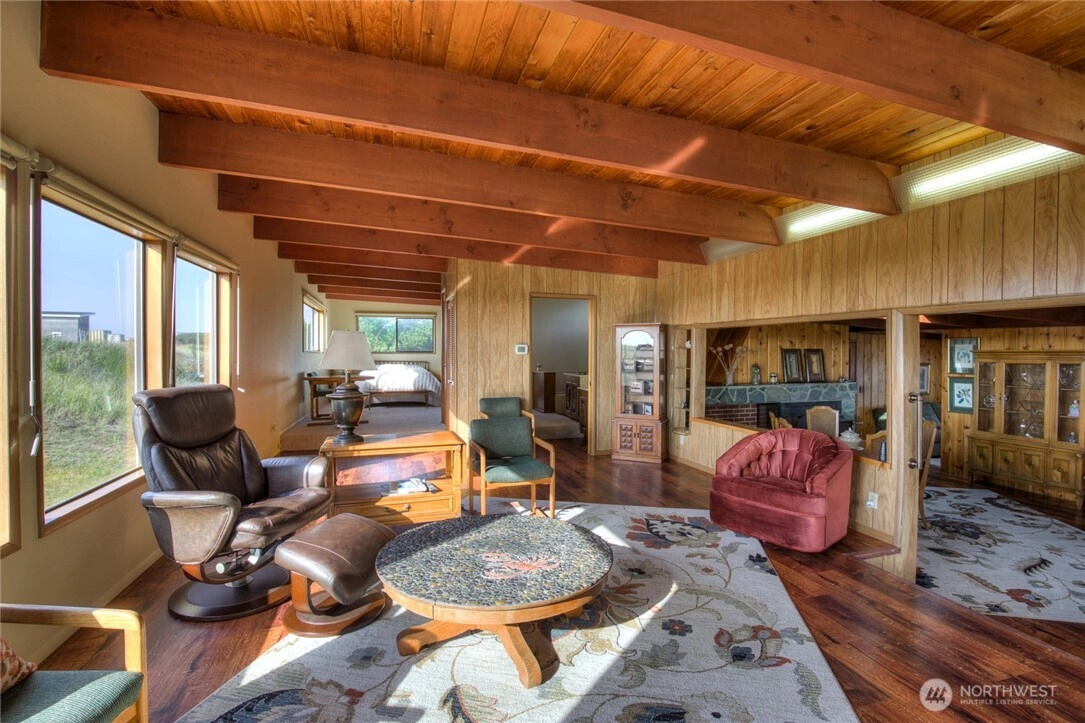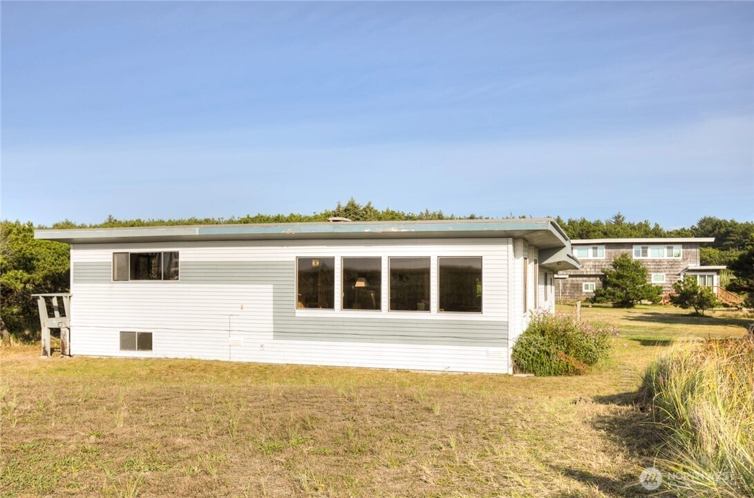 This unique, custom-built oceanfront home was originally constructed in 1959, with a thoughtfully designed addition added later. The open, spacious cabin features 2 bedrooms and 2 bathrooms, showcasing vaulted ceilings, skylights, and custom cabinetry that reflect a classic mid-century modern aesthetic. While natural beach growth has altered the original ocean views from the single-story design, the property offers exceptional potential—remodel, expand, or rebuild closer to the shoreline to maximize the setting. Located on a private street, it's just a short walk to the water’s edge. Additional features include an unfinished basement, an attached garage with a new roof (installed in 2025), and a new permitted 4-bedroom septic design.