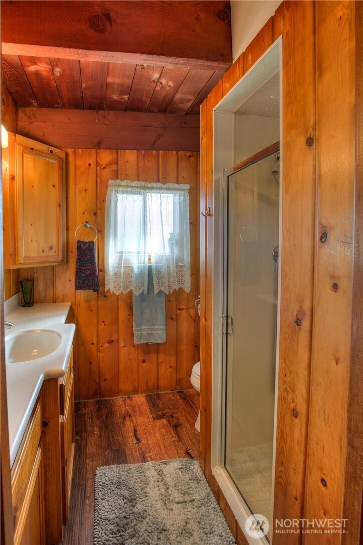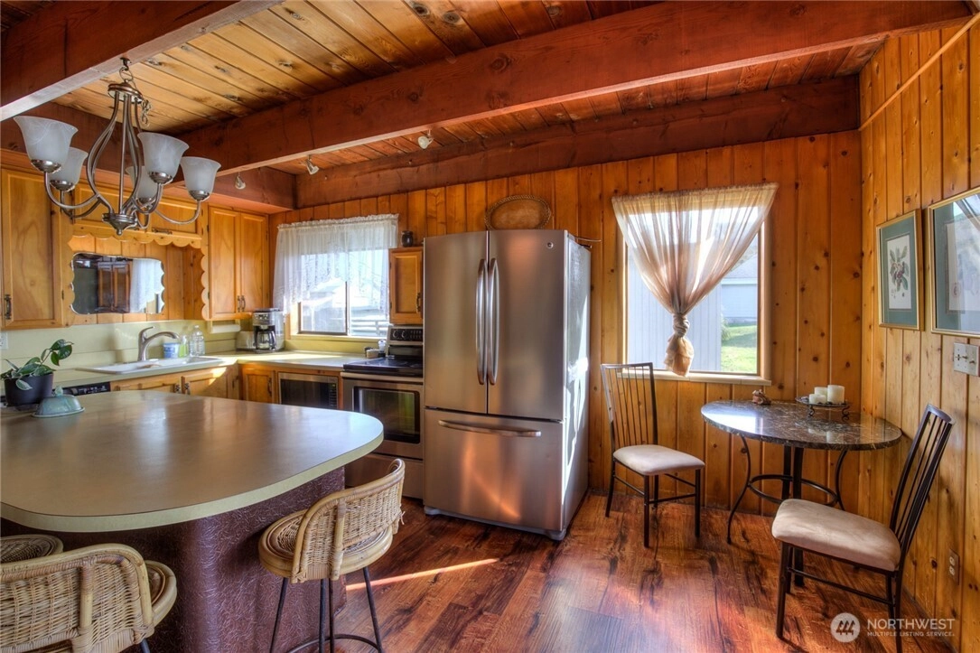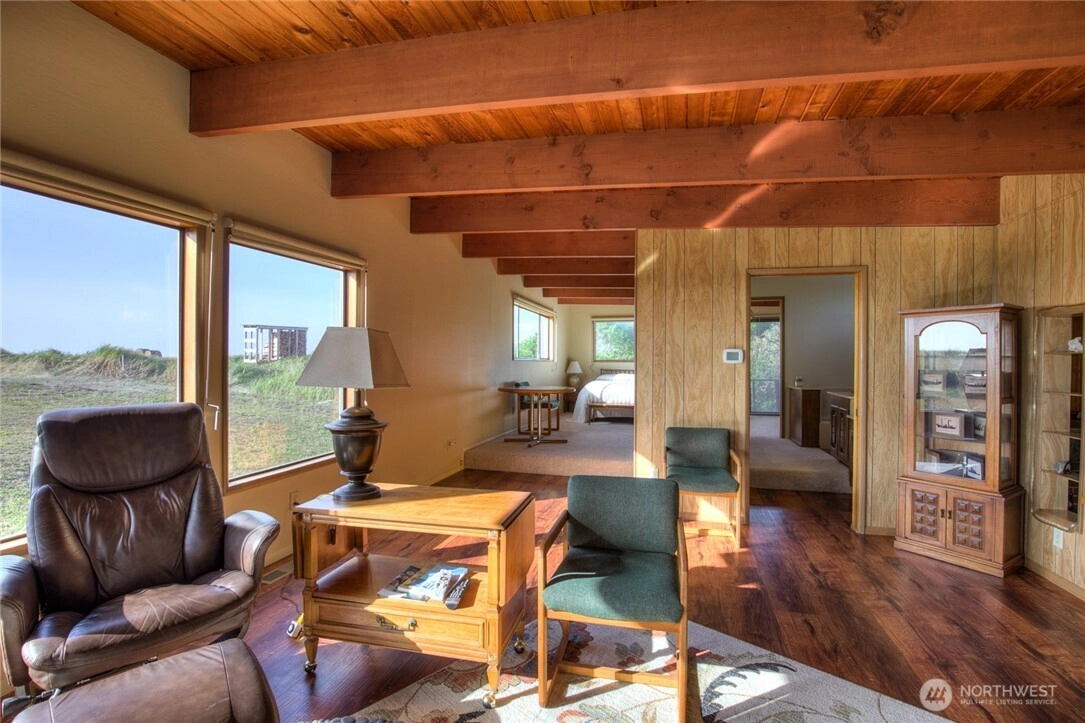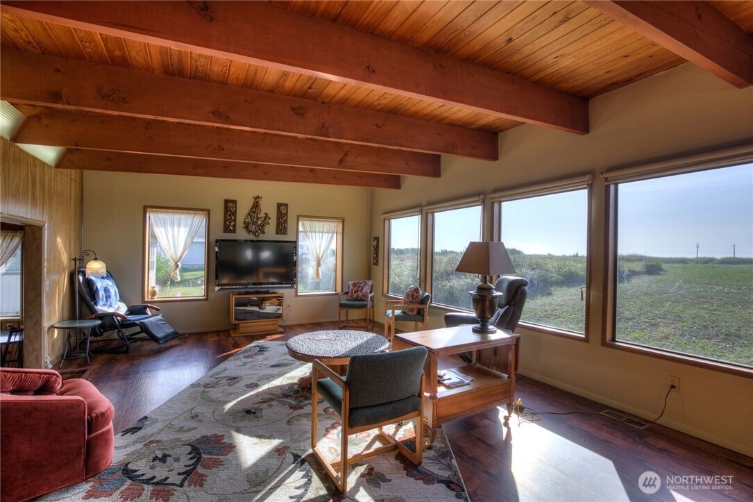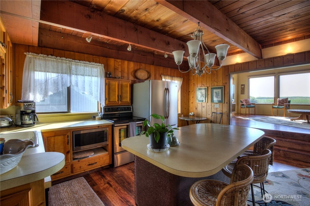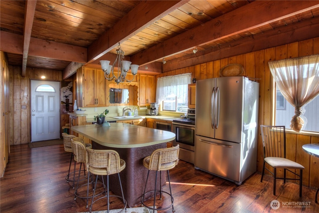 This unique, custom-built oceanfront home was originally constructed in 1959, with a thoughtfully designed addition added later. The open, spacious cabin features 2 bedrooms and 2 bathrooms, showcasing vaulted ceilings, skylights, and custom cabinetry that reflect a classic mid-century modern aesthetic. While natural beach growth has altered the original ocean views from the single-story design, the property offers exceptional potential—remodel, expand, or rebuild closer to the shoreline to maximize the setting. Located on a private street, it's just a short walk to the water’s edge. Additional features include an unfinished basement, an attached garage with a new roof (installed in 2025), and a new permitted 4-bedroom septic design.