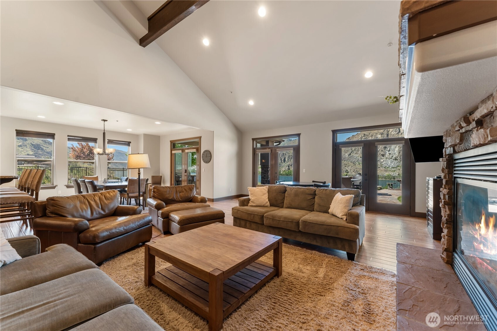 Immerse yourself in luxurious riverfront living at 31 S Shore Drive, a stunning 4bed/3.25bath home on the eastern shore of the mighty Columbia River. Perfect for outdoor living, the property is appointed w/ an in-ground swimming pool & spa, built in BBQ, fire pit, covered patios, as well as a buoy in your private cove on the river. The home features an upper owners suite w/ private bath, balcony & fireplace, high-end appliances in the deluxe kitchen, vaulted ceilings, beautiful bamboo flooring, arcade/game room, & luxury finishes throughout. Plenty of room in the heated 3-car garage for your toys, w/ overhead storage racks to maximize the space. Currently an STR, furnishings are included to allow a seamless transition for the new owner!