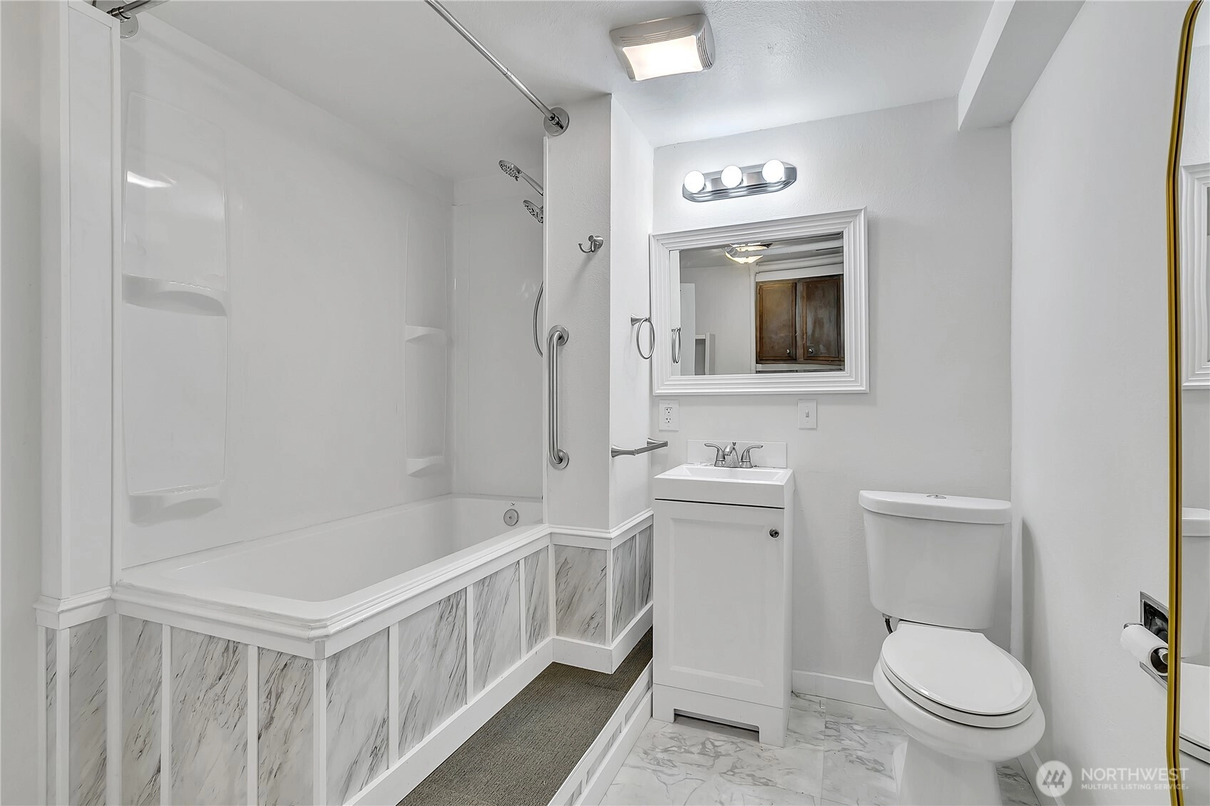 Live on top and rent below. 2 kitchens. The main floor of this home is set up for single level living with ramp access from the alley parking into the home. The primary bedroom has a private half bath and a Murphy bed. Seller preferred the larger bedroom that was once 2 rooms and could be converted back. The main floor bathroom also plays host to a washer and dryer. The gas fireplace plays center stage in the large living room. Stainless steel appliances and under cabinet lighting are a couple of the treats to be found in the kitchen. The basement level has its own laundry/bathroom and kitchen area for rental income or multigen living or whatever you like. The low maintenance outside has covered areas, composite decking and synthetic turf.