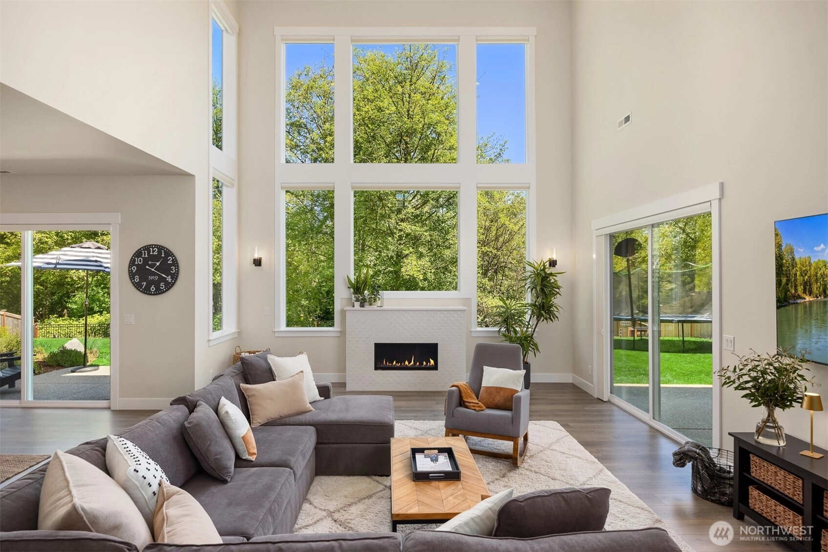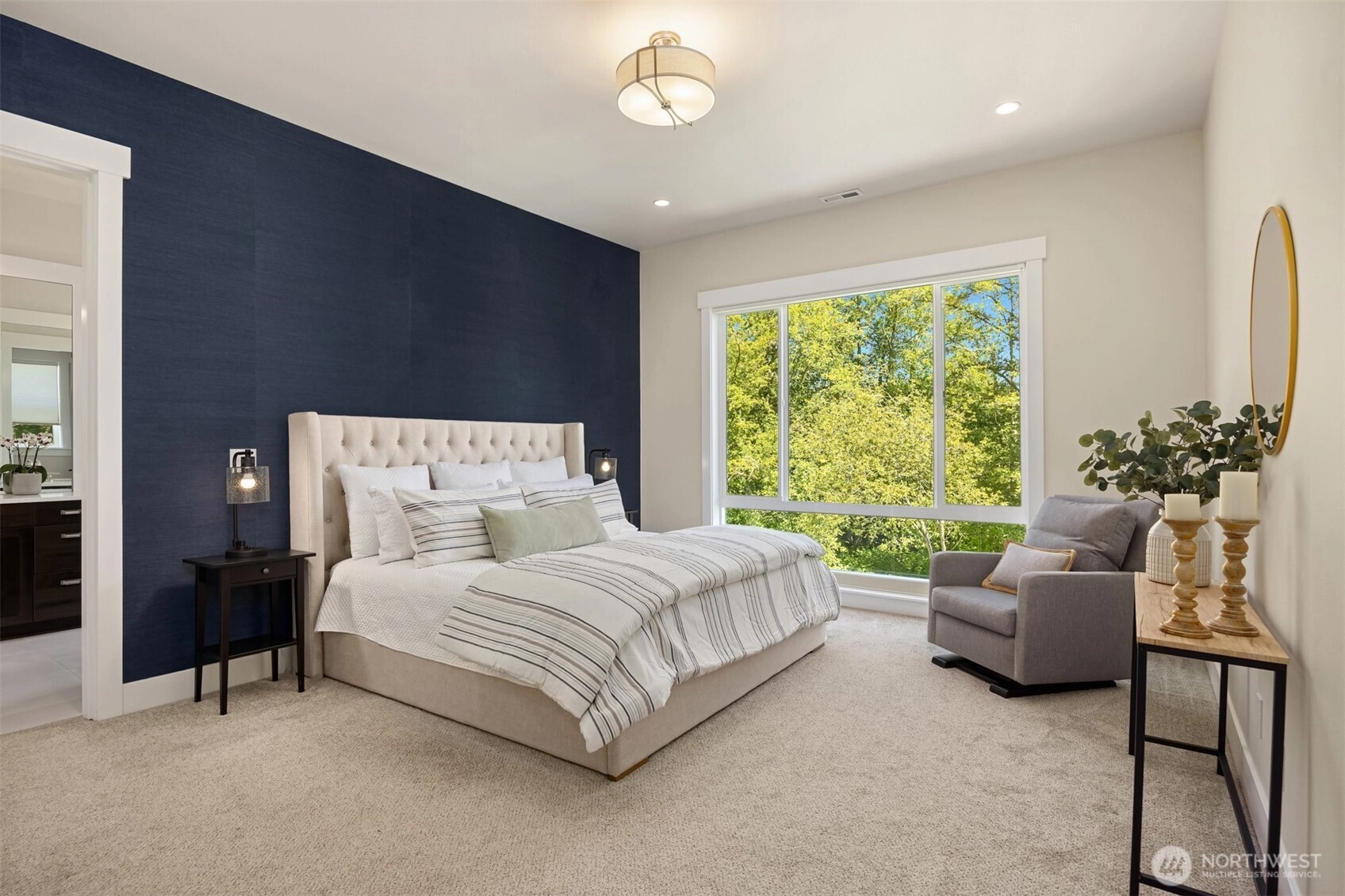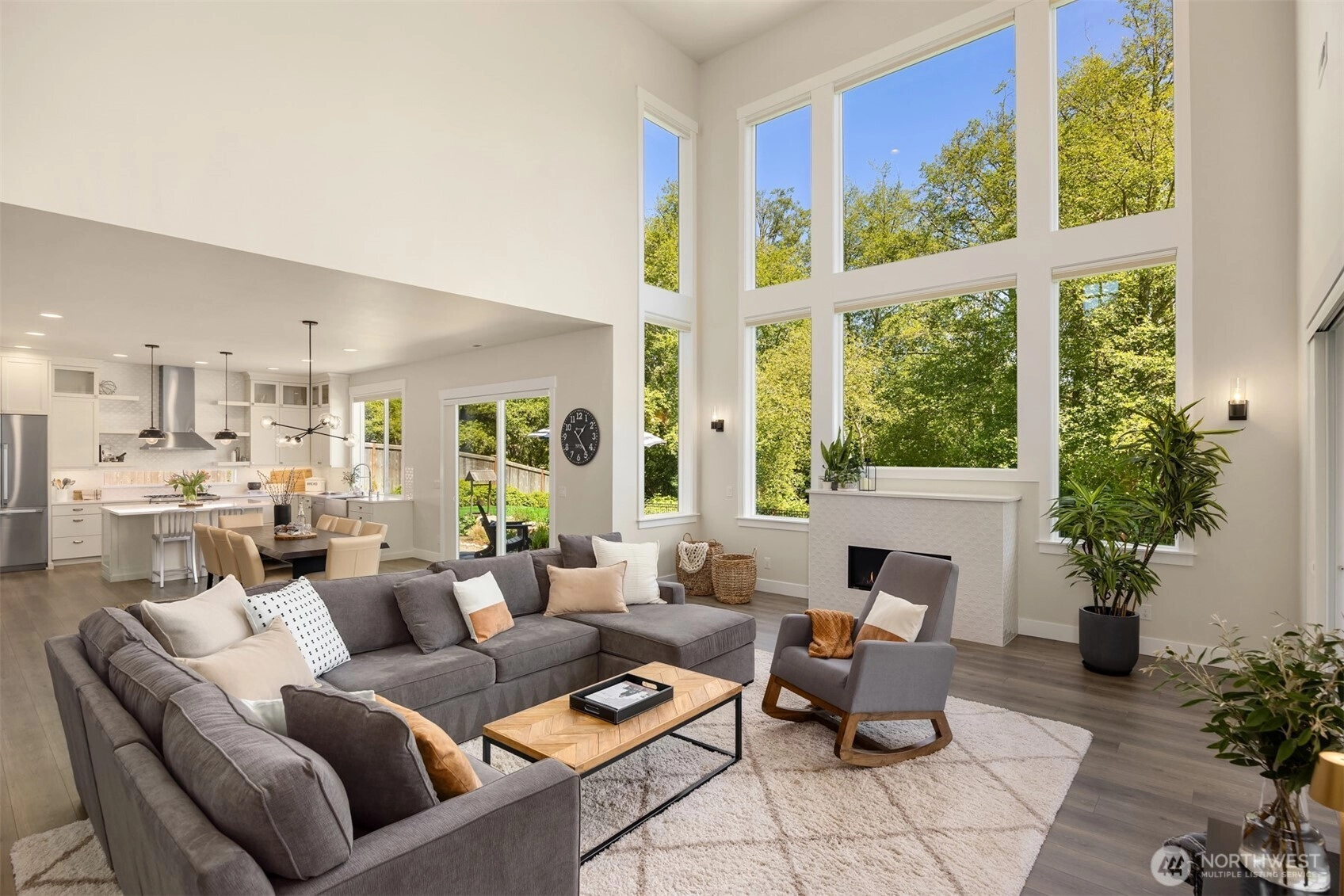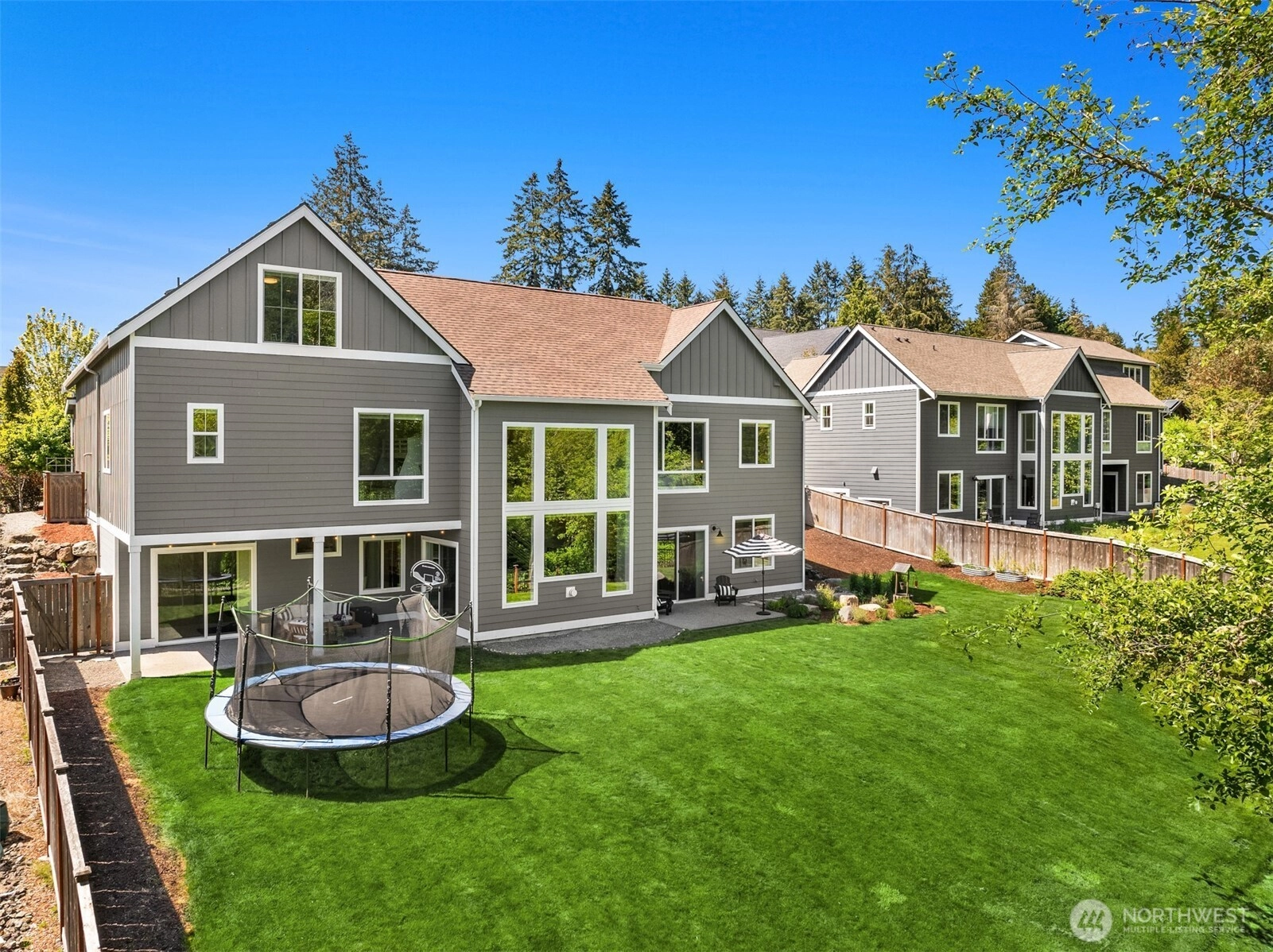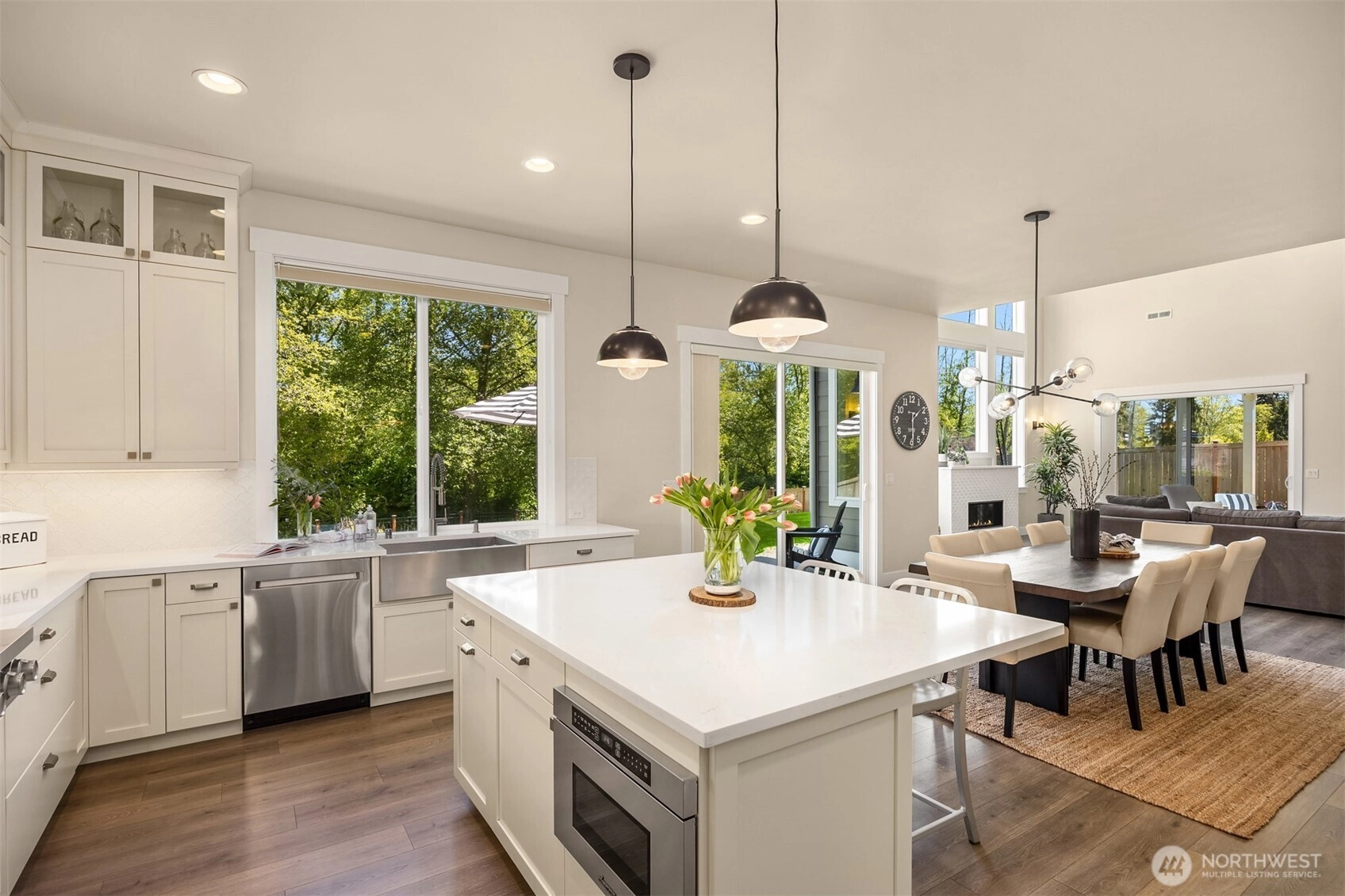 Four-bedroom modern craftsman with expansive and flexible living spaces that backs to protected green open space. Large primary suite with your dream walk-in closet-room is on the main level. Two more bedrooms, a bonus room, and laundry are on the opposite end of the wing and complete the main level. A modern staircase overlooks the bright living level with a dramatic wall-of-windows, chef's kitchen, home gym or office and private guest suite. The upper level offers a game room/bonus room plus a nanny suite, office or guest room with a full bathroom. Ample storage. Fun, fully fenced backyard with mature landscaping. EV-Charger, Cat-6 and Fiber. Less than a mile to the ferry and close to all levels of schools. An impressive, in-town package.