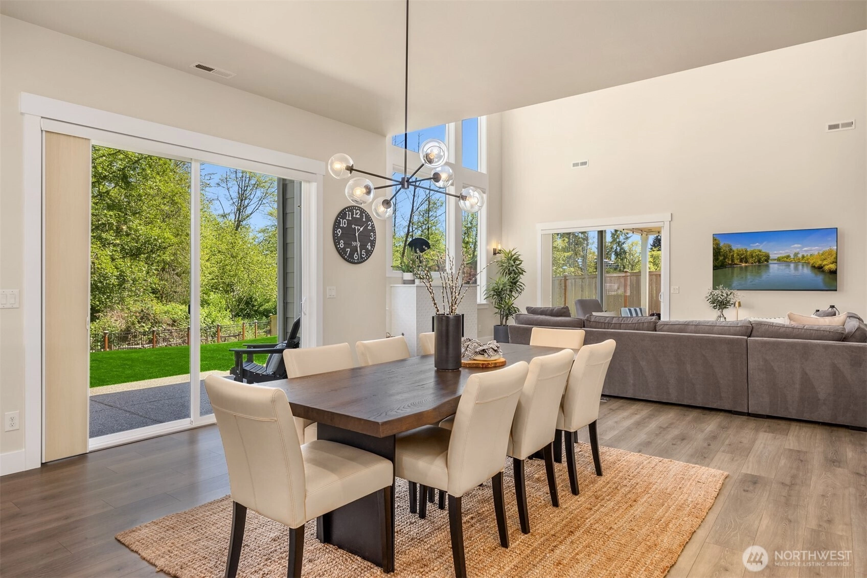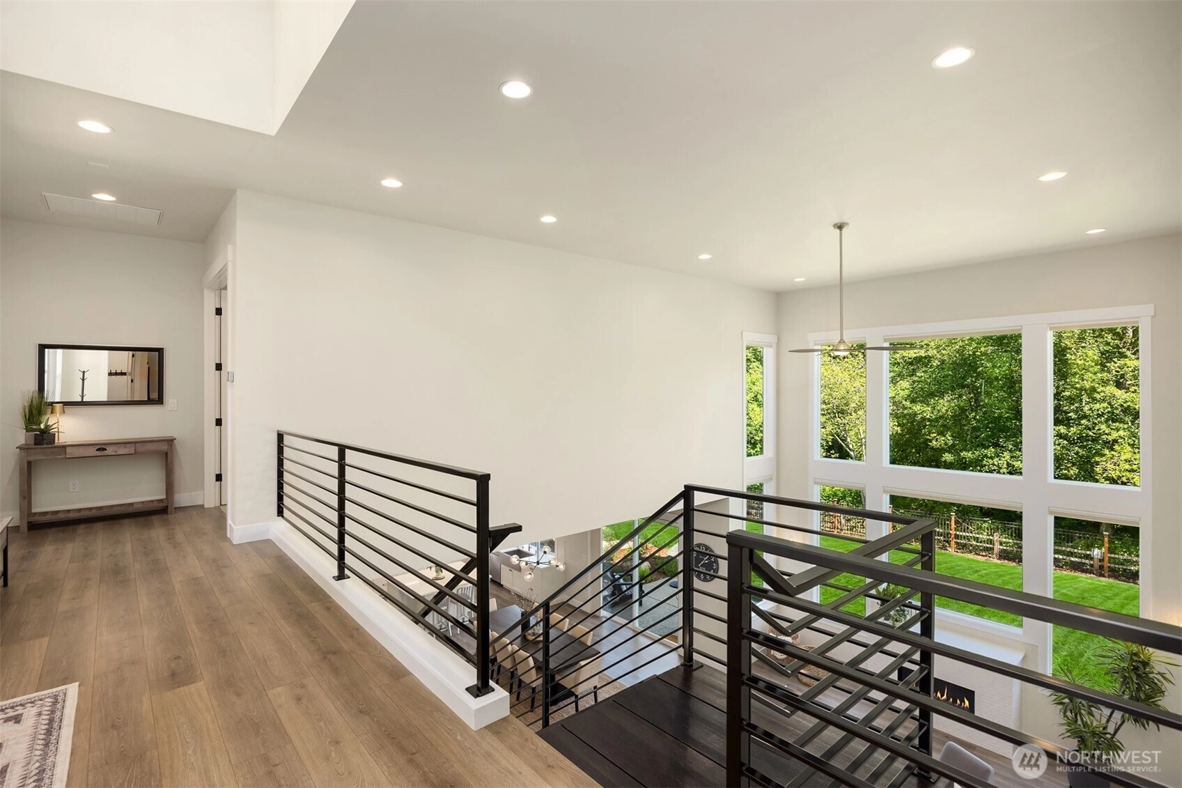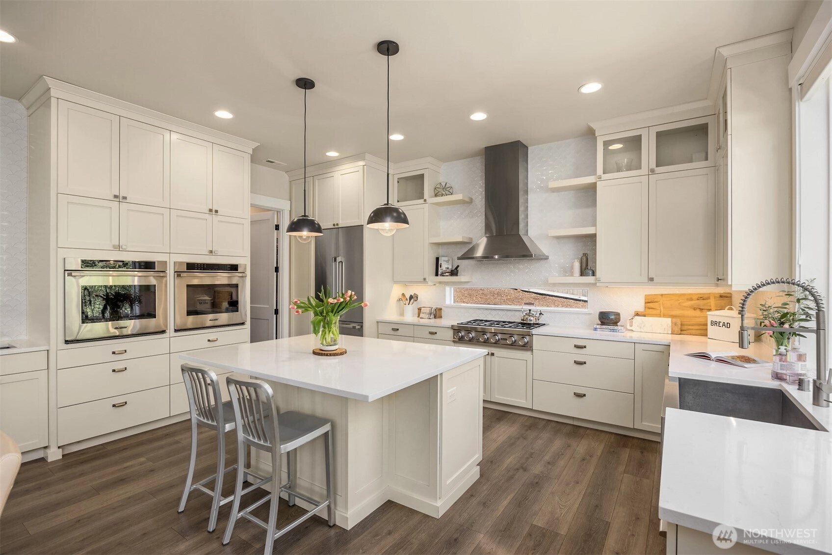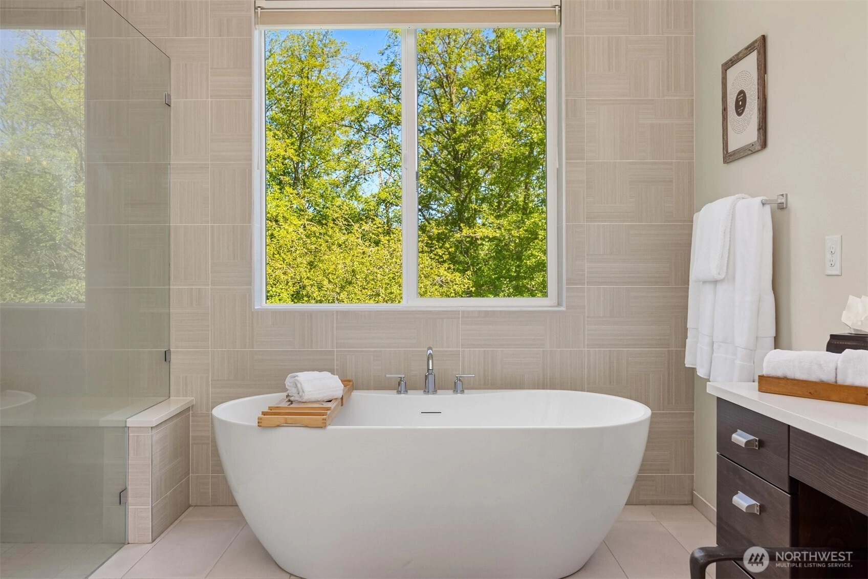Four-bedroom modern craftsman with expansive and flexible living spaces that backs to protected green open space. Large primary suite with your dream walk-in closet-room is on the main level. Two more bedrooms, a bonus room, and laundry are on the opposite end of the wing and complete the main level. A modern staircase overlooks the bright living level with a dramatic wall-of-windows, chef's kitchen, home gym or office and private guest suite. The upper level offers a game room/bonus room plus a nanny suite, office or guest room with a full bathroom. Ample storage. Fun, fully fenced backyard with mature landscaping. EV-Charger, Cat-6 and Fiber. Less than a mile to the ferry and close to all levels of schools. An impressive, in-town package.