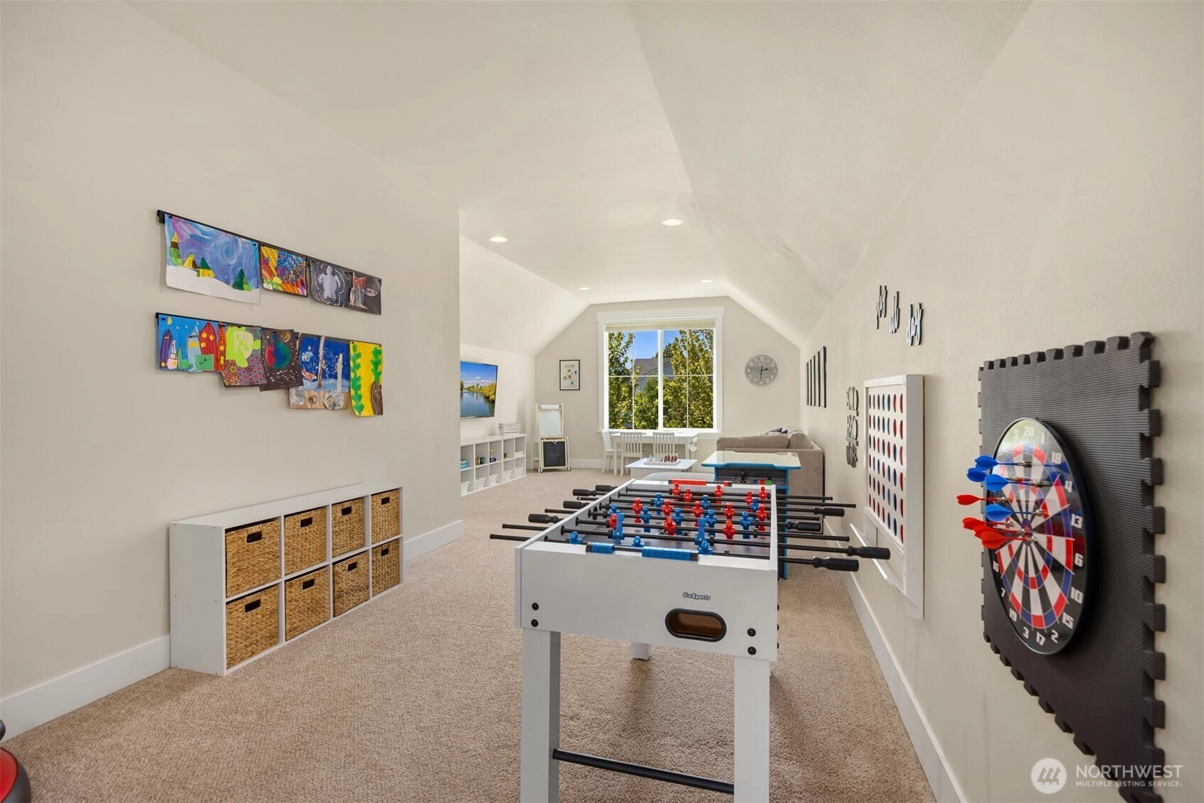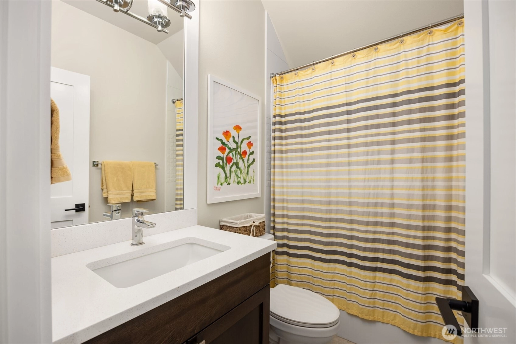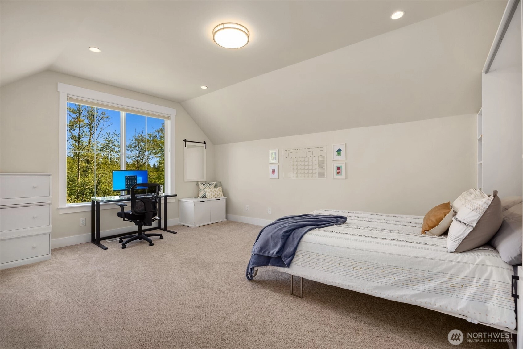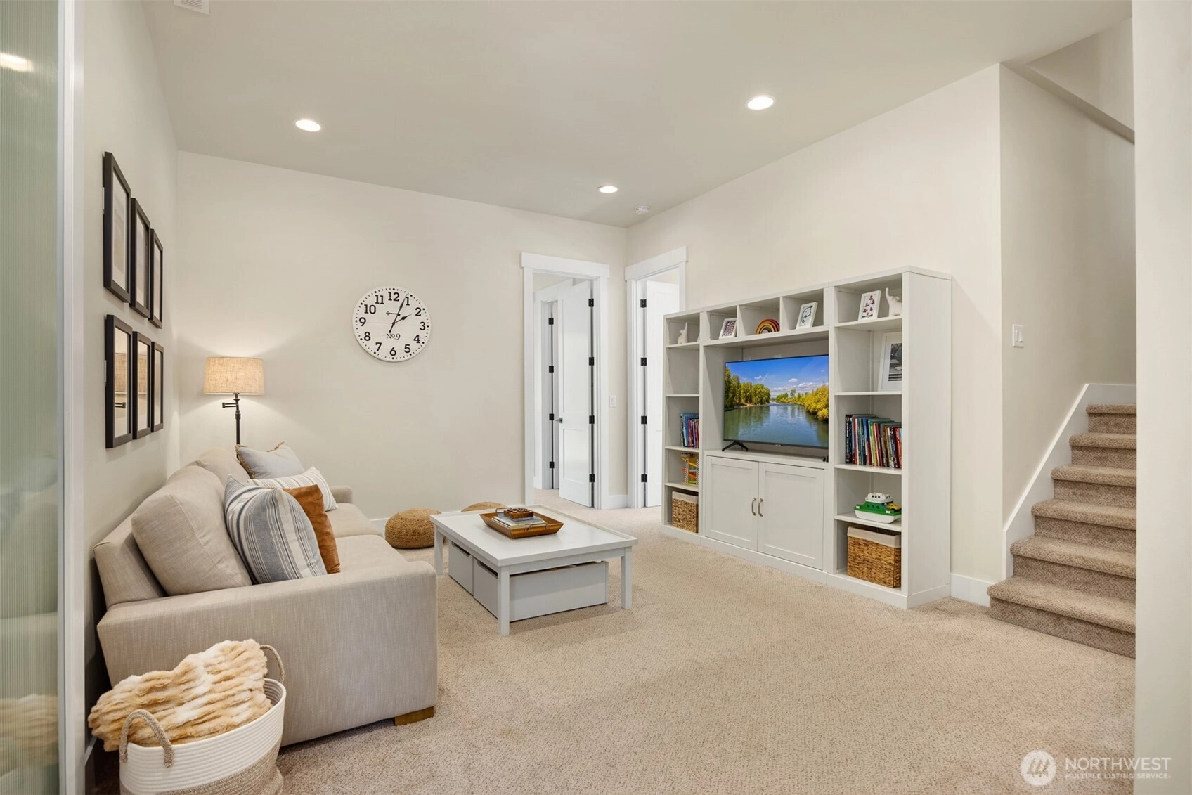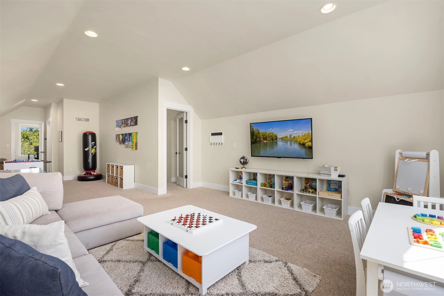 Four-bedroom modern craftsman with expansive and flexible living spaces that backs to protected green open space. Large primary suite with your dream walk-in closet-room is on the main level. Two more bedrooms, a bonus room, and laundry are on the opposite end of the wing and complete the main level. A modern staircase overlooks the bright living level with a dramatic wall-of-windows, chef's kitchen, home gym or office and private guest suite. The upper level offers a game room/bonus room plus a nanny suite, office or guest room with a full bathroom. Ample storage. Fun, fully fenced backyard with mature landscaping. EV-Charger, Cat-6 and Fiber. Less than a mile to the ferry and close to all levels of schools. An impressive, in-town package.
