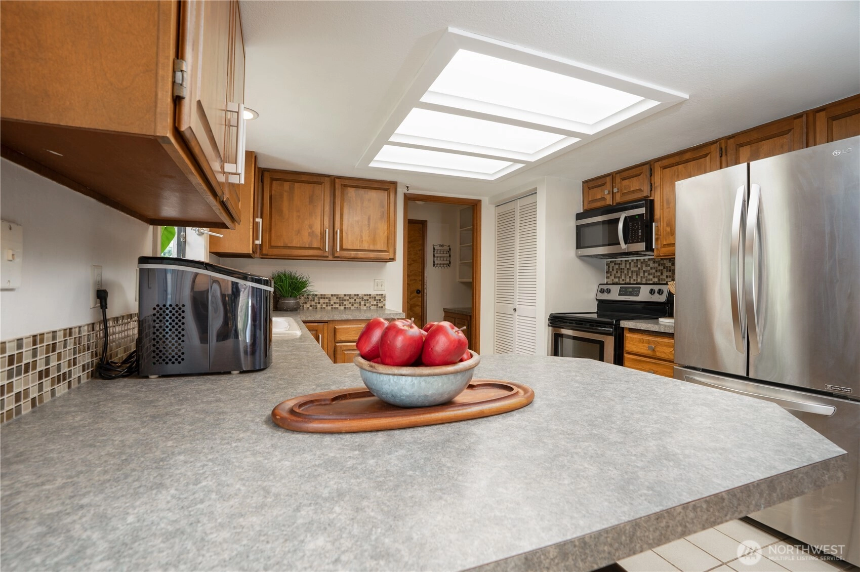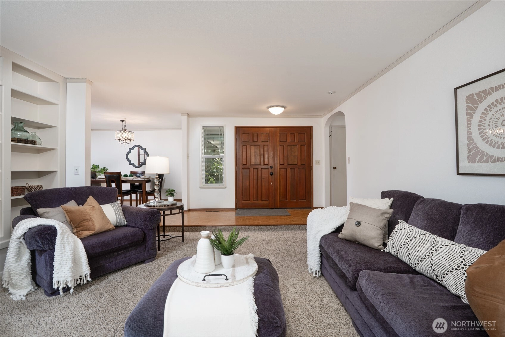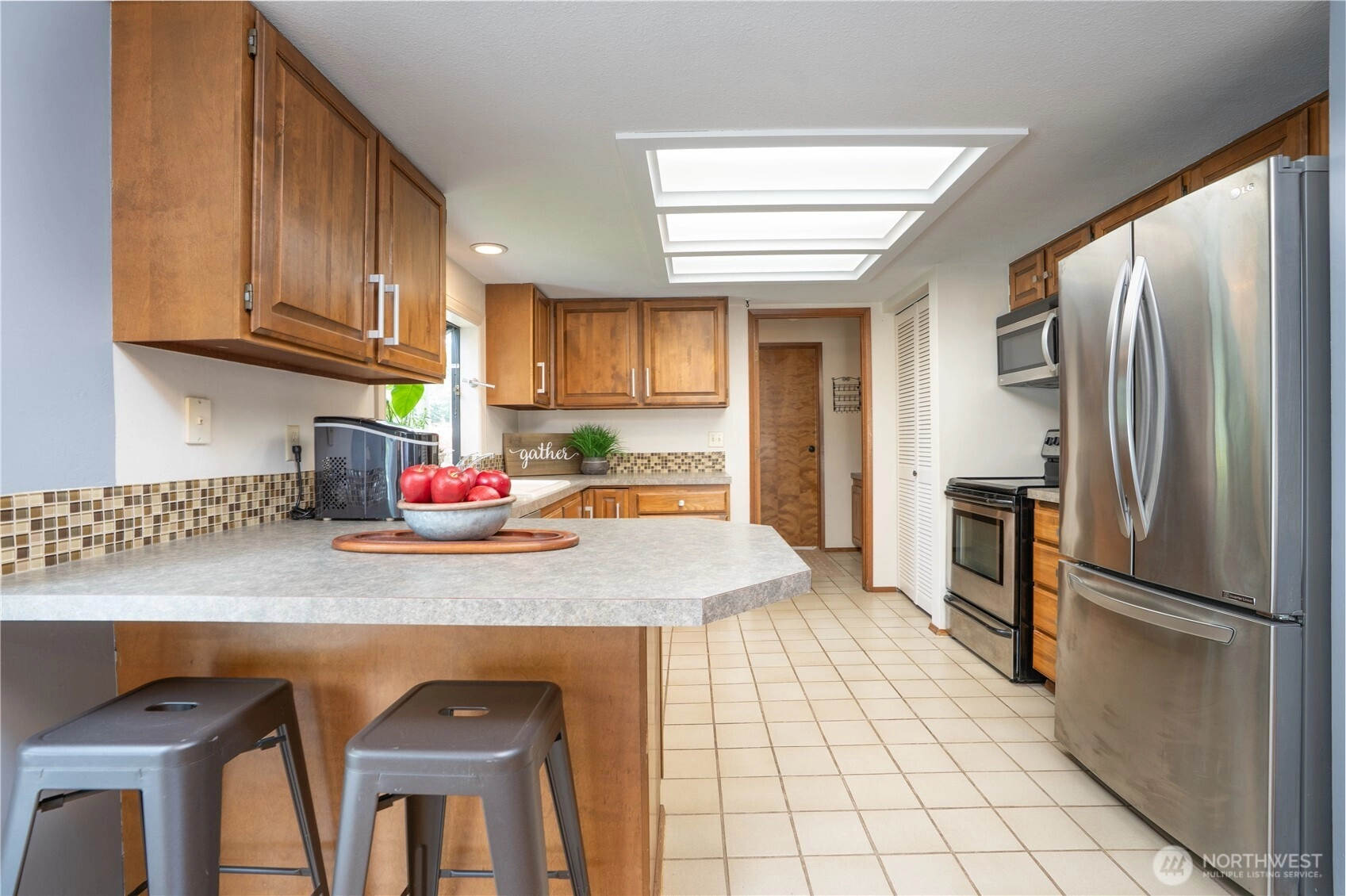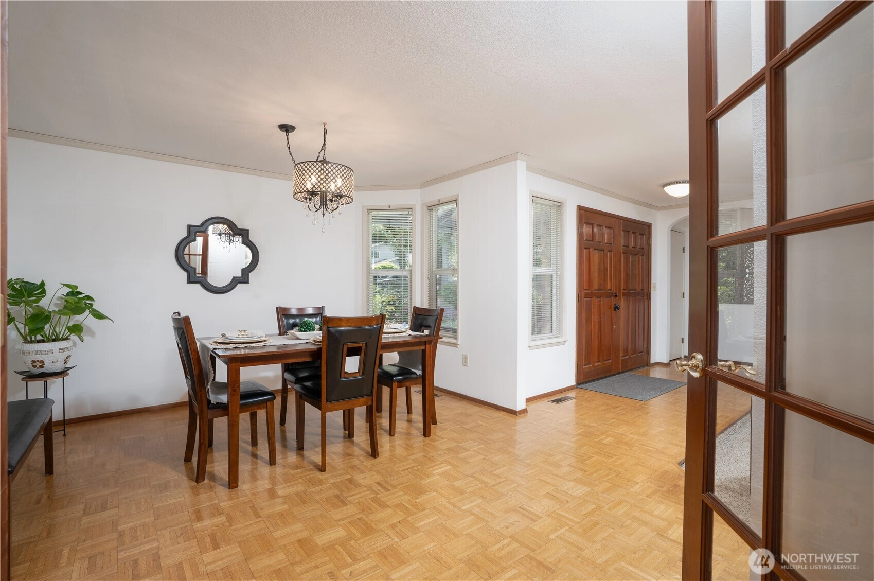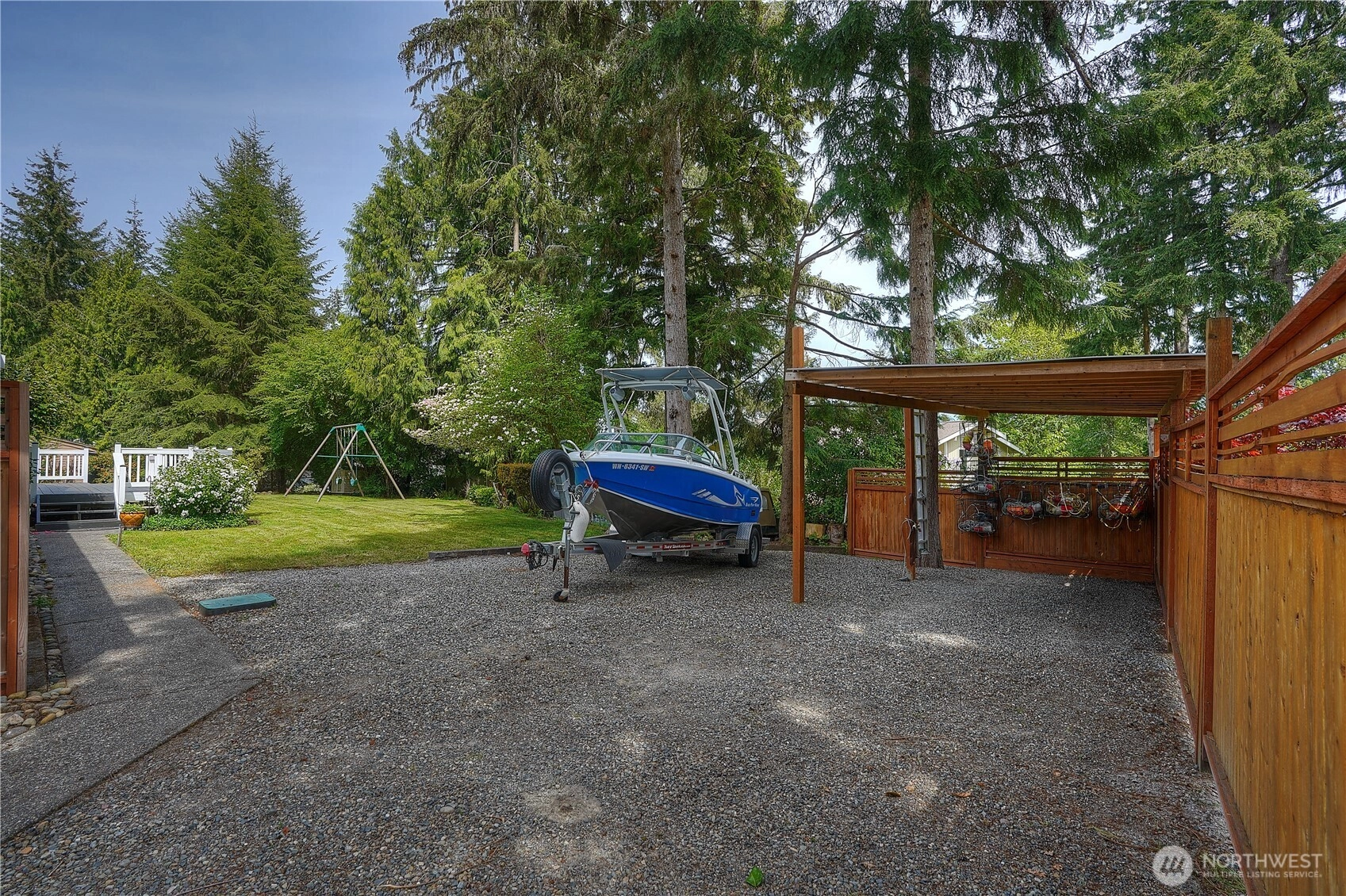 Tucked in the neighborhood of Forest Ridge, this move-in ready 3 bed, 1.75 bath rambler quietly screams PNW charm amidst this private setting. The home features a spacious living room with large new vinyl windows offering serene views of the mature landscaping. French doors lead to a family room that seamlessly connects to the kitchen and a generous wrap-around deck, ideal for outdoor entertaining. A dual-sided gas fireplace adds warmth and character, complemented by built-in cabinetry on each side. Situated on 0.43-acres providing a tranquil and private living experience, while still being conveniently close to Gig Harbor North Shopping and Highway 16 access.