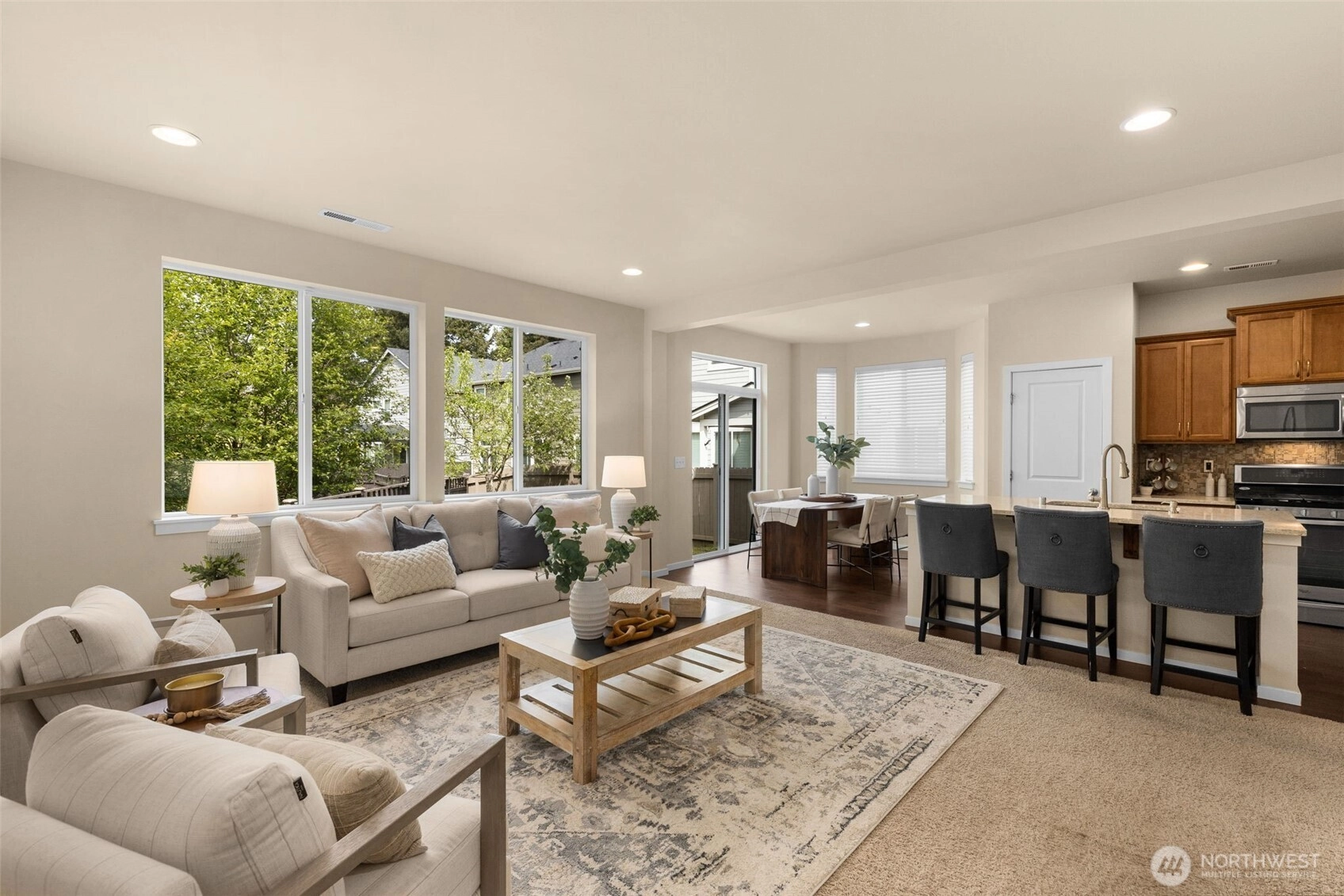 Immaculate Craftsman-style home in a quiet cul-de-sac in Woodridge Lane! This south facing residence offers 4 bdrms, 2.75 baths, a bonus family & spacious open floor plan ideal for entertaining. The chef's kitchen boasts elegant designer cabinetry, granite countertops, stainless steel appliances, a spacious island, gas cooking and a pantry. Ideal main floor bedroom with adjacent 3/4 bath. Upstairs you'll find 3 bdrms, sunny loft & primary complete 2w/a luxurious 5-piece bath & large walk-in closet. Enjoy the fully fenced backyard with an entertainment sized patio for private outdoor living. Easy access to Hwy-167, I-405 & Tukwila Station. Ample shopping, dining, entertainment choices nearby. Pre inspected. Welcome Home!
