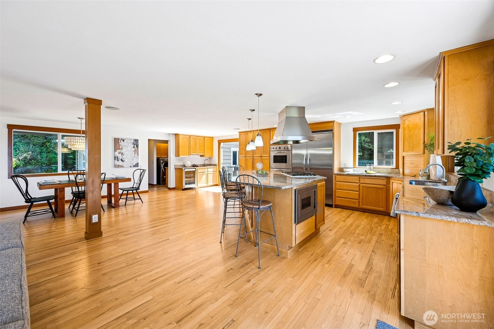 You'll feel like you live in a wildlife sanctuary far away from the rest of the world when you see Bald Eagles bathe at your natural spring pond, or watch the otters play in the water and sun themselves. Your views of Robinson Point on Maury Island and the Puget Sound are the cherry on top! This massive 5 bdrm, 3.5 baths home has plenty of space for everyone, and views from every room! You'll love great room living from the kitchen's granite counter tops & SS appliances to the radiant heated floors and the concept of indoor/outdoor living the large French doors that open onto the expansive deck provide.