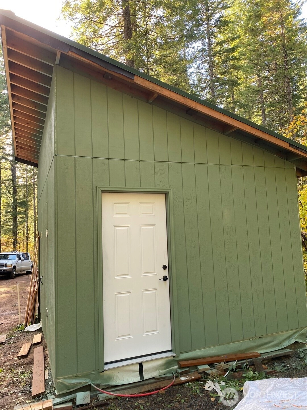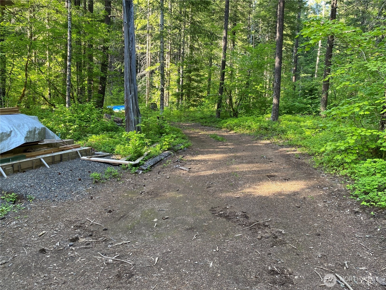 Nestled on a serene and private 5-acre parcel, this beautiful property offers a rare combination of peace and functionality. Surrounded by mature trees and set back from the end of a lightly inhabited road, the land features a solid 16x20 pump house/storage building constructed with 2x6 framing, 12" on-center rafters for snow load, 3/4" sheathing, and 1/2" T1-11 siding. Inside, power already in place with a 400-amp service and an indoor panel box ready for installation. Pump for the artesian well and most necessary components are included. Frost-free hydrant for gardening in a sunny clearing. A second 10x12 concrete pad, like the pump house slab, is equipped with radiant heat tubing—just add a hot water heater to complete the system.