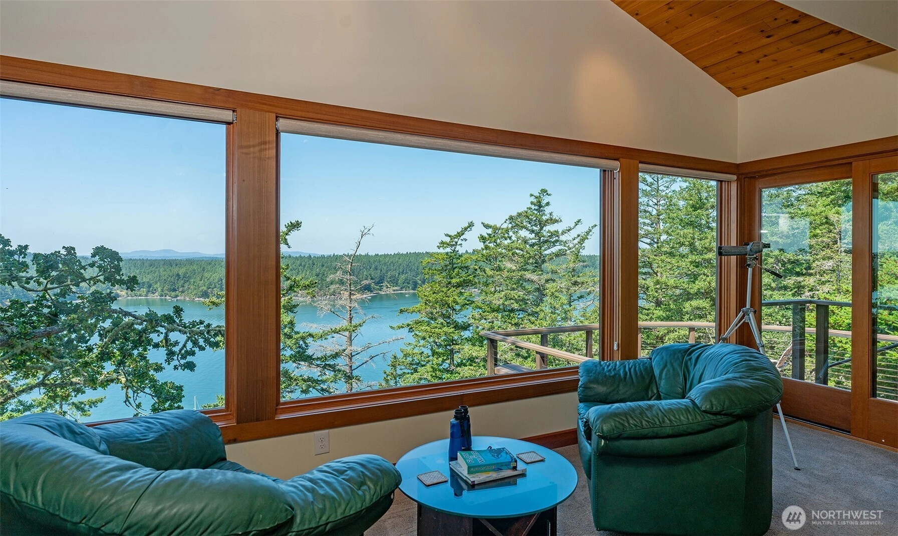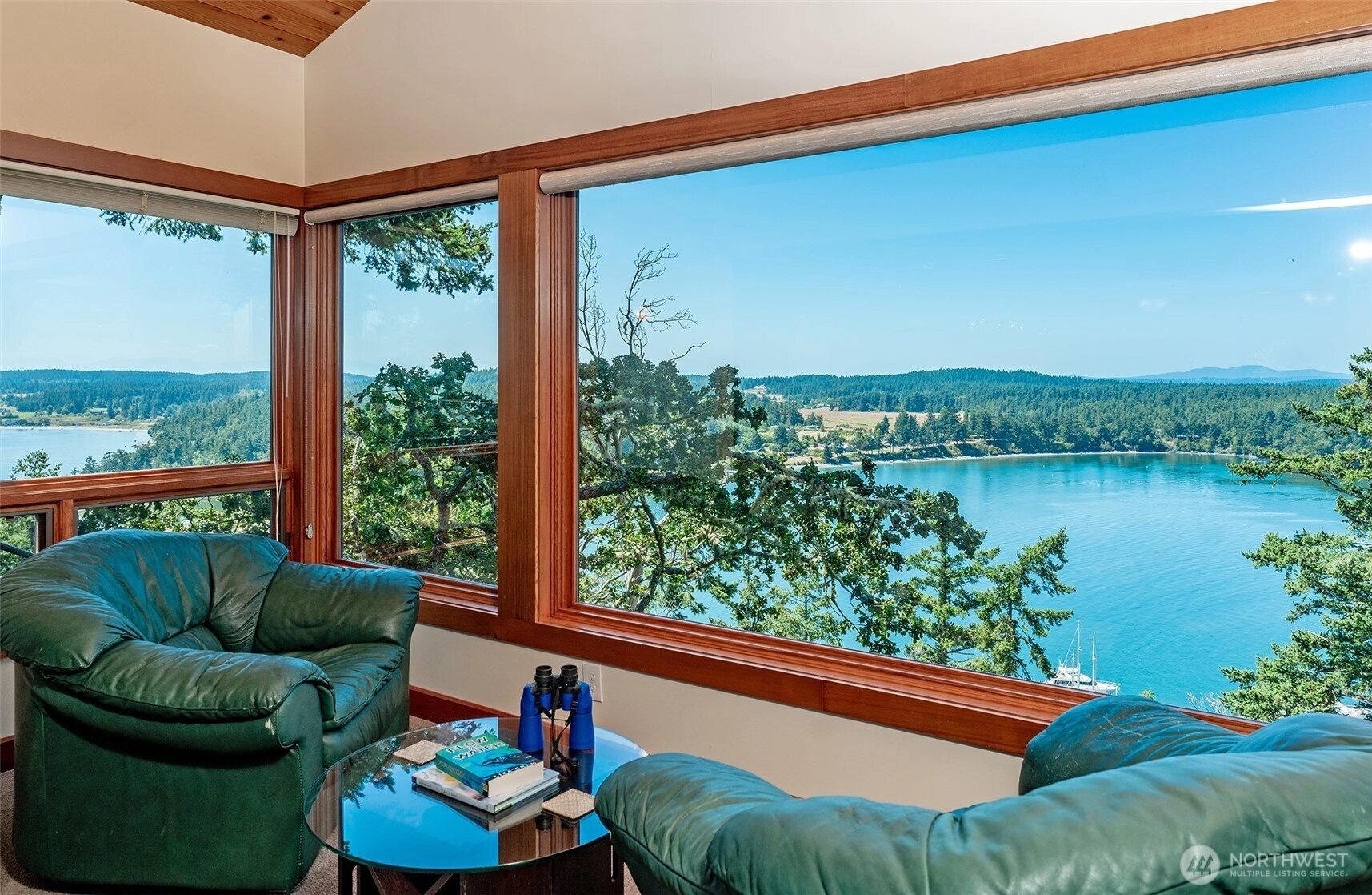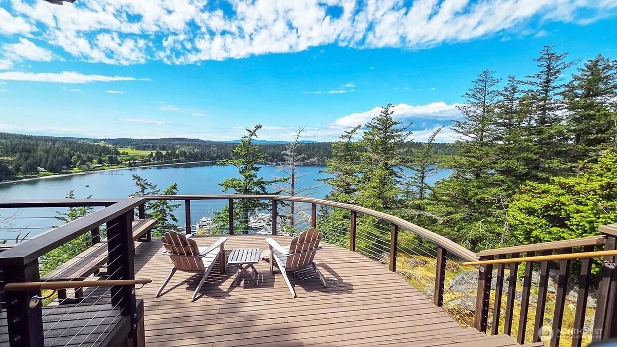 Beautiful home on private 6.23 view-acres located at the top of Humphrey Head on Lopez Island. Turnkey, move-in ready. Sweeping south and westerly sunset views, from the Olympic Mountains to San Juan Island. High-speed fiber optic internet. Quality interior with Brazilian cherry floors, Chinese slate, stone counters, and cherry wood cabinets. Built-in office. Separate Guest Studio: 2 car garage, workshop, 2 baths, and living space. Modern heat pump systems. Beautiful natural landscaping: Garry oak, madrona, and fir among a carpet of rock and moss. 6 minutes to ferry, 10 minutes to village. Perched above Spencer’s Landing Marina with easy access to your future boat and best crabbing in the islands. Don’t miss this rare opportunity!
