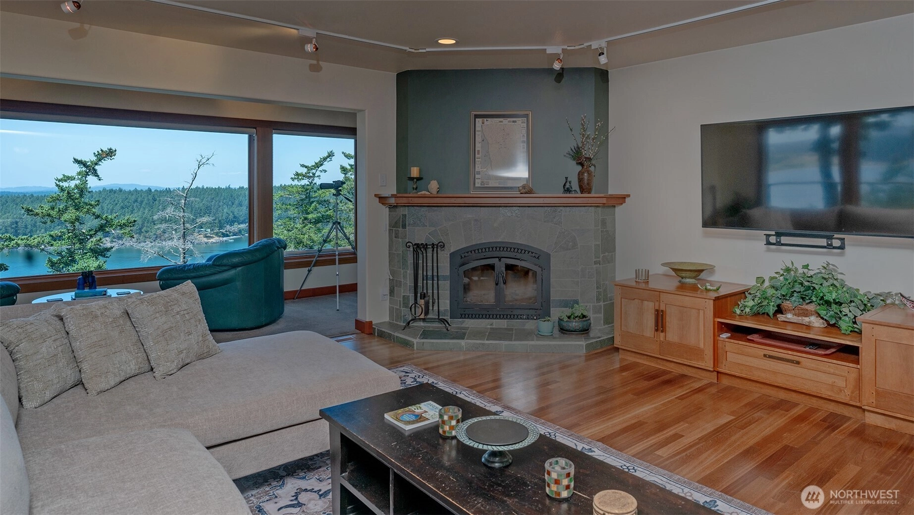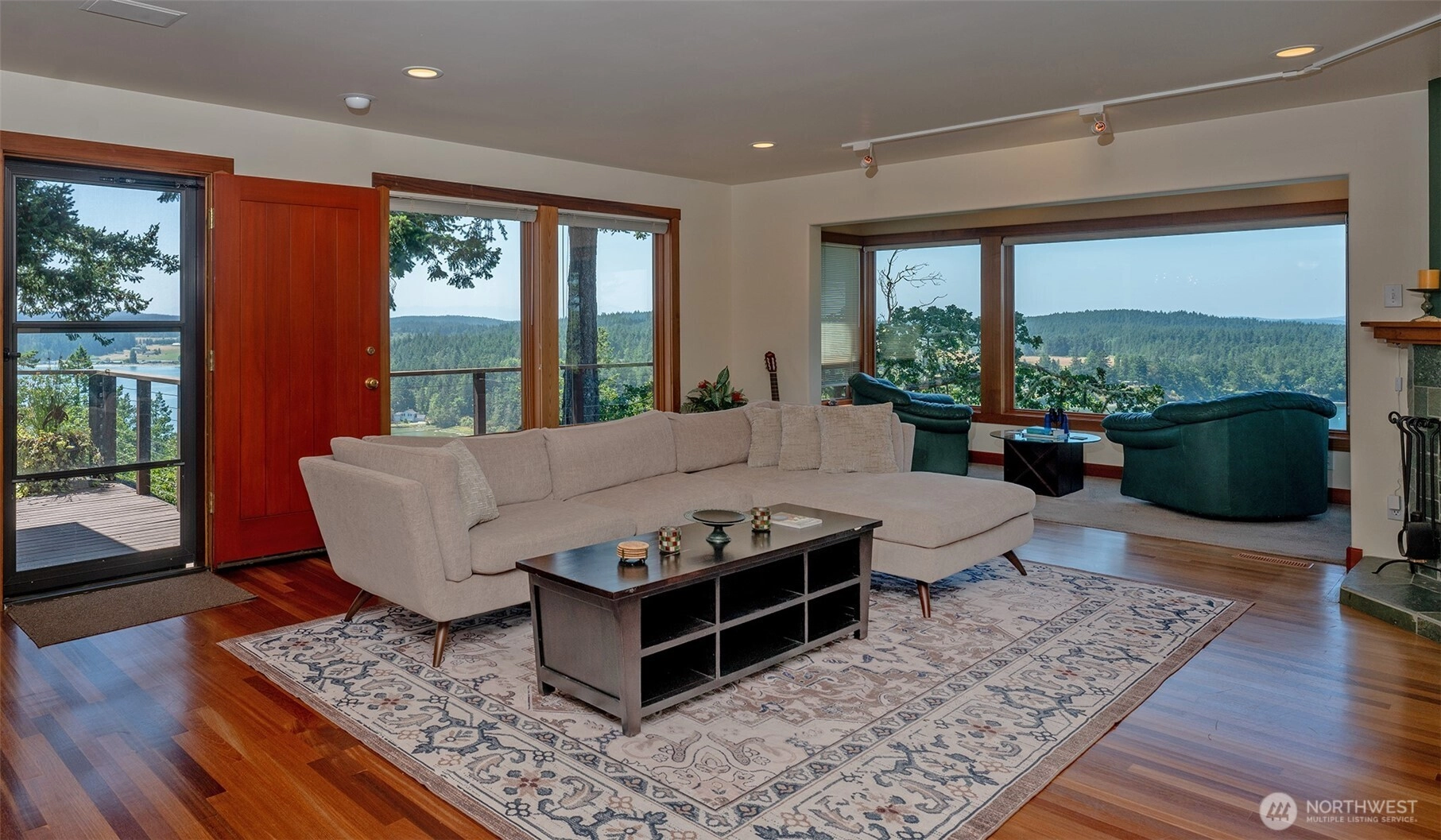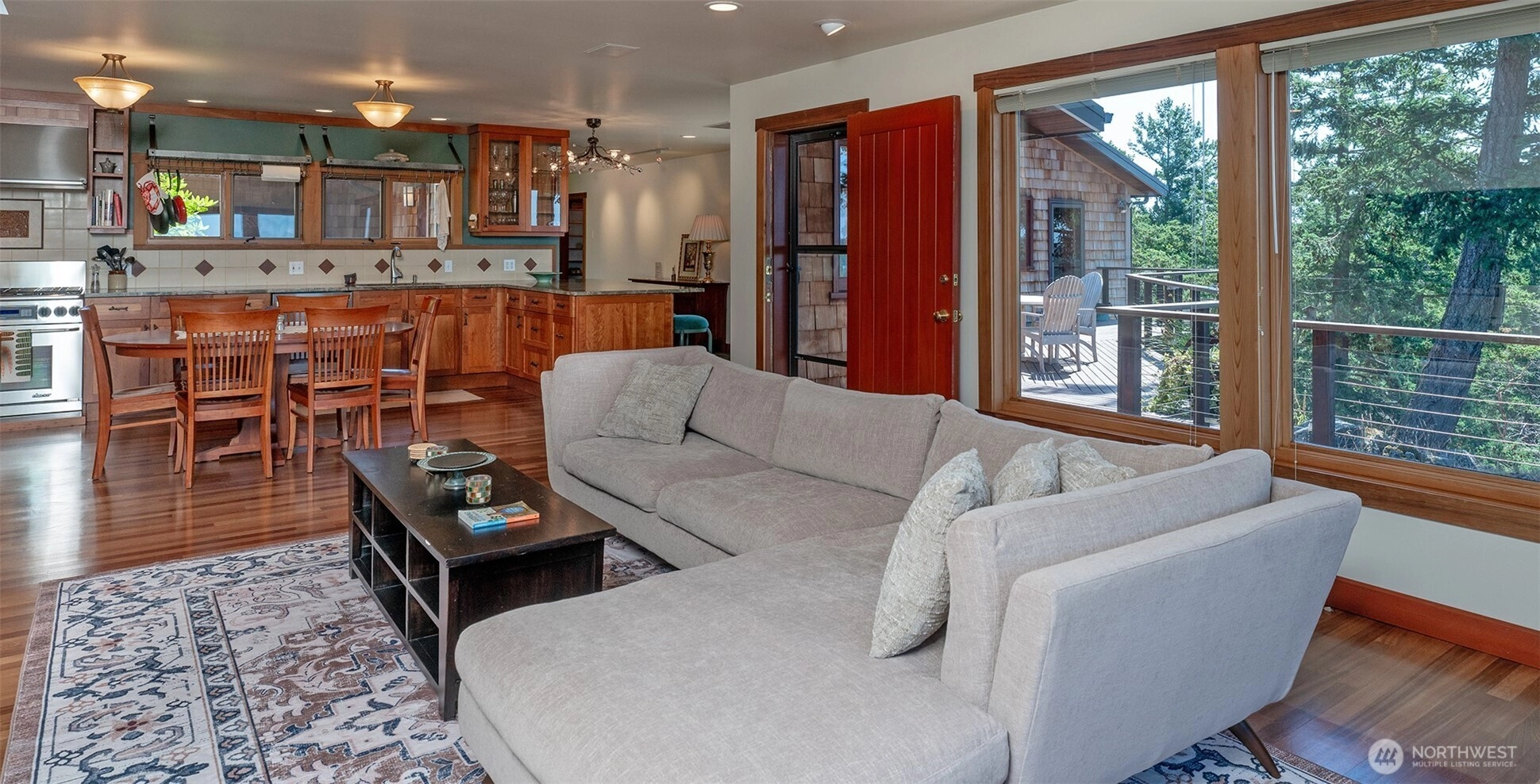 Beautiful home on private 6.23 view-acres located at the top of Humphrey Head on Lopez Island. Turnkey, move-in ready. Sweeping south and westerly sunset views, from the Olympic Mountains to San Juan Island. High-speed fiber optic internet. Quality interior with Brazilian cherry floors, Chinese slate, stone counters, and cherry wood cabinets. Built-in office. Separate Guest Studio: 2 car garage, workshop, 2 baths, and living space. Modern heat pump systems. Beautiful natural landscaping: Garry oak, madrona, and fir among a carpet of rock and moss. 6 minutes to ferry, 10 minutes to village. Perched above Spencer’s Landing Marina with easy access to your future boat and best crabbing in the islands. Don’t miss this rare opportunity!