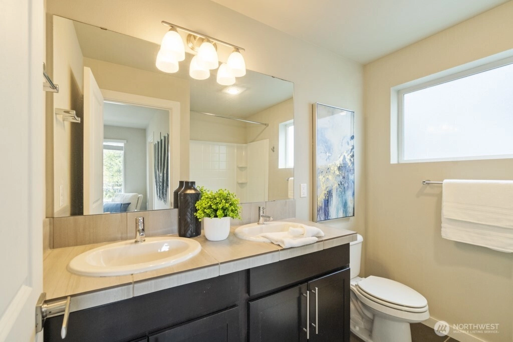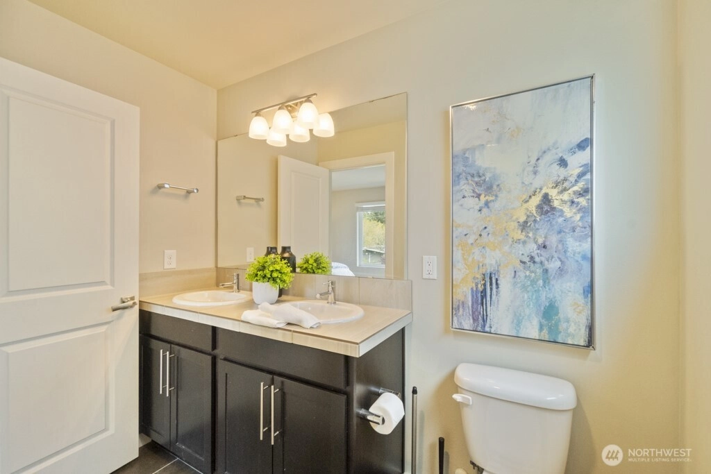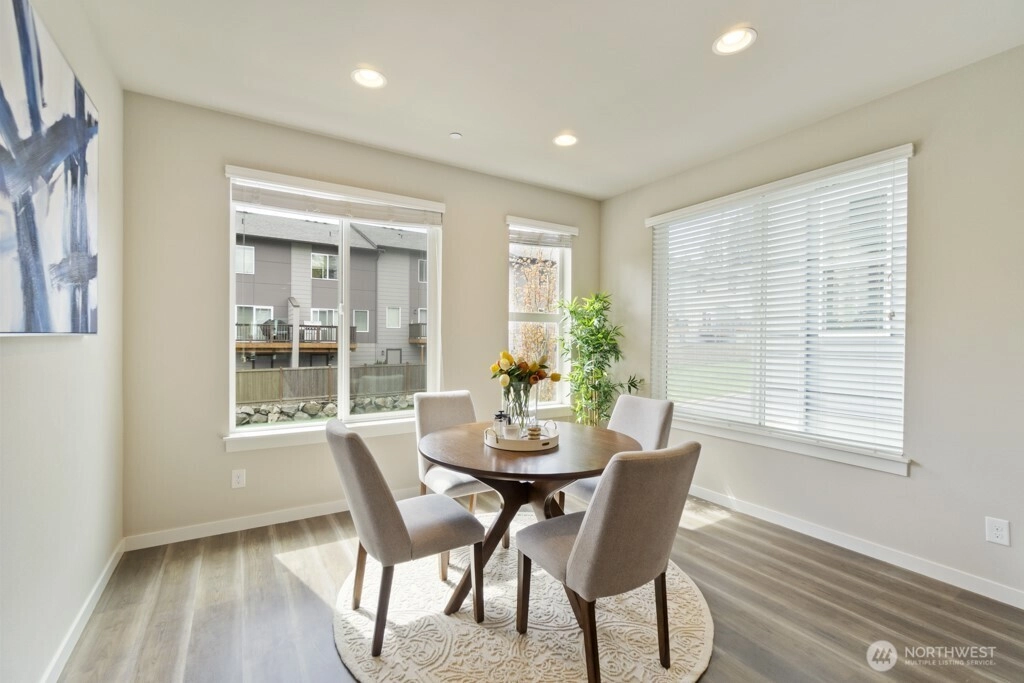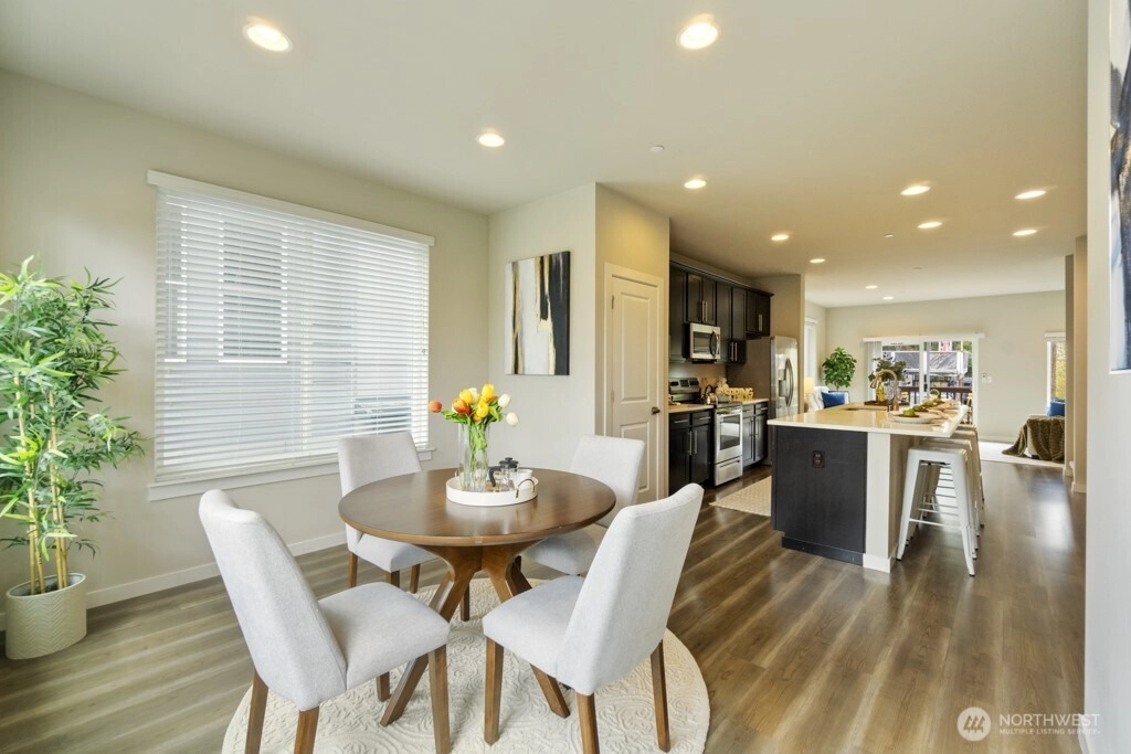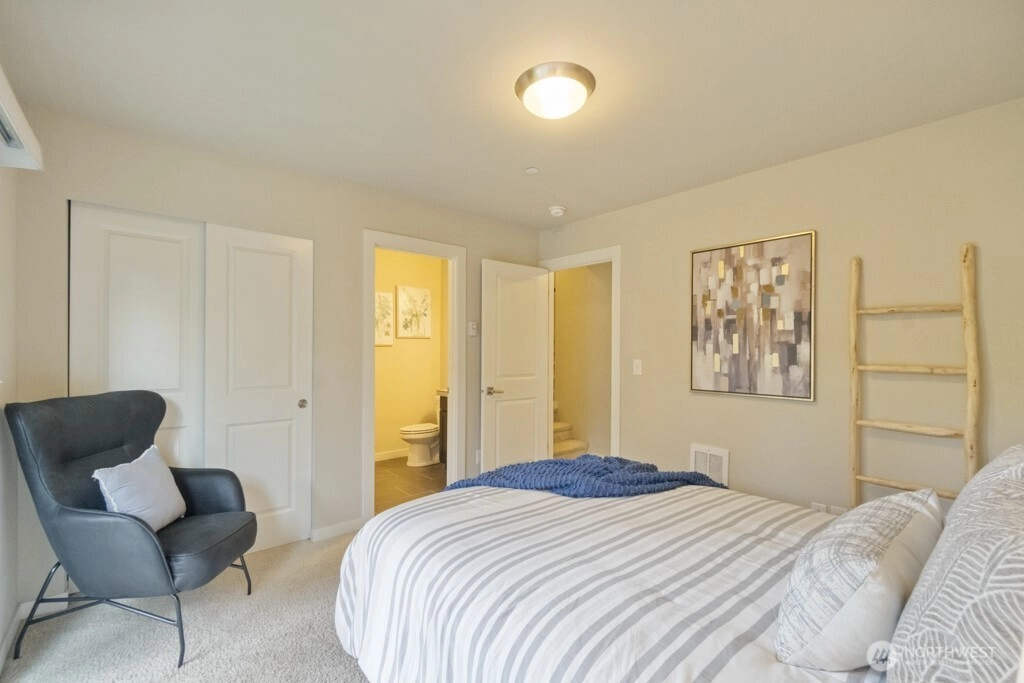 Located just north of Seattle in Lynnwood, this modern townhouse offers a blend of space, style, & convenience. It features 4 bedrooms & 3.25 bathrooms, including 2 ensuite primary bedrooms—ideal for flexible living or guests. The open layout is filled w/natural light, tall ceilings, & a modern color palette. The gourmet kitchen has quartz countertops, stainless steel appliances, & a pantry—perfect for everyday living & entertaining. Mini-split system + smart home features offer year-round comfort. Outside, enjoy a freshly stained deck, new sod, fenced yard, & 2-car garage. Conveniently located near I-5/I-405, Alderwood Mall, Interurban trail, Martha Lake, a dog park, & the upcoming Light Rail with easy Park & Ride access. Move-in ready!