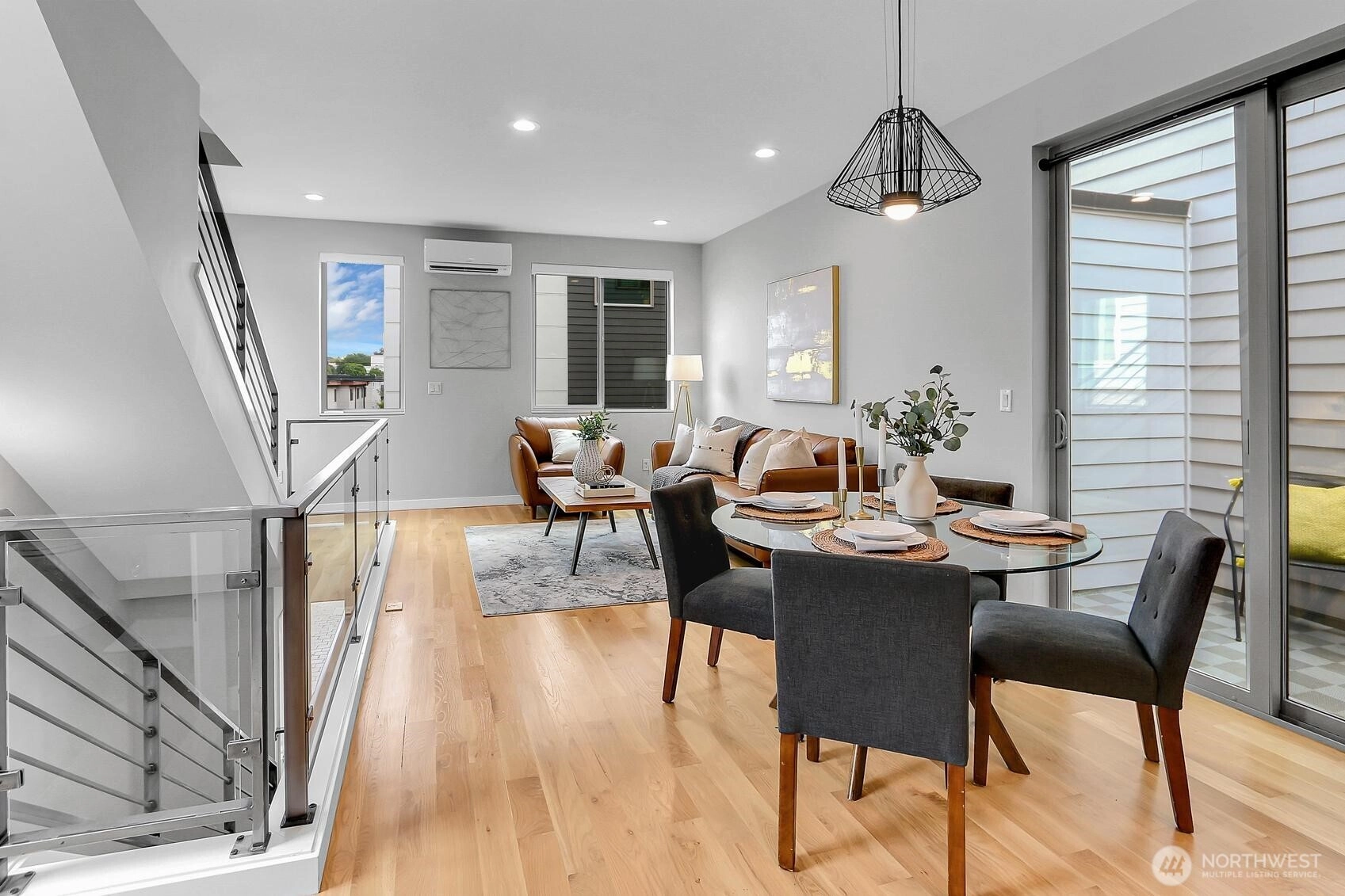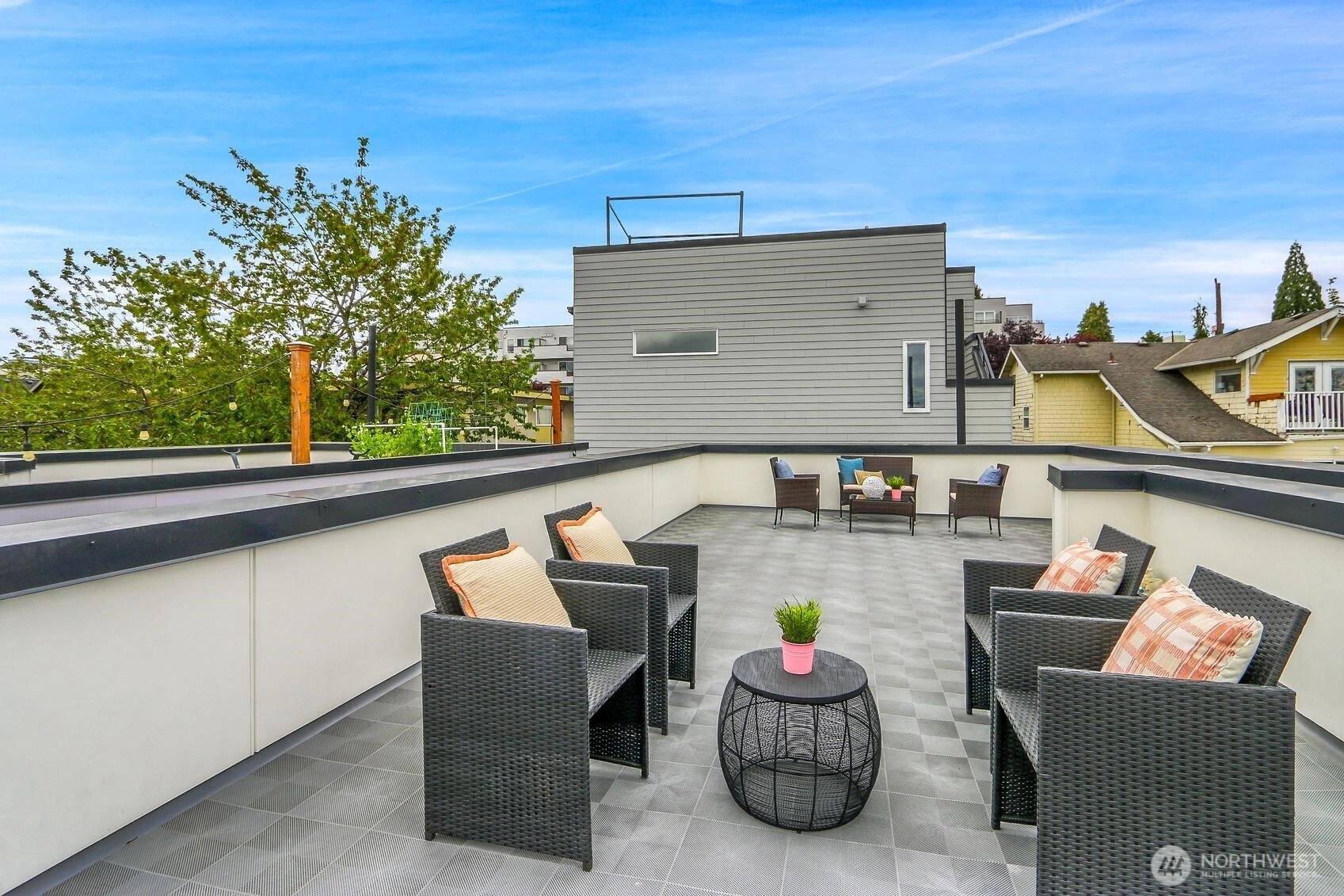 Like NEW duplex-styled townhouse in vibrant Wallingford w/3 BR & 3.25 bath+1 car garage! Nice & bright main level features open great room & dining w/HW floor throughout, a powder room+modern kitchen w/center island, quality cabinets, slab quartz countertop, SS appliances+pantry. Dining area w/glass door to private balcony. Top floor features primary en-suite + 2nd BR (staged as den) & hall bath+laundry. Entry level 3rd BR w/attached 3/4 bath for guest or AirBandB? Amazing views from rooftop deck! Truly an urban retreat! Quality built w/tankless hot water heater, high tech wired+modern hardware, lighting & fixtures. Excellent location w/minutes walk to local amenities, restaurants & more. NO HOA! Perfect for owner occupied or as investment