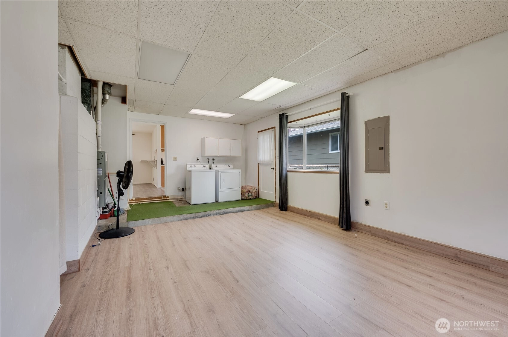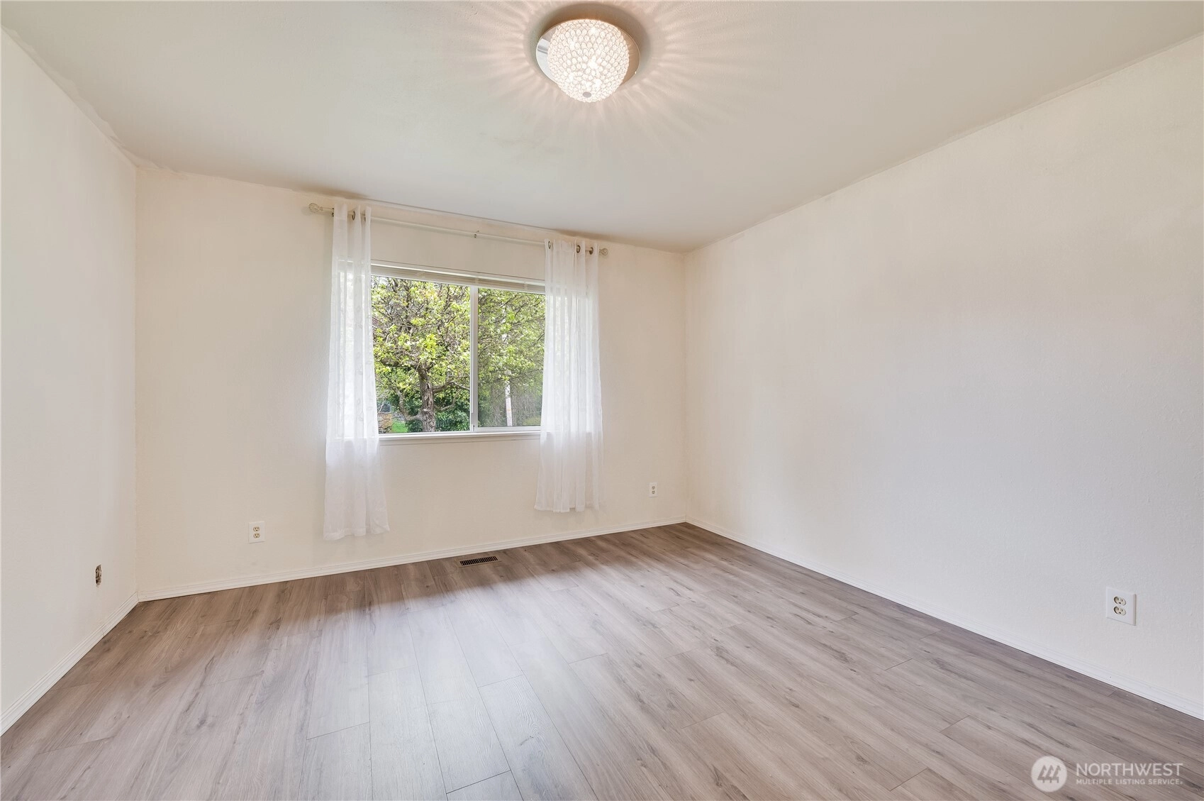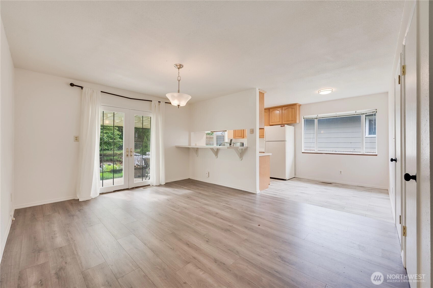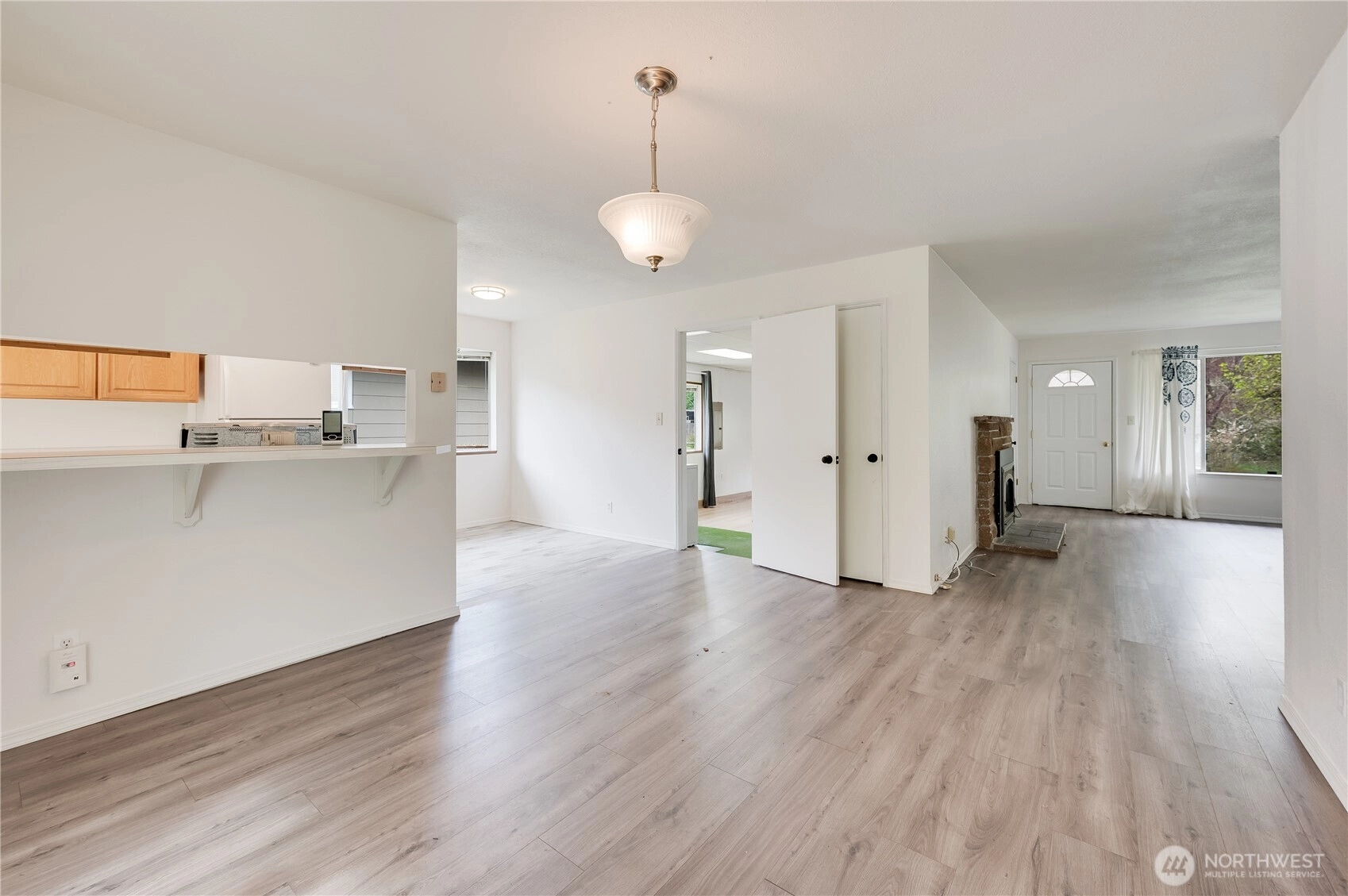 Get away from the hustle to this charming 3 bed 1.75 bath Rambler on a huge fenced lot! Updated! – Fresh interior paint - Laminate floors throughout - Spacious living room w/ cozy gas fireplace. Bonus room, perfect for family room, home office, utility space, or even a possible 4th bedroom! - Outside – the huge covered patio creates the ideal space for relaxing, entertaining, or outdoor dining. Detached 960sqft garage gives you lots of options; park 3-4 cars, be creative in the large workshop or Hey, w/ a 3/4 bath already there, convert a portion into an ADU, guest suite, home office, AirBnB, rental income or even an art/music studio - Garden space w/ fruit trees, blueberries and blackberries is ready for your magic to happen!