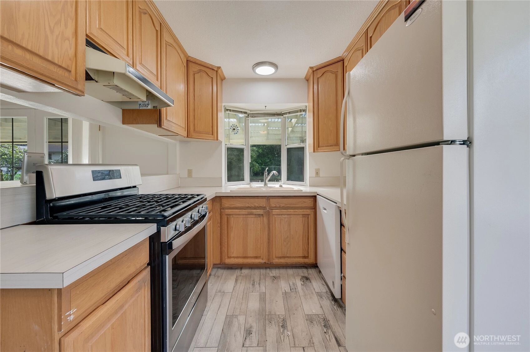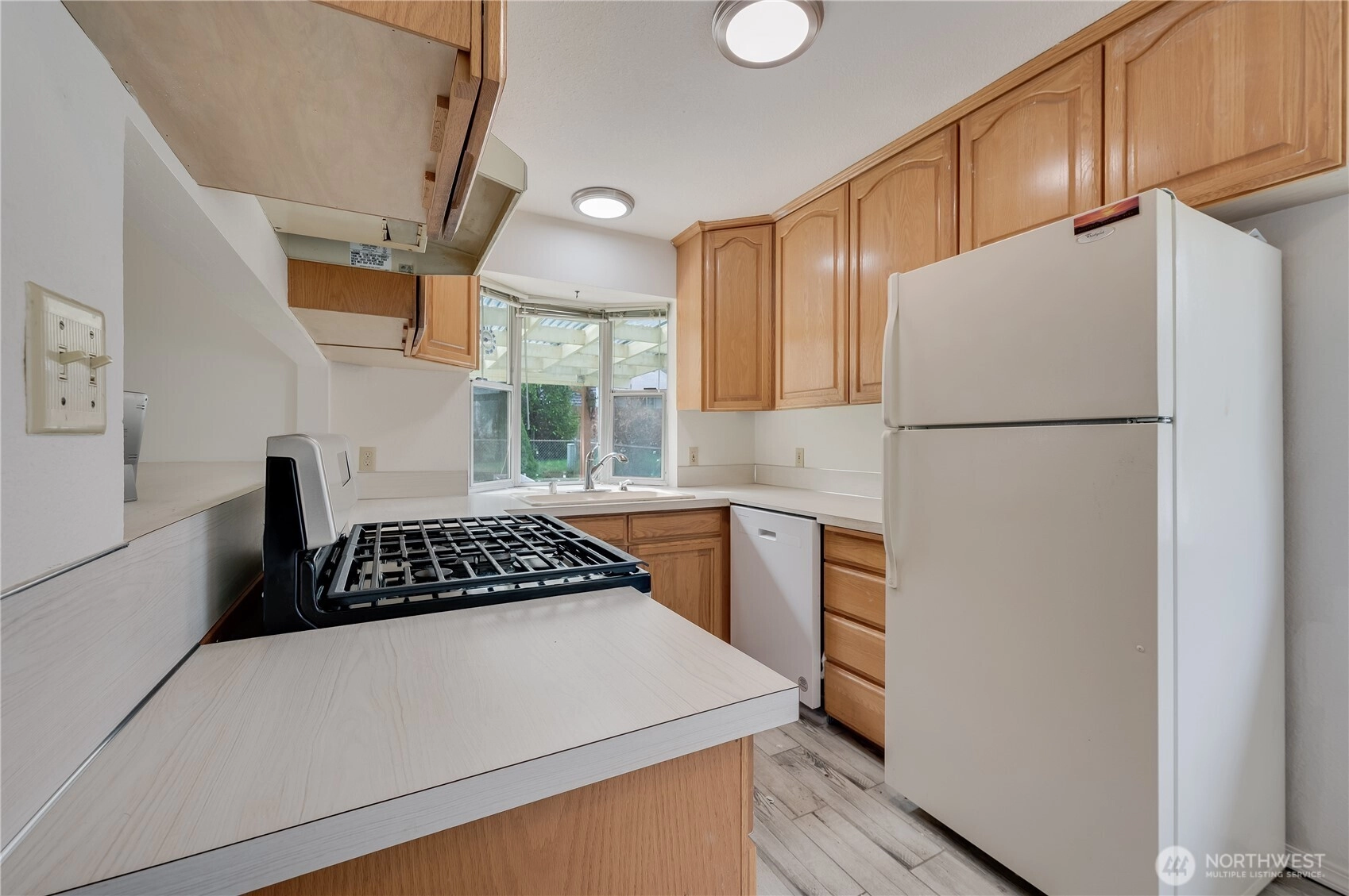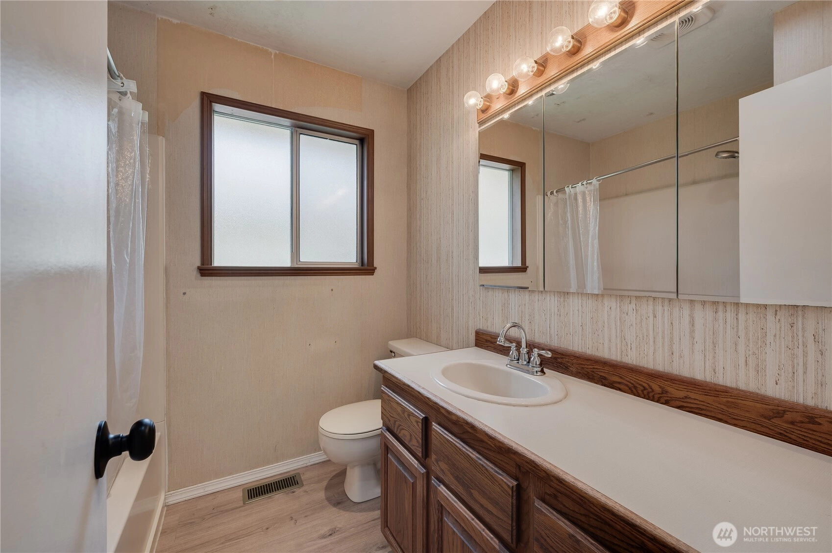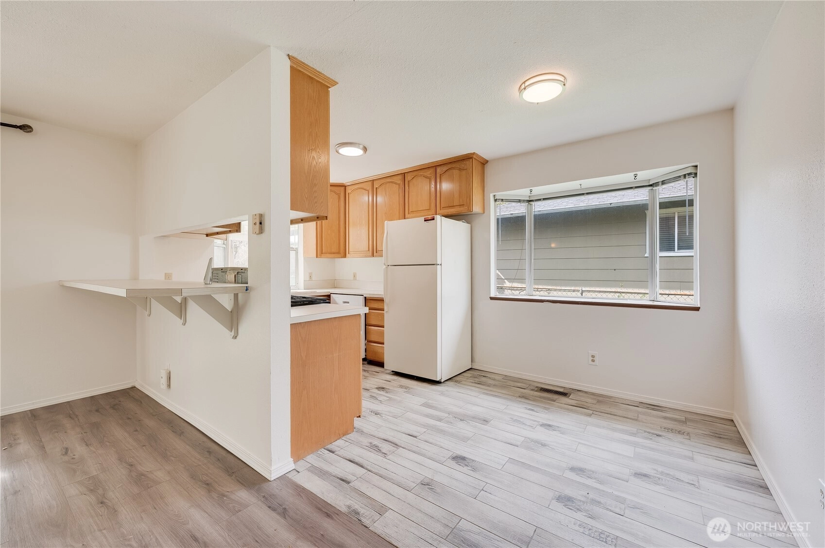 Get away from the hustle to this charming 3 bed 1.75 bath Rambler on a huge fenced lot! Updated! – Fresh interior paint - Laminate floors throughout - Spacious living room w/ cozy gas fireplace. Bonus room, perfect for family room, home office, utility space, or even a possible 4th bedroom! - Outside – the huge covered patio creates the ideal space for relaxing, entertaining, or outdoor dining. Detached 960sqft garage gives you lots of options; park 3-4 cars, be creative in the large workshop or Hey, w/ a 3/4 bath already there, convert a portion into an ADU, guest suite, home office, AirBnB, rental income or even an art/music studio - Garden space w/ fruit trees, blueberries and blackberries is ready for your magic to happen!