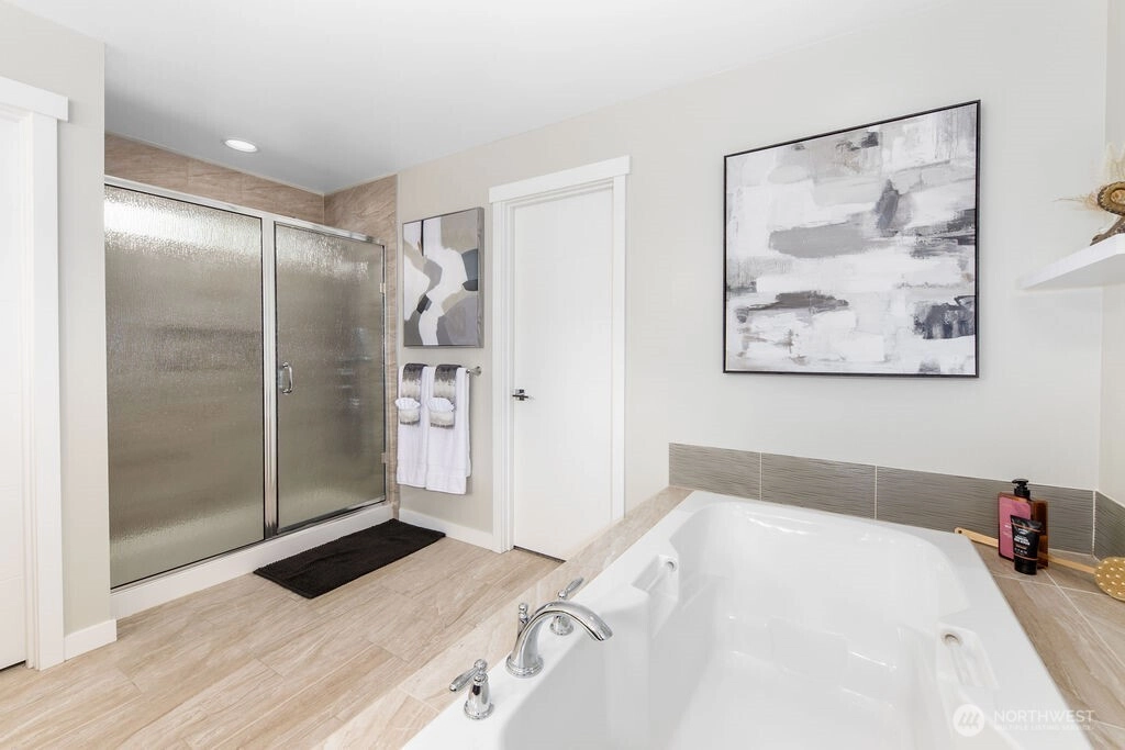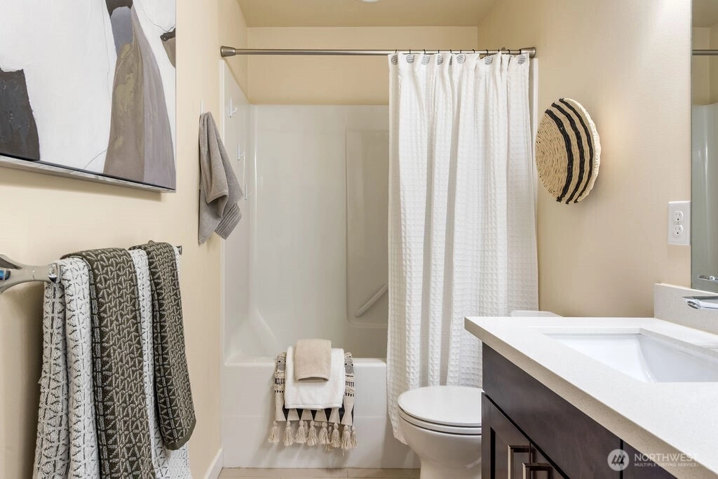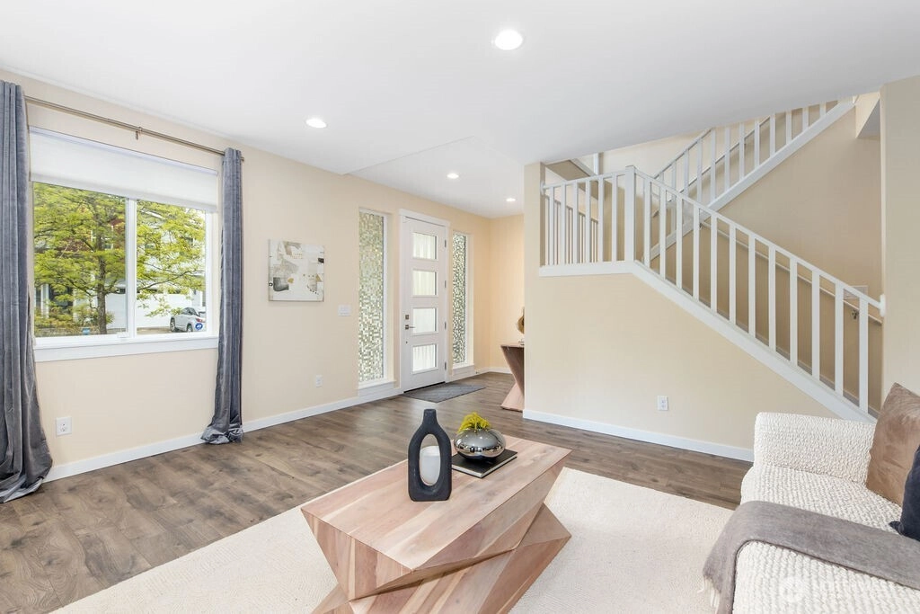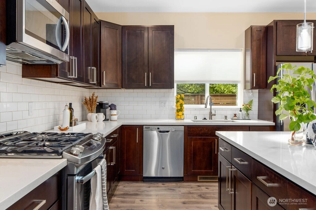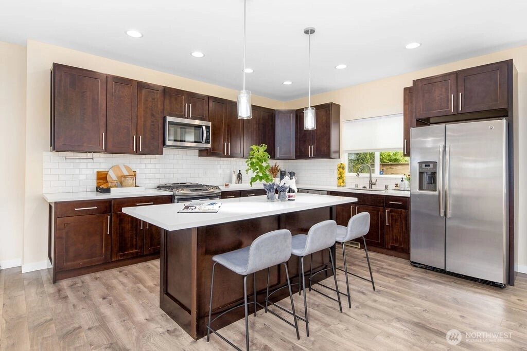 Personal tragedy to the buyer is why we're back on the market. Don't miss out on this 4-bed, 2.5-bath, 2234 sq ft home is a perfect blend of comfort, style, & convenience. This home offers a thoughtful layout & inviting spaces designed for everyday living & entertaining. A capacious, naturally lit, living area w/large windows, 9 ft ceilings, gas fireplace, & vinyl flooring throughout. Kitchen feat quartz countertops, subway tile backsplash, SS appliances, & modern finishings w/ a spacious dining area. Primary suite offers private en suite spa-like bath w/double sinks, soaking tub, & generous closet space, newer A/C unit & beautiful backyard , min. from top-rated schools, parks, The Landing, & easy access to I-5, I-405 & Hwy 167.