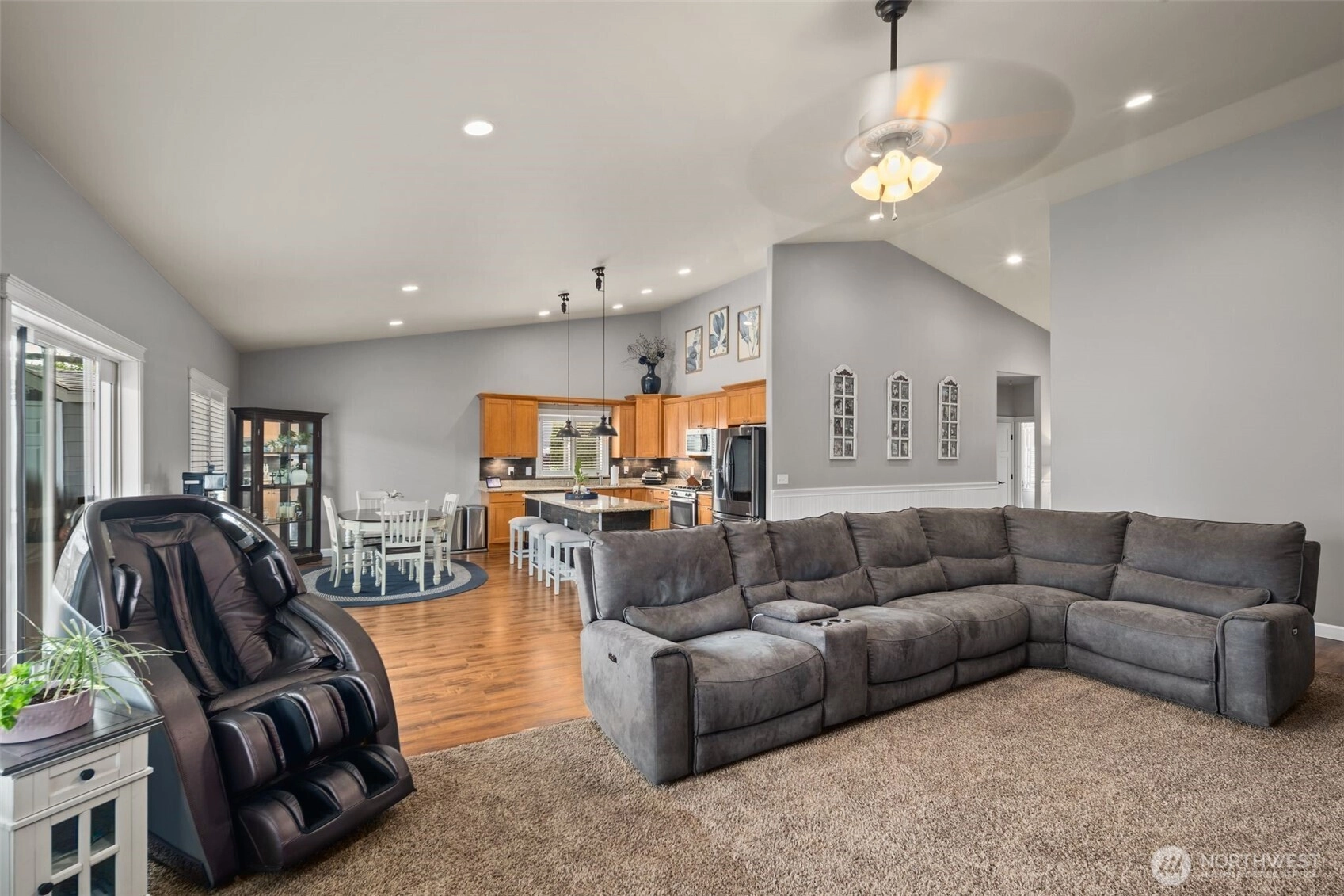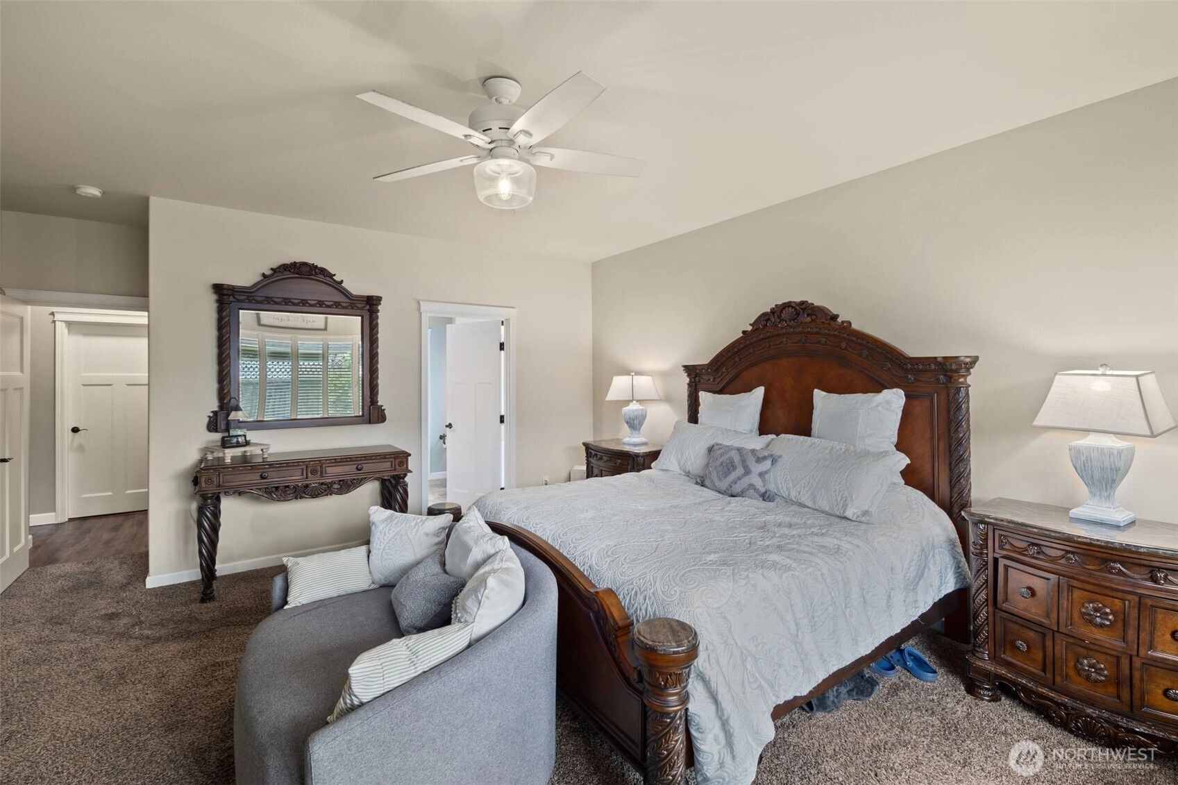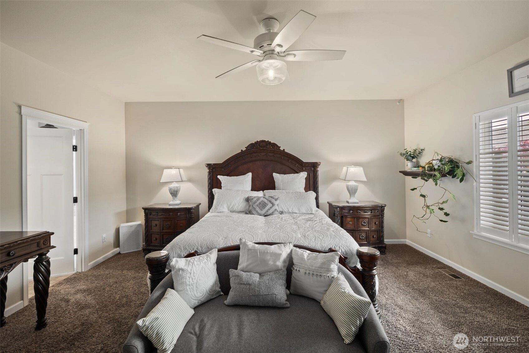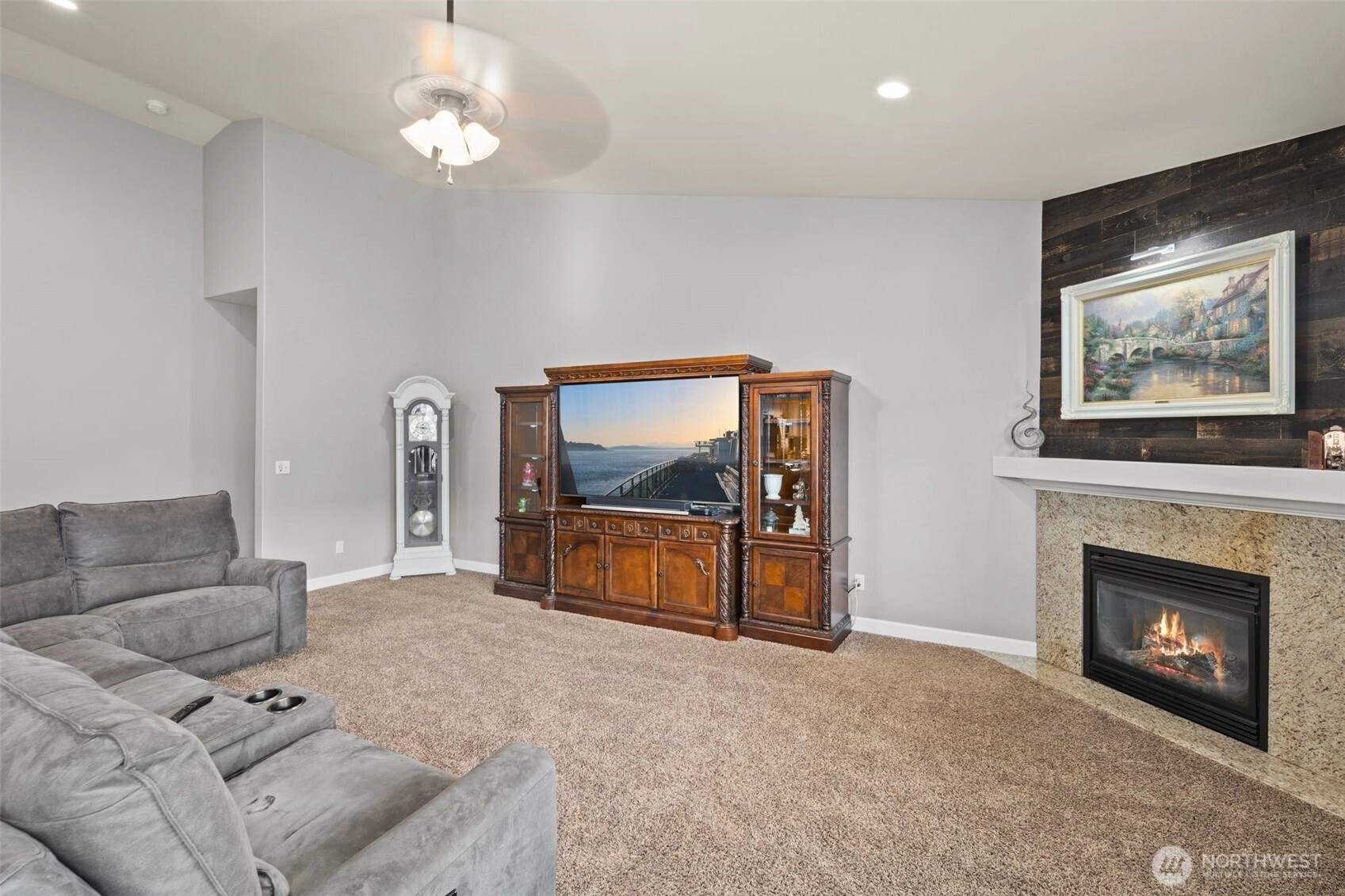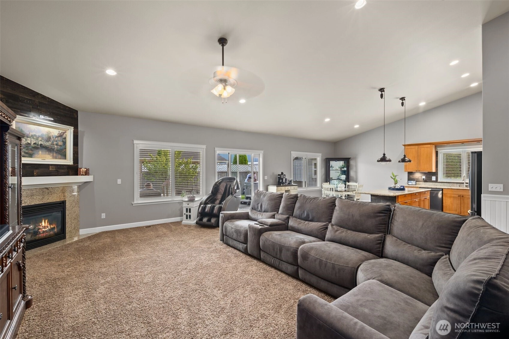 Welcome to this beautifully maintained home in the heart of the Skagit Valley! Featuring an inviting open-concept layout perfect for everyday living. The spacious great room flows seamlessly into a well-appointed kitchen with warm wood cabinetry, stainless steel appliances, and a center island with bar seating. Vaulted ceilings and abundant natural light add to the airy feel. Relax in the elegant primary suite complete with a cozy fireplace, plantation shutters throughout, and spa-like comfort. The zero maintenance turf yard blends zen and comfort, topped off with mountain views. Located in a quiet, desirable neighborhood with easy access to local amenities, and pleasant walking trails—this is the one you’ve been waiting for! Welcome Home!