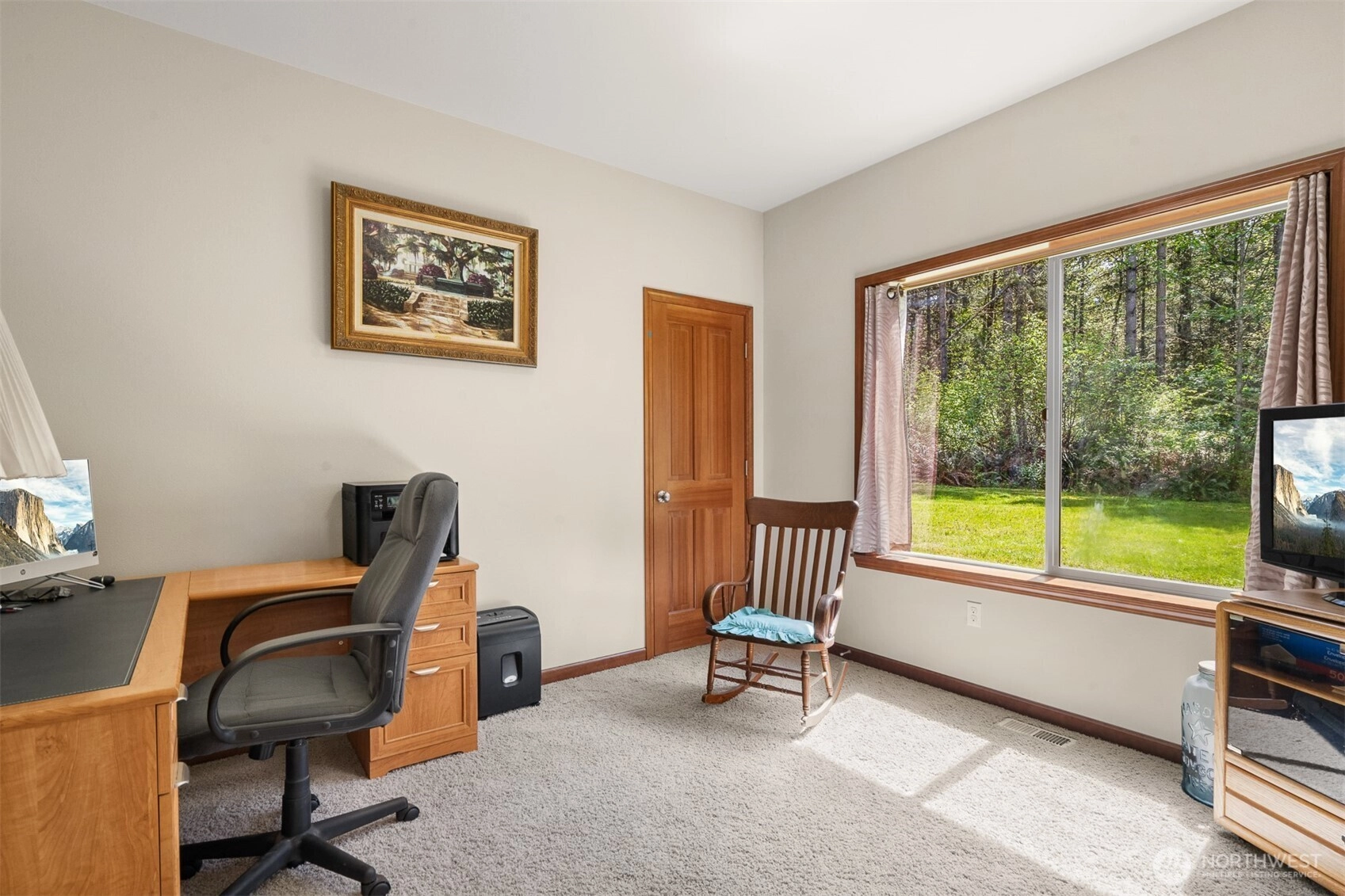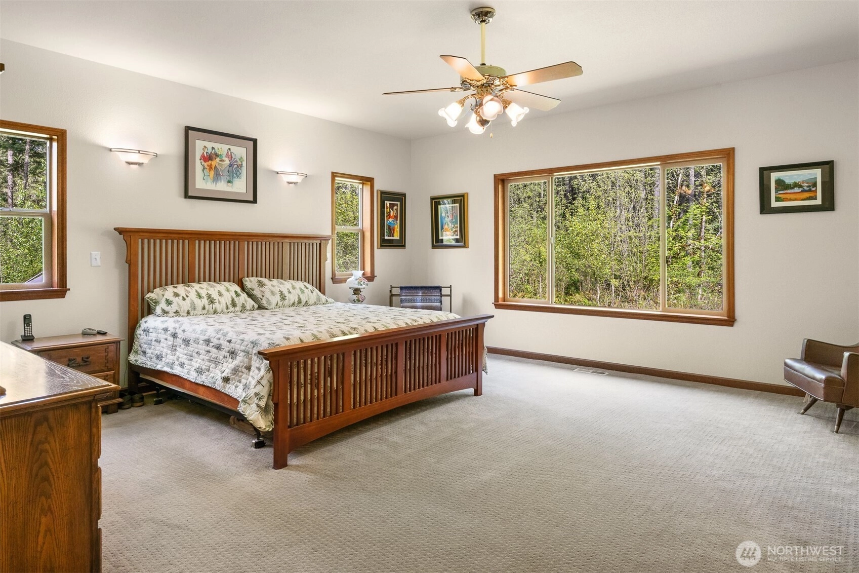 Wonderful opportunity! Sitting on 20 acres, nestled amongst the tall evergreens in the McKenna Forest Reserve, a community w/multiple gated entrances, riding trails & private lakes. Tremendous thought put into every detail by the original owners selling this grand, custom-built rambler. Spread out in spacious 2,550 sq ft home: real hardwood flooring through open concept living space w/soaring vaulted ceilings, wood fireplace. Well-equipped Kitchen w/gas range & walk-in pantry. Solid wood doors & trim, heat pump w/AC. Impressive Primary Suite w/walk-in closet, & luxurious bthrm. Oversized 3+car garage, RV hookup & EV charger, plus area to build shop (conduit installed). PRICED BELOW ASSESSED VALUE!