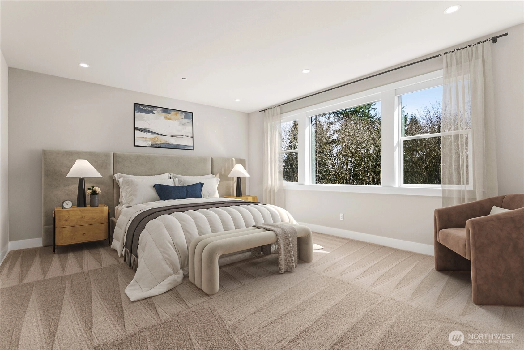 Legacy Farms Estates is a boutique community featuring 7 luxury homes ideally situated north of Kirkland in Woodinville Wine Country. This stunning residence boasts a west-facing front door fronting & backing to greenbelts for ultimate privacy! The main floor boasts a huge great room with a large dining room and den. The gourmet kitchen is designed to impress w/ plenty of space to entertain & tons of storage! Upstairs, you'll love the 4 bedrm design w/ a large primary suite w/ a gorgeous spa-like bathroom. In the fully finished basement, you'll enjoy the 5th bedrm, bath, and rec room. Discover the perfect blend of elegance, comfort, and prime location near the Eastrail & Sammamish River Trail systems. MOVE IN READY!