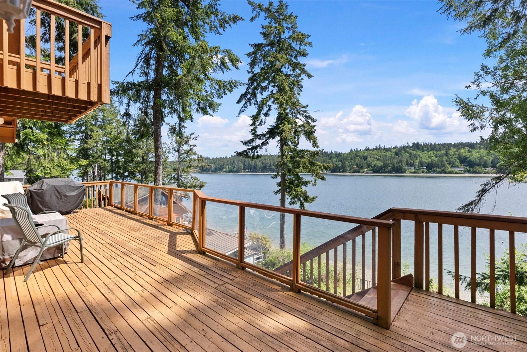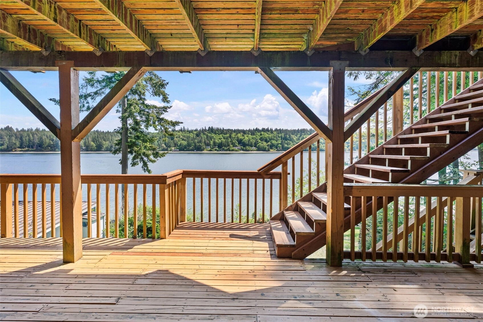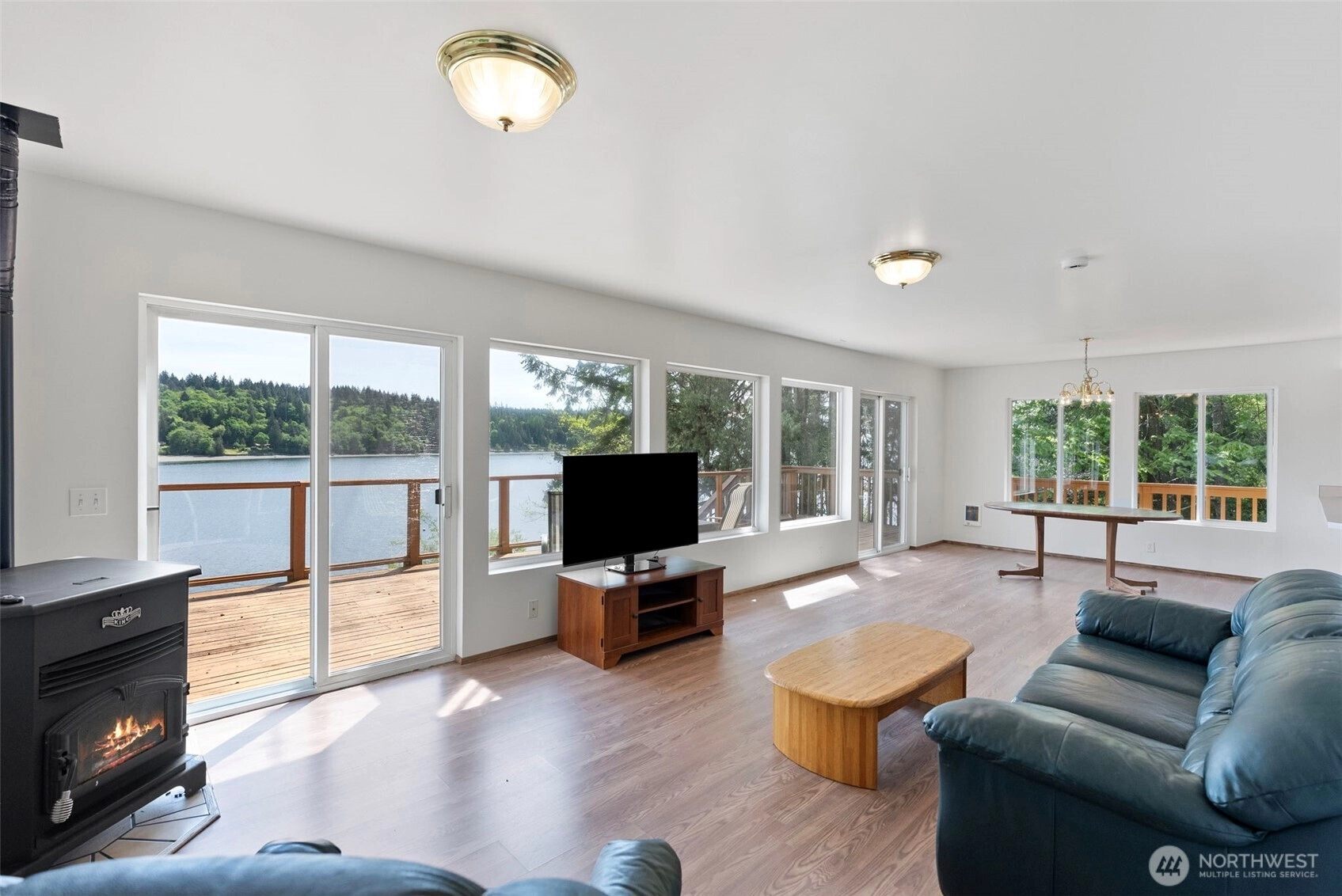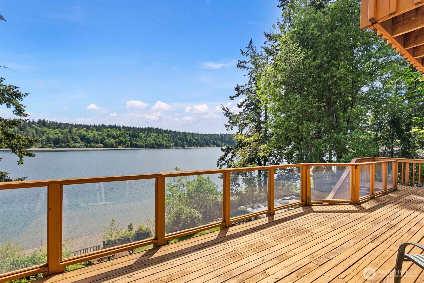 Soak in sweeping 180-degree waterfront views from every level of this extraordinary medium-bank retreat. Set on a coveted stretch of shoreline, this home offers direct access to your own private beach and bulkhead. Inside, the open-concept layout is designed to showcase the view from nearly every angle. A dramatic wall of windows opens onto a full-length entertainment deck, perfect for al fresco dining, sunset gatherings, or quiet mornings by the water. Generously sized rooms, versatile living areas, and loft provide the perfect backdrop for hosting guests or simply unwinding. Whether you're entertaining or escaping, this is a dream retreat for the ultimate waterfront lifestyle. New septic, new flooring, and paint throughout.