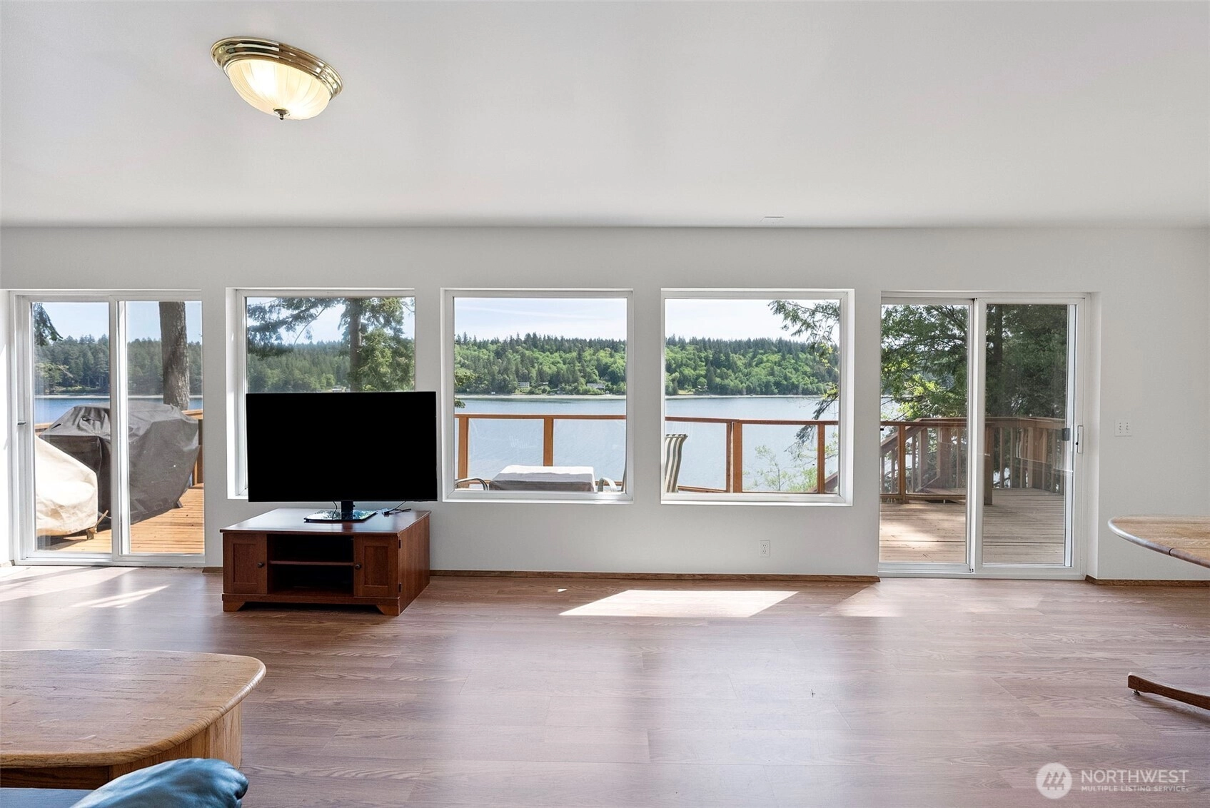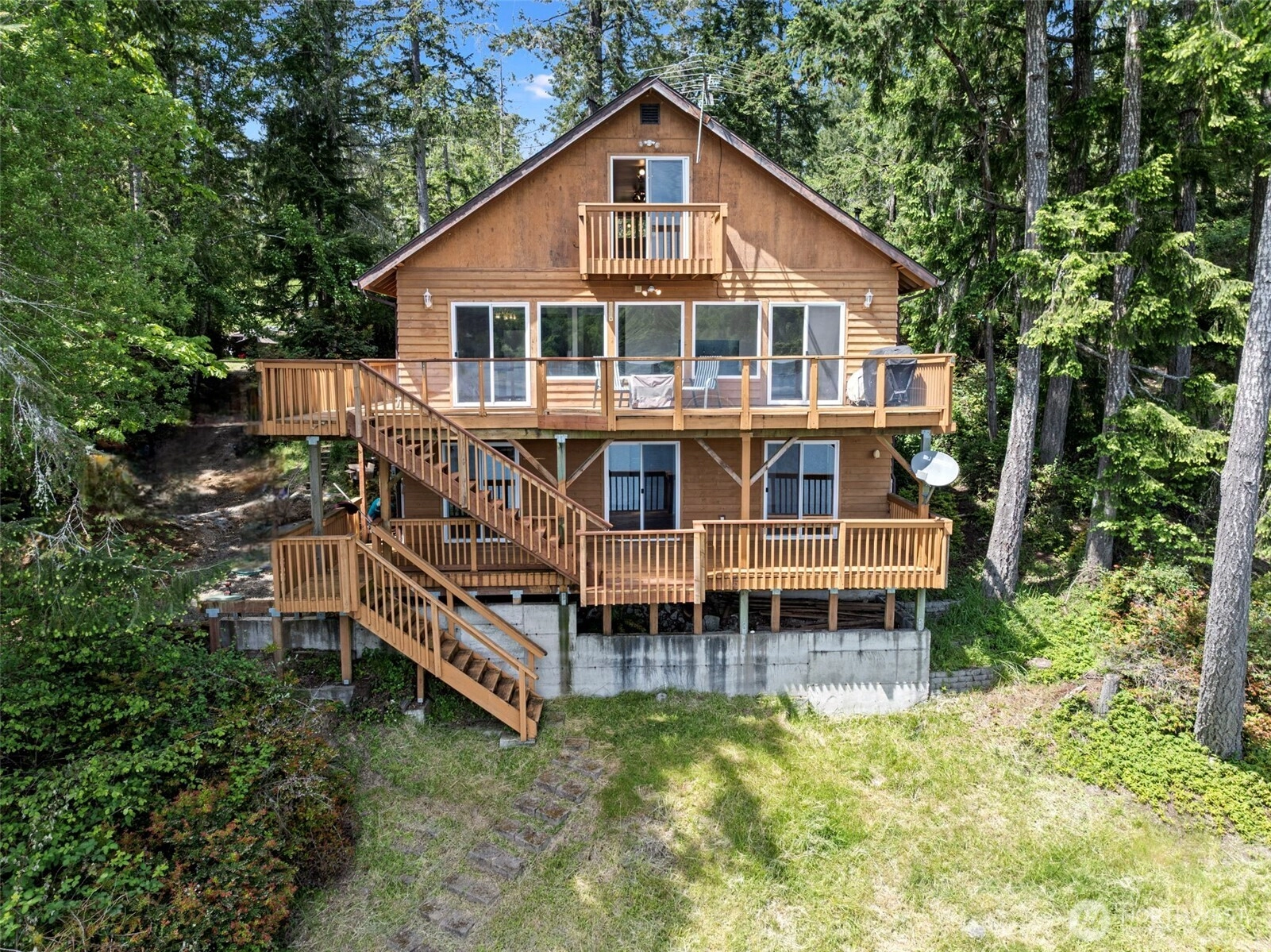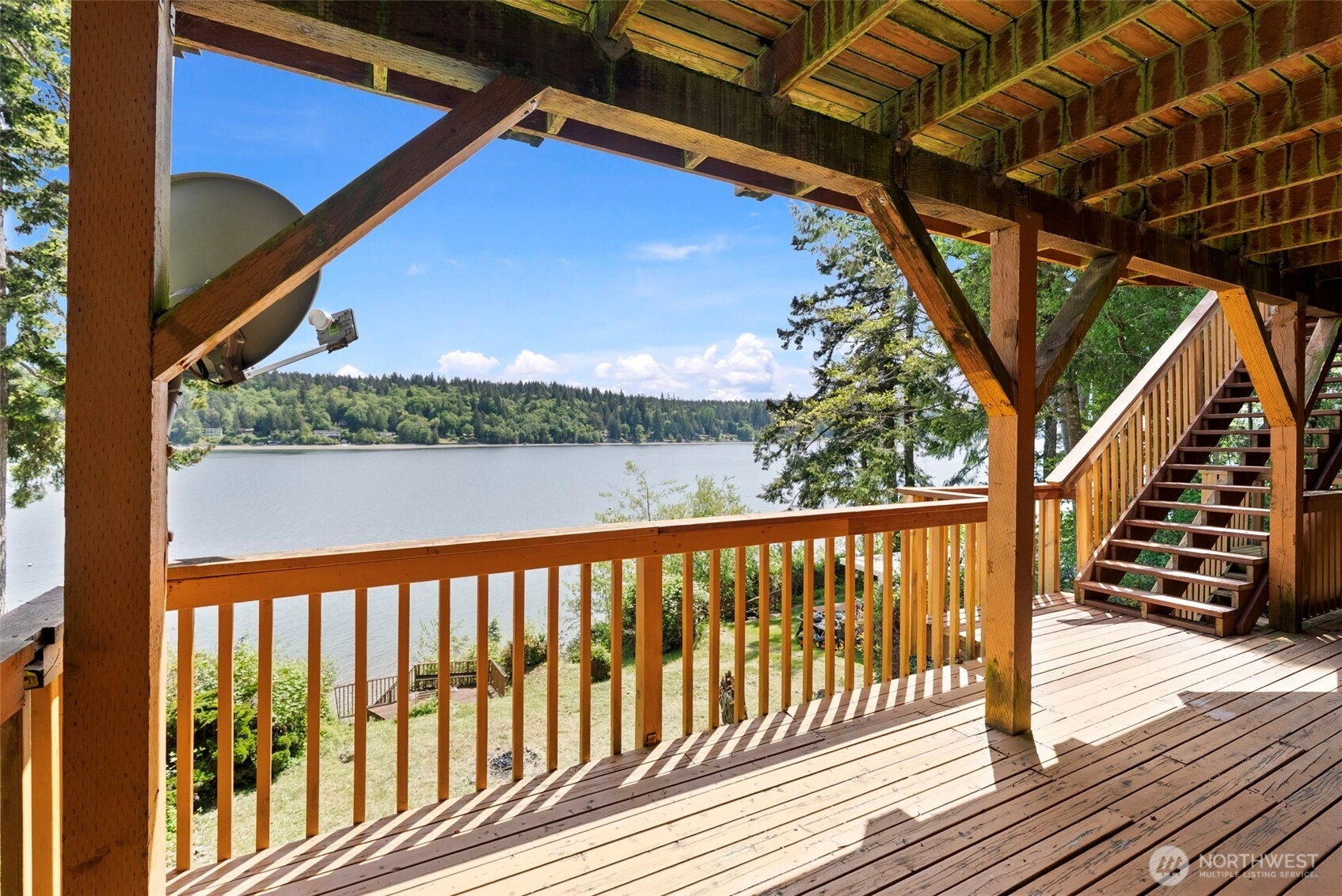 Soak in sweeping 180-degree waterfront views from every level of this extraordinary medium-bank retreat. Set on a coveted stretch of shoreline, this home offers direct access to your own private beach and bulkhead. Inside, the open-concept layout is designed to showcase the view from nearly every angle. A dramatic wall of windows opens onto a full-length entertainment deck, perfect for al fresco dining, sunset gatherings, or quiet mornings by the water. Generously sized rooms, versatile living areas, and loft provide the perfect backdrop for hosting guests or simply unwinding. Whether you're entertaining or escaping, this is a dream retreat for the ultimate waterfront lifestyle. New septic, new flooring, and paint throughout.
