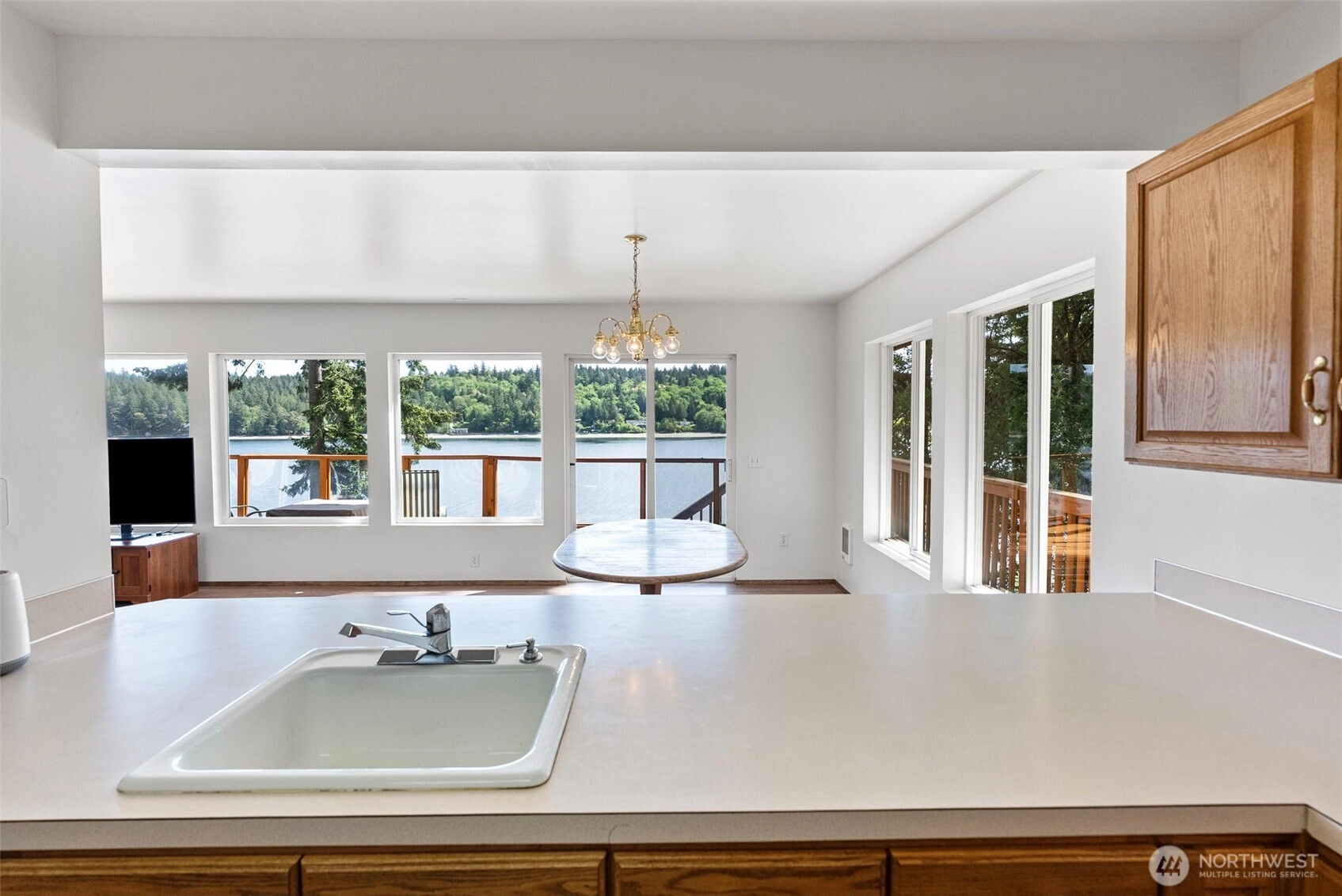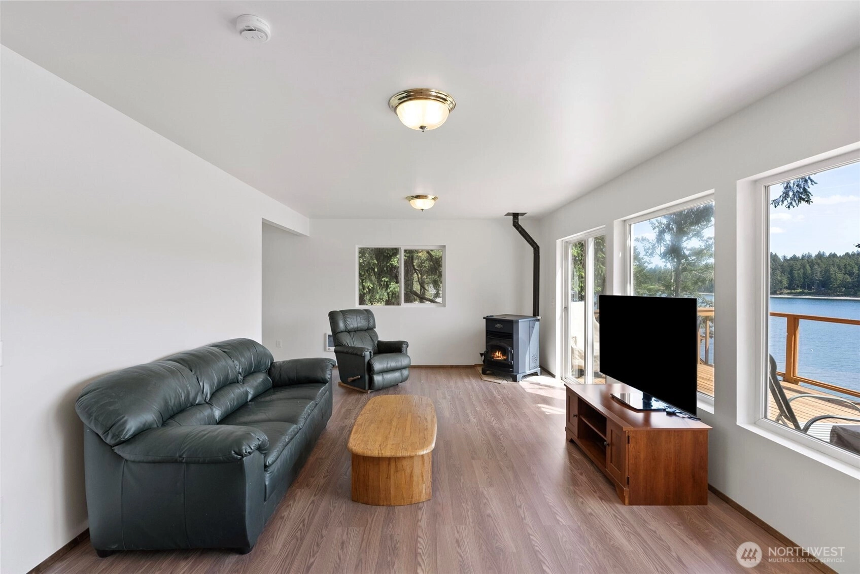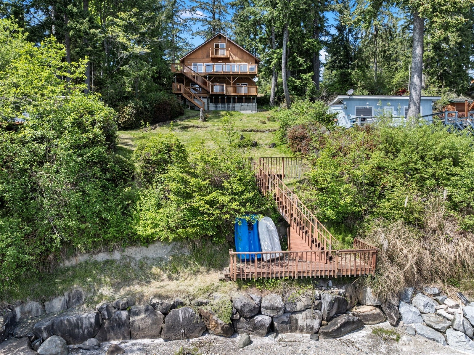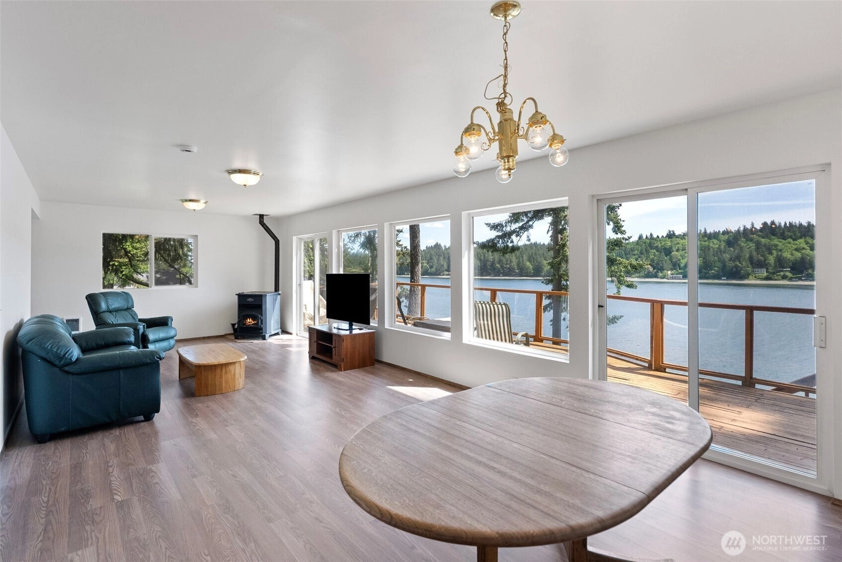 Soak in sweeping 180-degree waterfront views from every level of this extraordinary medium-bank retreat. Set on a coveted stretch of shoreline, this home offers direct access to your own private beach and bulkhead. Inside, the open-concept layout is designed to showcase the view from nearly every angle. A dramatic wall of windows opens onto a full-length entertainment deck, perfect for al fresco dining, sunset gatherings, or quiet mornings by the water. Generously sized rooms, versatile living areas, and loft provide the perfect backdrop for hosting guests or simply unwinding. Whether you're entertaining or escaping, this is a dream retreat for the ultimate waterfront lifestyle. New septic, new flooring, and paint throughout.