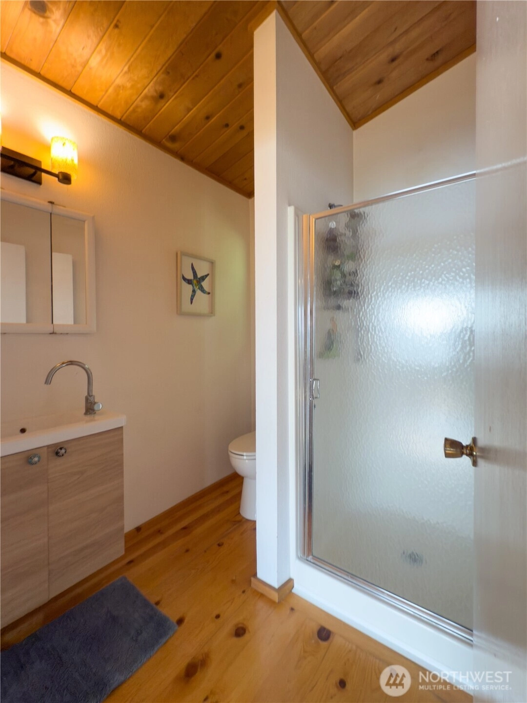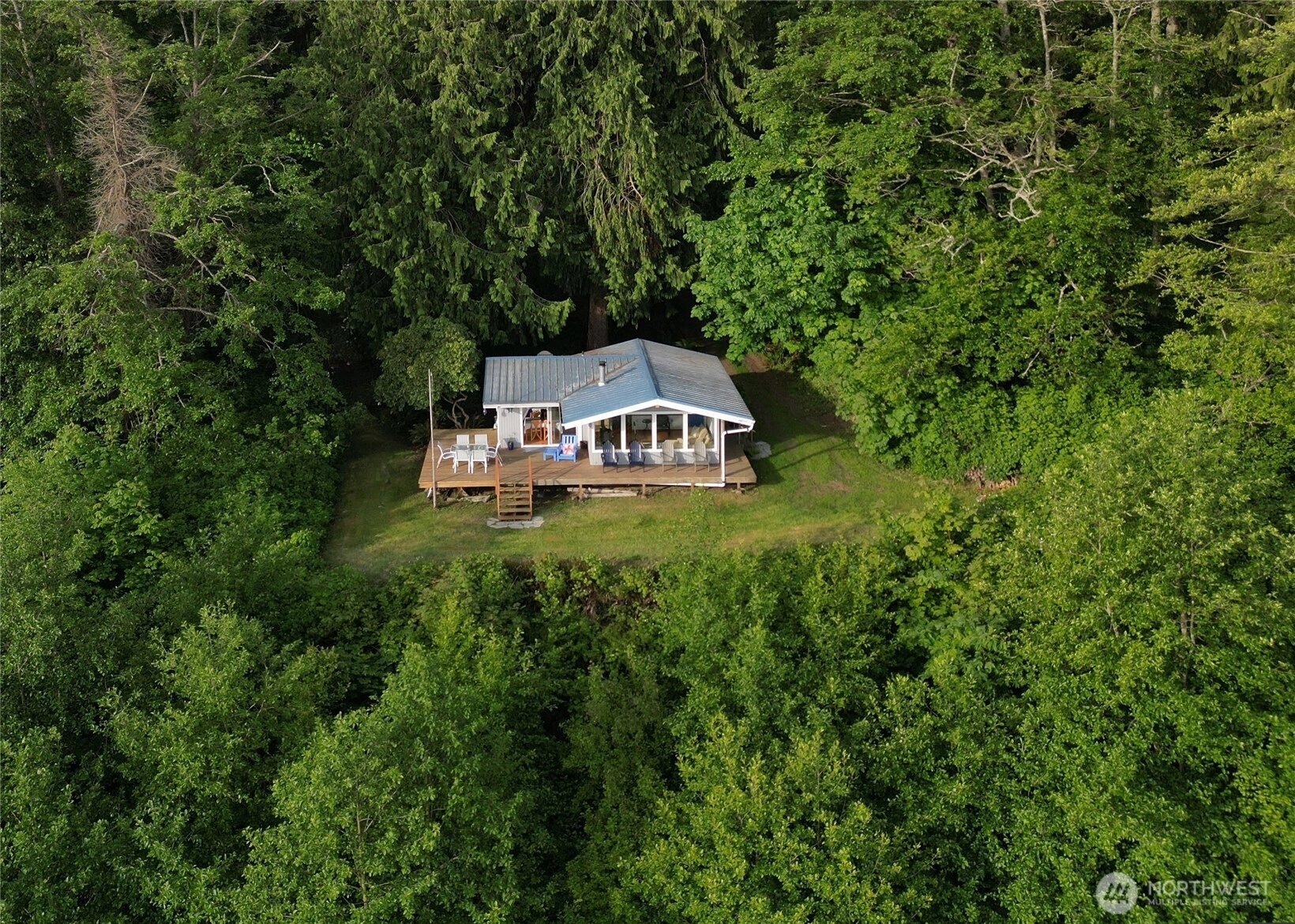 New price! Private island bluff cabin with views of Puget Sound and Cascade Mountain ranges. Home is partially furnished, new paint, and ready to enjoy. Cabin is full of charm with ocean views from kitchen, dining room, living room and deck. Metal roof. Basement has a small workshop, partially finished room, and plumbed for 2nd toilet. Property is woodsy, quiet and secluded. Island boasts a 9-hole USGA golf course, trails, returning eagles and whales, pirate ship playground, free summer concert series, 48 passenger private ferry, robust boating ride share program, community garden and much more! Enjoy watching the whales from deck. Hat Island is a great place for crabbing, shrimping, fishing, clam digging, beachcombing. A true community.