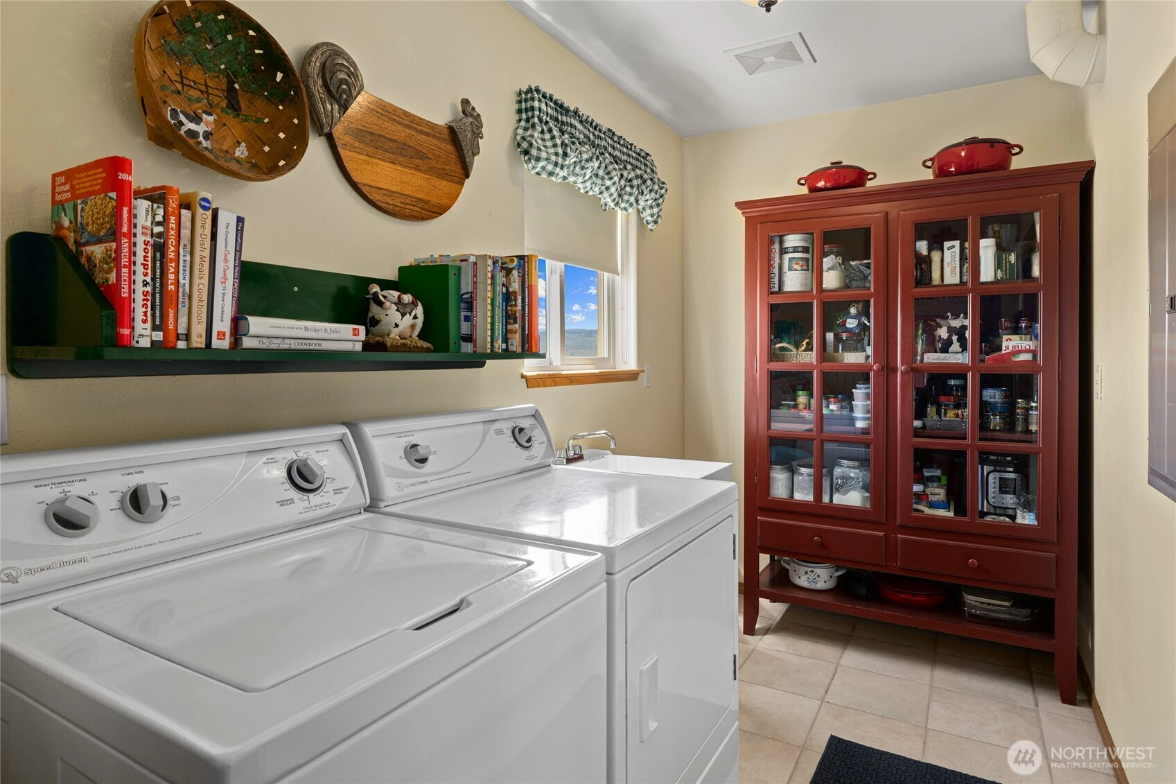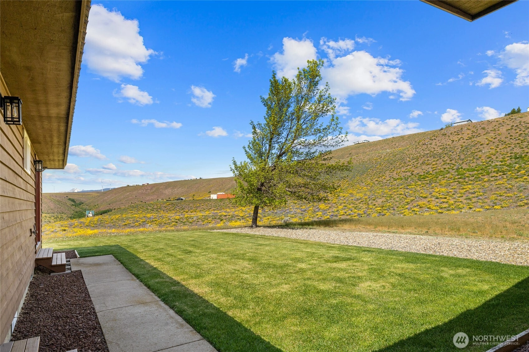 A truly exceptional property perched on a 50-acre private plateau,offering sweeping views of the valley and surrounding mountains.Inside, you'll find warm oak hardwood and tile flooring,an efficient kitchen with hard-surface countertops and custom tile backsplash,dining room that opens to the outdoors through French doors.The vaulted living area features windows that frame the landscape.The primary suite boasts an updated bathroom with a walk-in tiled shower and dual vanities with hard-surface countertops. A finished 24' x 24' two-car garage is heated.Outside,the lawns are maintained effortlessly with a sprinkler system.Relax under the covered porches and take in the ever-changing vistas that stretch as far as the eye can see.