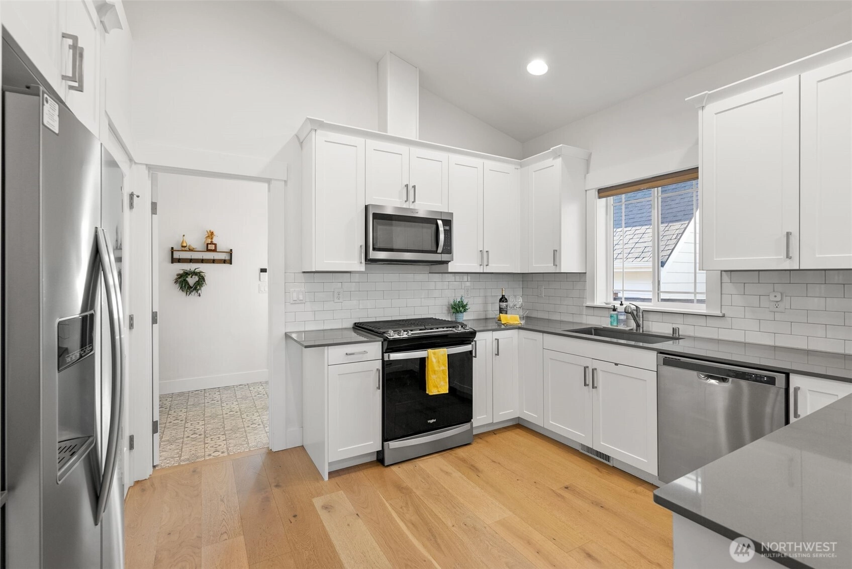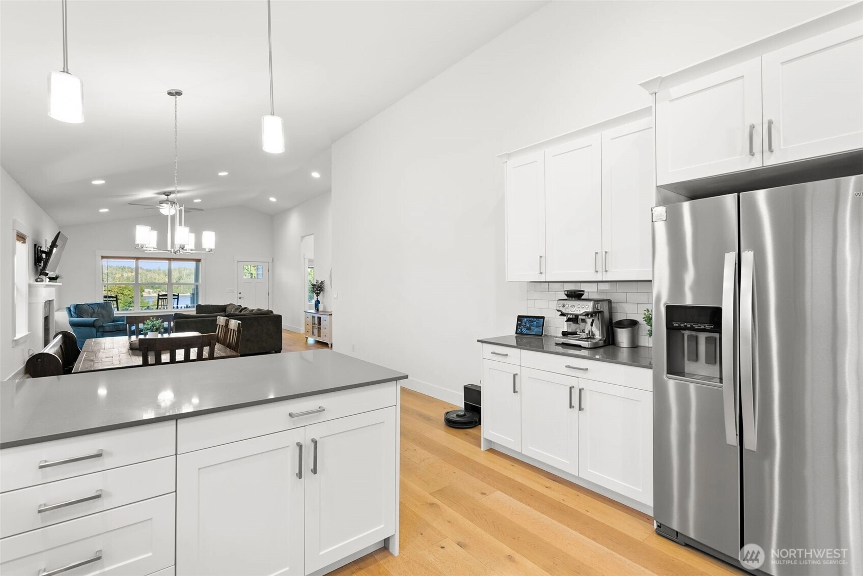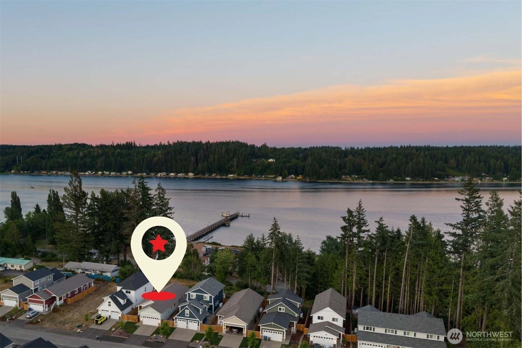 New price! Nearly new one-level home in welcoming Allyn offers easy living with so much added value. Wake with morning coffee and wind down with a quiet evening on the covered porch... overlooking peaceful water views and maybe a glimpse of orcas. Bright, open floor plan features vaulted ceilings, easy-care floors, and cozy propane fireplace. Crisp kitchen is well-appointed with quartz counters, white cabinetry, and stainless appliances. Layout has two guest rooms -- one with water view -- split from the primary. Fully fenced yard and attached two-car garage offer space and flexibility. Just minutes from Bremerton, you'll be a block from the waterfront, parks, boat launch, and dining. PGA Golf and endless shoreline exploring await!