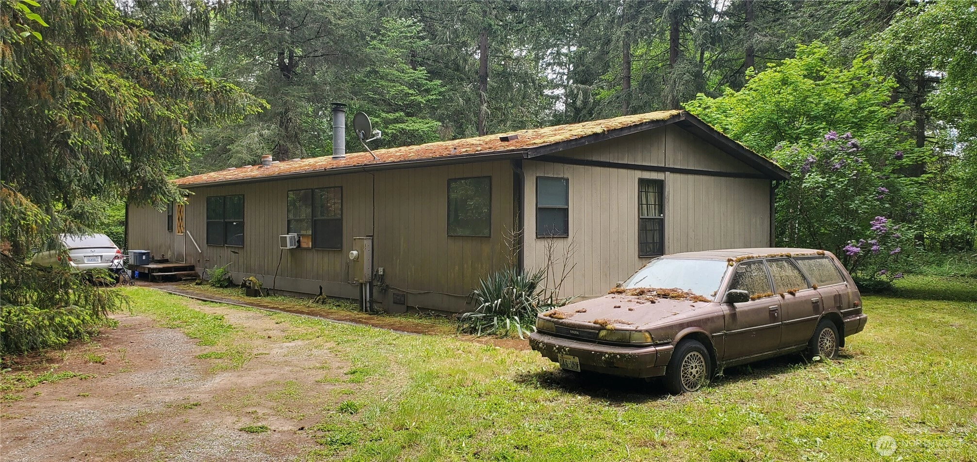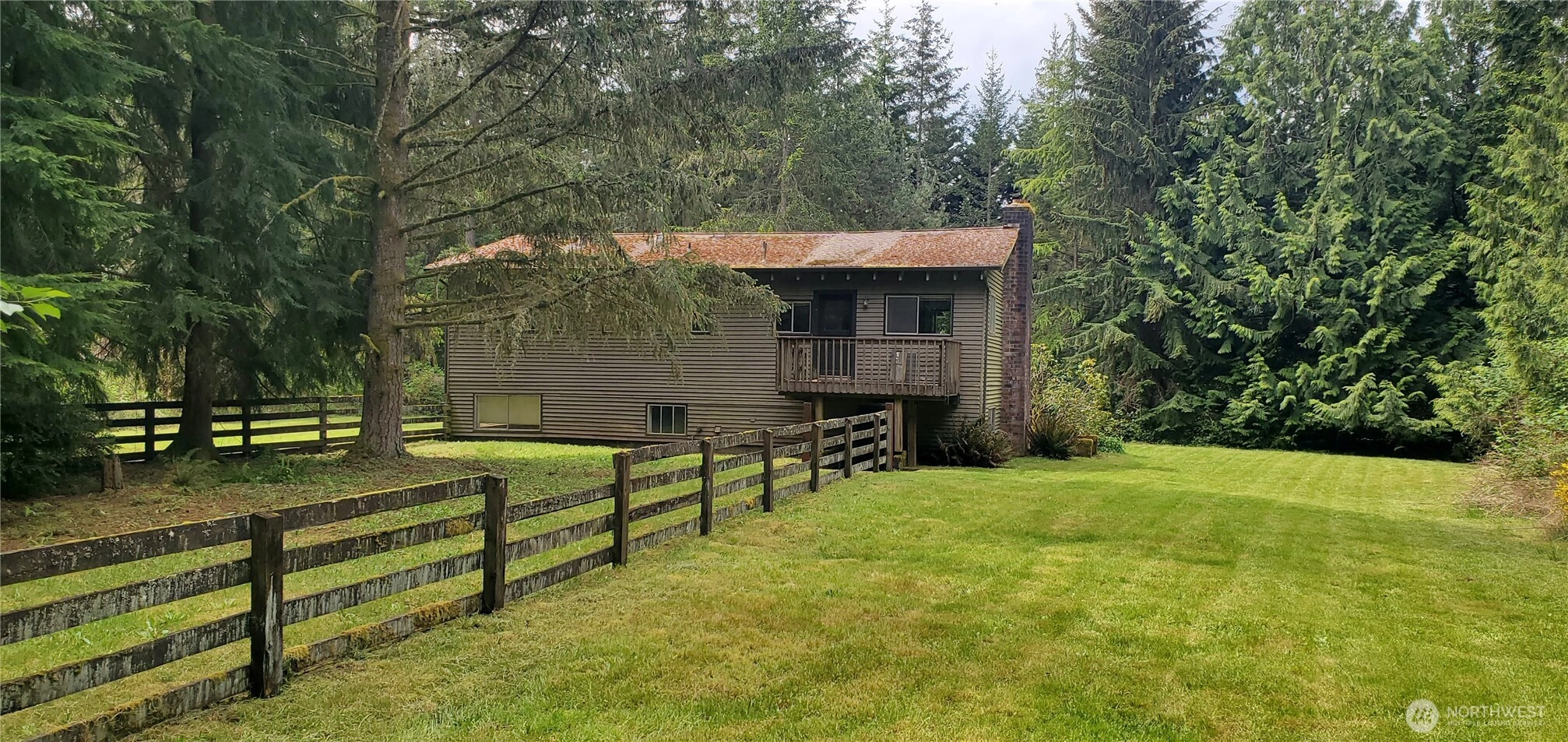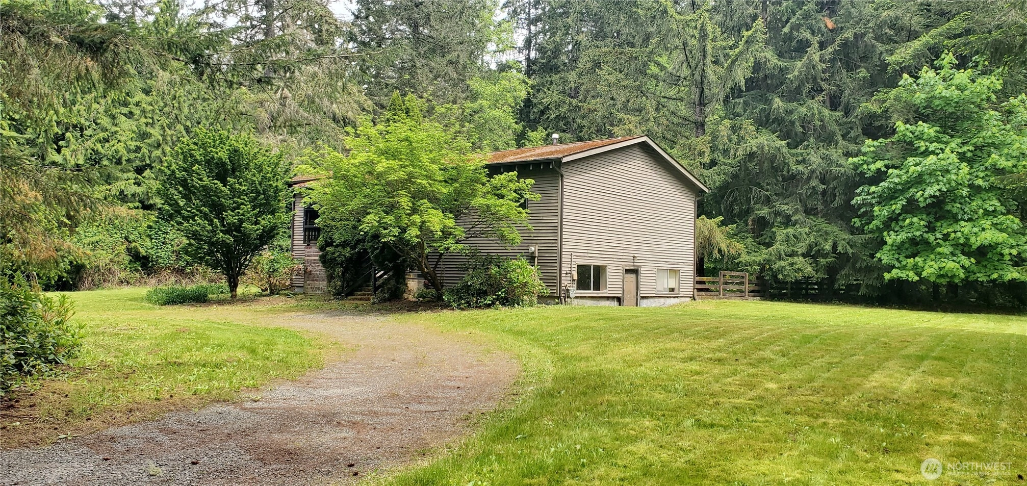 Gated Entrance to 10 acres of dry level land with massive Douglas Fir Trees zoned RA-10SO. The property has a main house that is one story with a daylight basement; and a second smaller rental house. Both houses require updating and are Fixers; but each have good potential once remodeled. Both houses are located in private settings with nice open yards and lawns. Each house has separate individual wells/septic and connected to natural gas. An additional bonus to the property is that there is a large "Dome Shaped" covered storage area. Property value is in the Land, Timber, 2 wells and rental income. Seller intends to sell the property "As Is". Property to be sold with the current month-to-month renters in the 2nd smaller rental house.