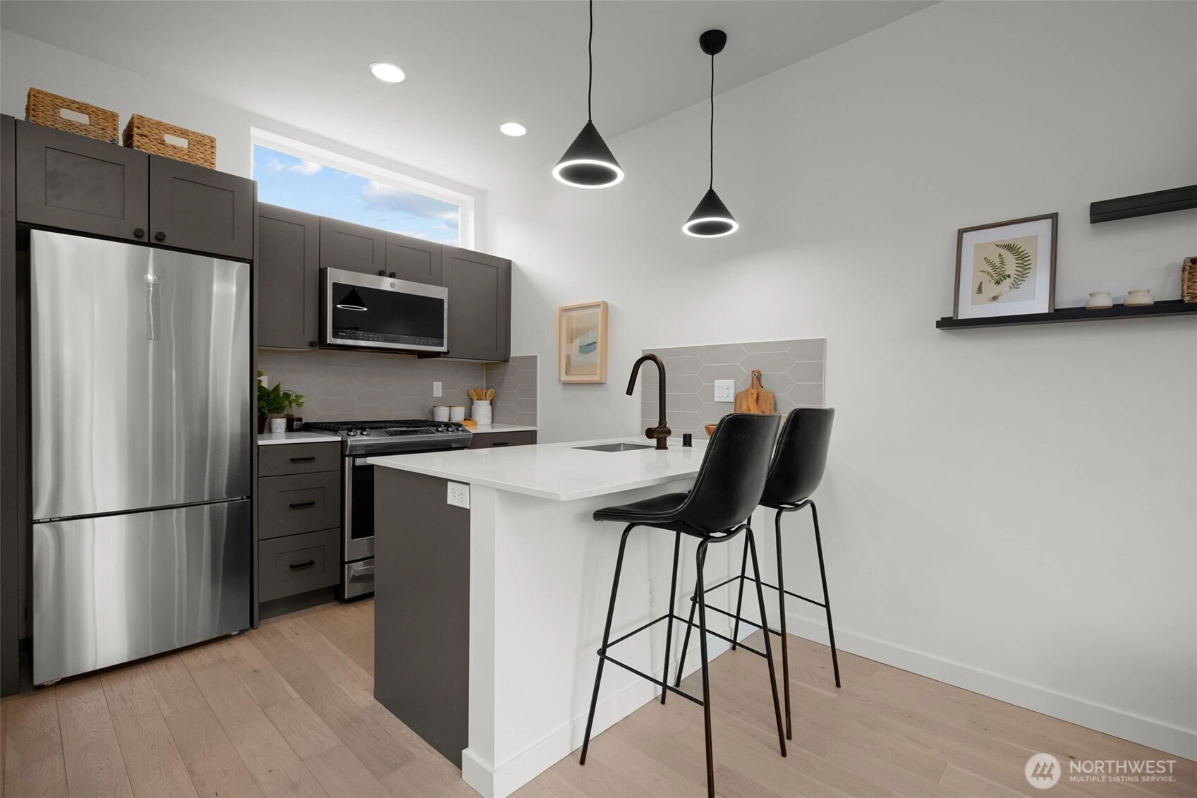 Welcome to this stunning 2020-built townhome that feels practically brand new. Thoughtfully designed for modern living, it features a smart layout with a bathroom on every floor—perfect for guests and everyday convenience. Stay comfortable year-round with energy-efficient mini-split heating and cooling. The kitchen is outfitted with stainless steel appliances, ideal for home chefs and entertainers alike. Soak in natural light through large west-facing windows that bring warmth and brightness into your home. Step outside and explore everything Wallingford has to offer—just blocks from lively restaurants, charming cafes, nightlife, Green Lake, parks, and public transit. This is urban living at its best. Make this vibrant neighborhood yours!