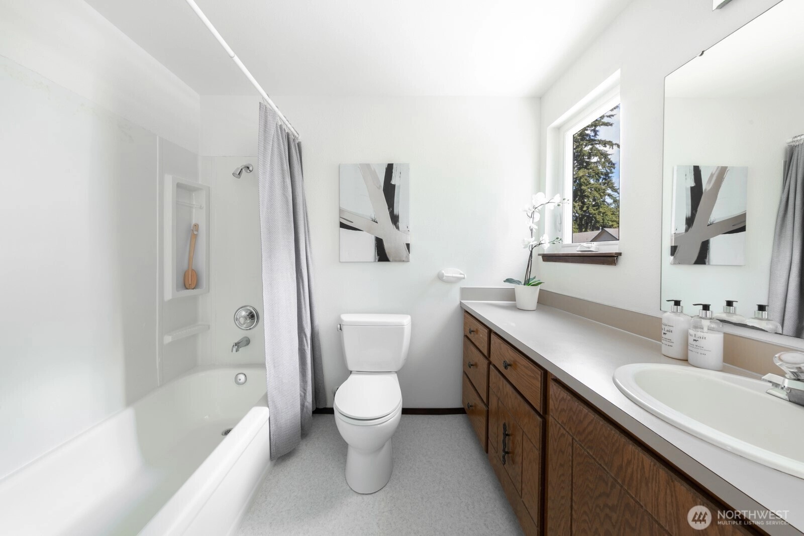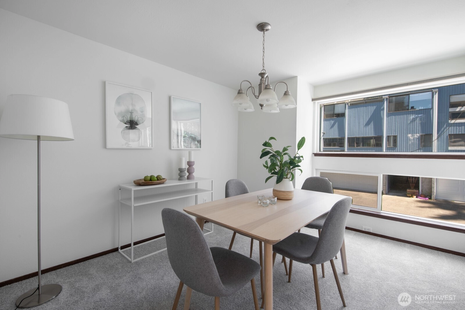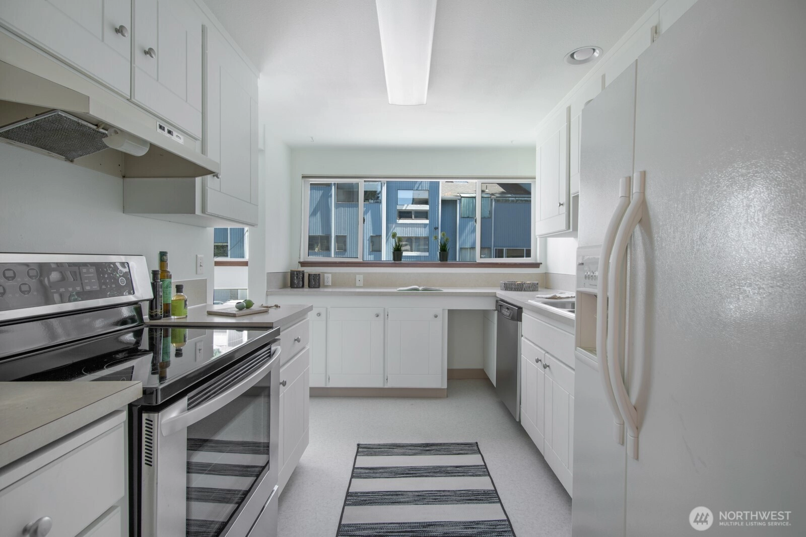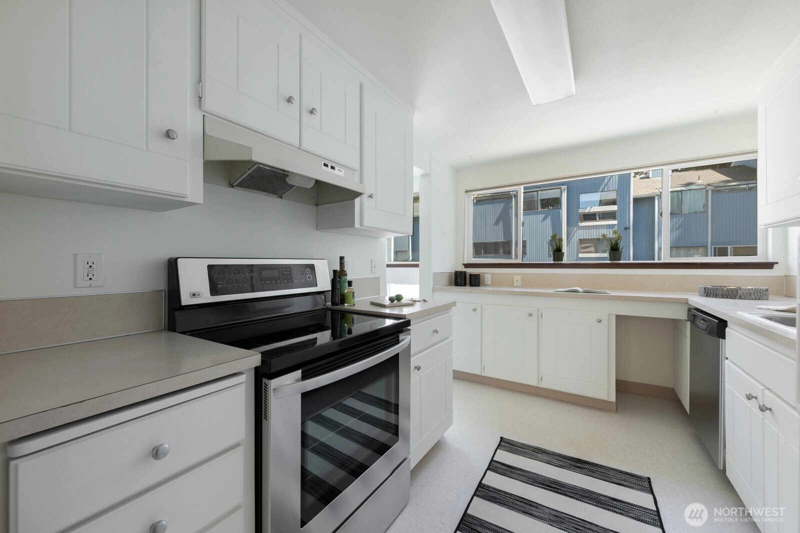 This cheerful, single-level condo offers plenty of natural light throughout. Recently updated with fresh paint and new flooring, it's move-in ready and waiting for you. Enjoy the wood-burning fireplace in the comfortable living room and space for hosting in full dining room. A condo with kitchen space to actually cook! Large primary bedroom provides a peaceful retreat, in unit W/D. You'll appreciate having your own private, oversized two-car garage with extra storage space, EV possible! Just minutes from downtown Edmonds' shopping, restaurants, ferry, trains, trails and beaches. With easy access to I-5, 99 and good local schools nearby this well-positioned condo offers convenience and comfort in a great location. Welcome home!