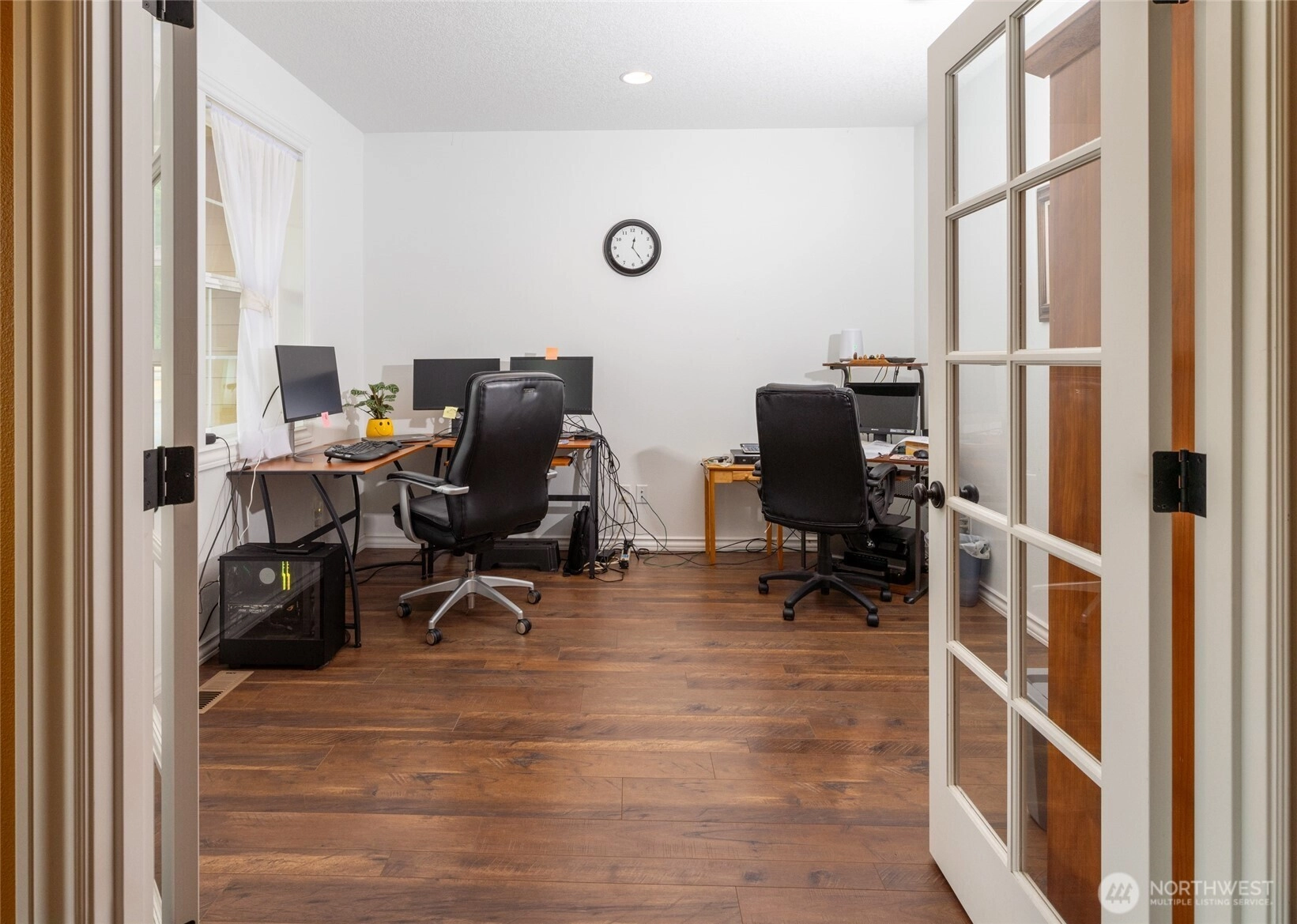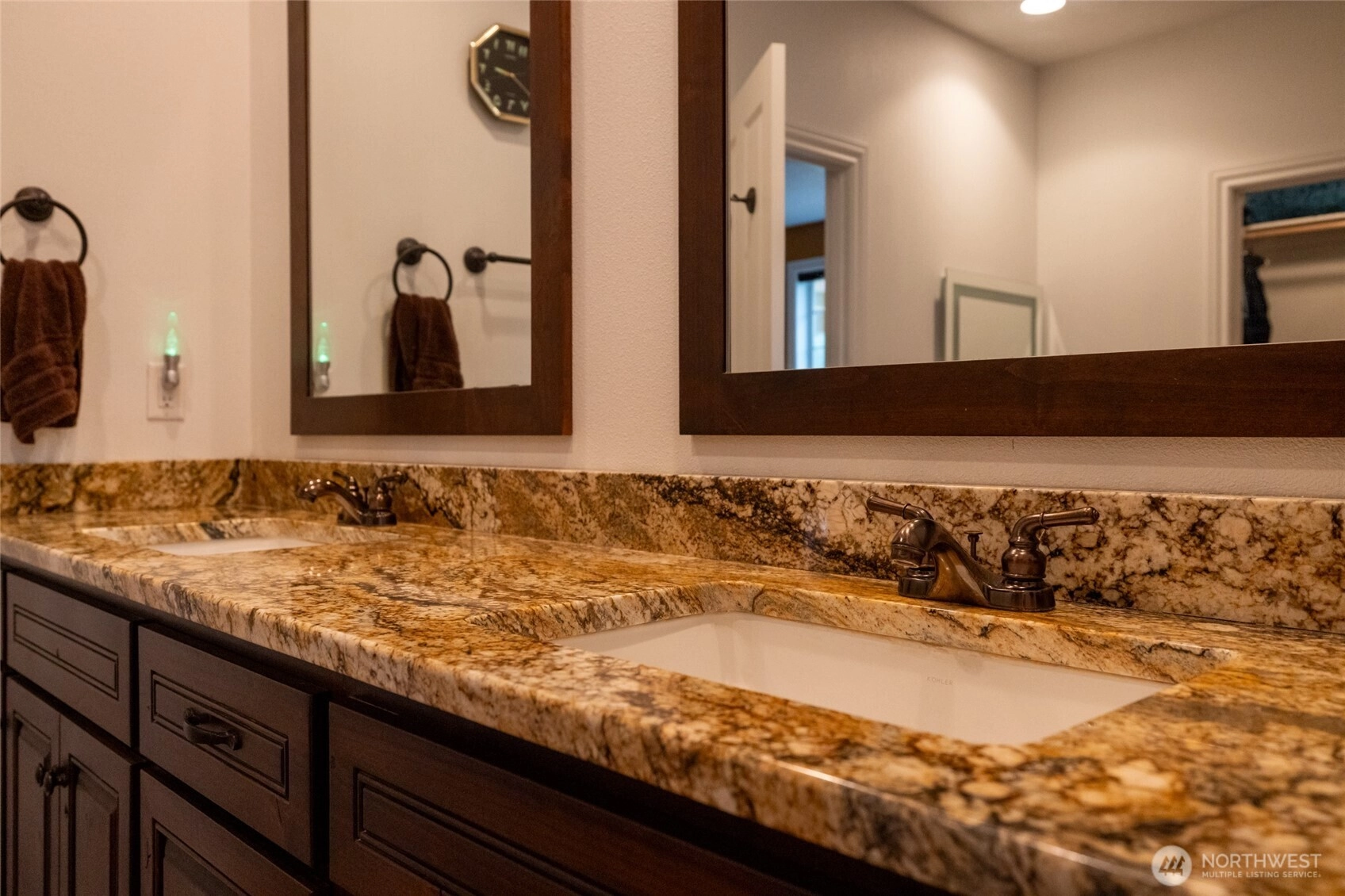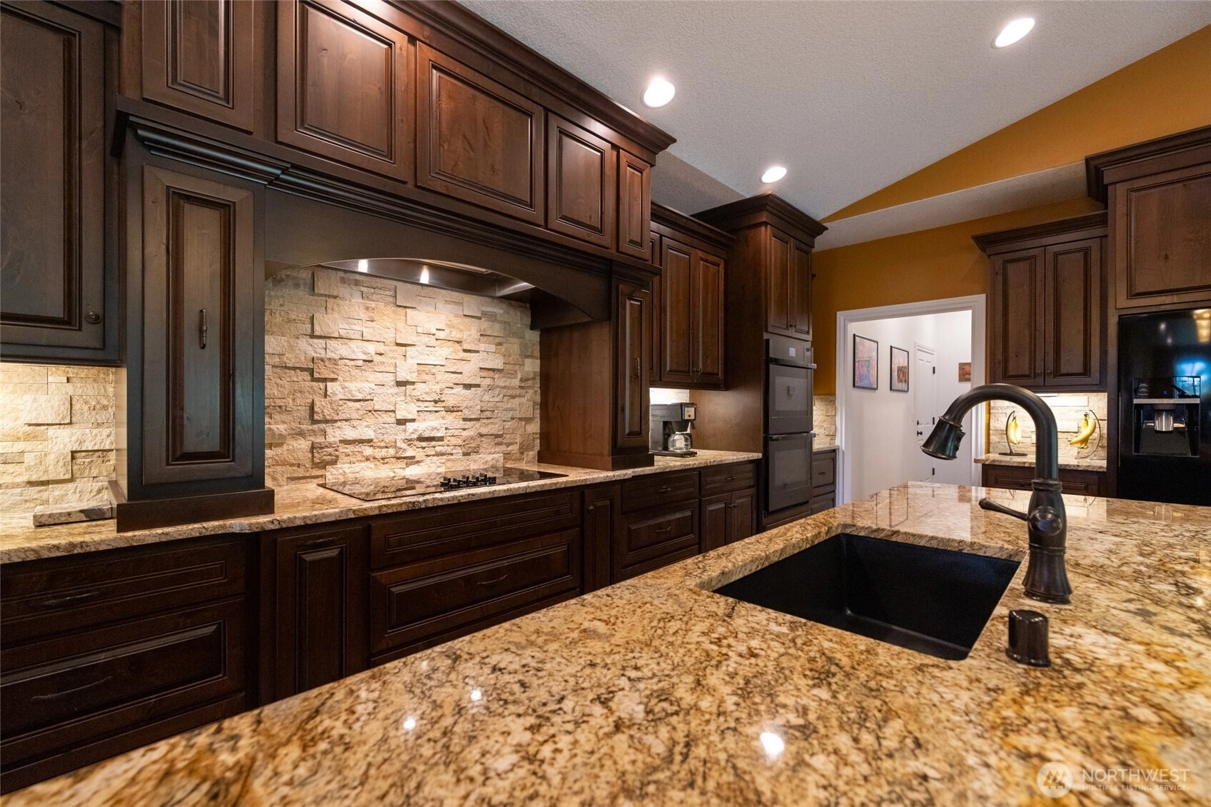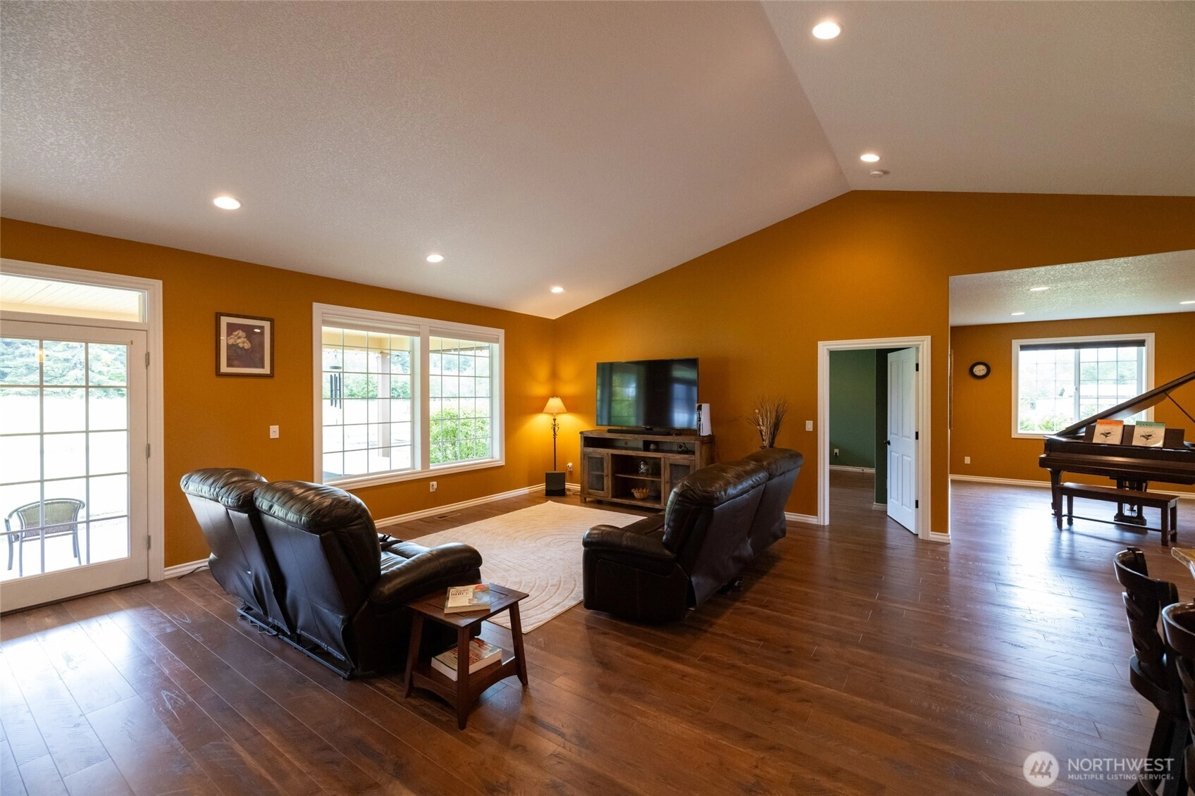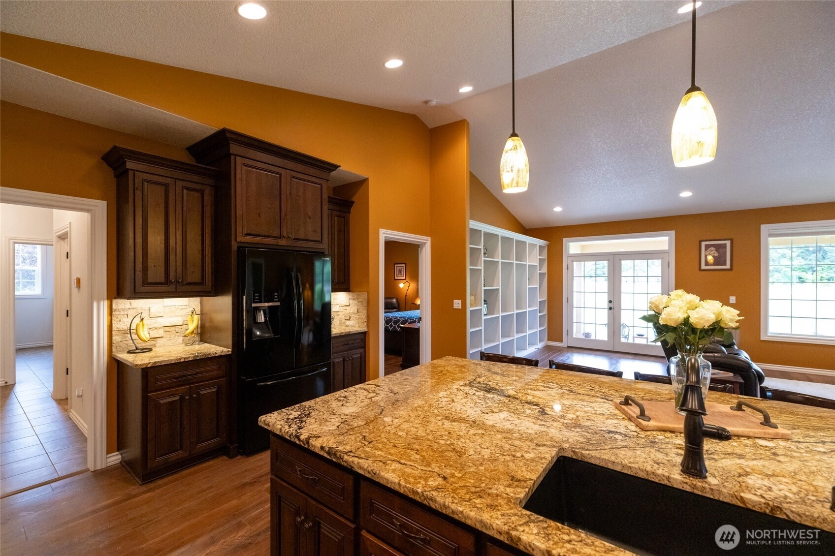 Stunning Adna area home sits on 5 manicured acres! This grand custom kitchen is going to please any chef in the house, with custom cabinets w/soft close drawers, enormous island, an abundance of counter space & storage. All this opening up to a large living room & dining room area w/an easy flow out to the covered porch area. Home has 3 bedrooms an office, built in bookshelves, large walk in pantry, vaulted ceilings & commercial grade laminate flooring. The primary has a custom shower, walk in closet & a make-up sitting area. The exterior is just as grand w/a shop, outbuildings, heat pump, garden area & a basketball court. A ground mounted 10,220w solar panel array. 22Kw standby generator and so much more.