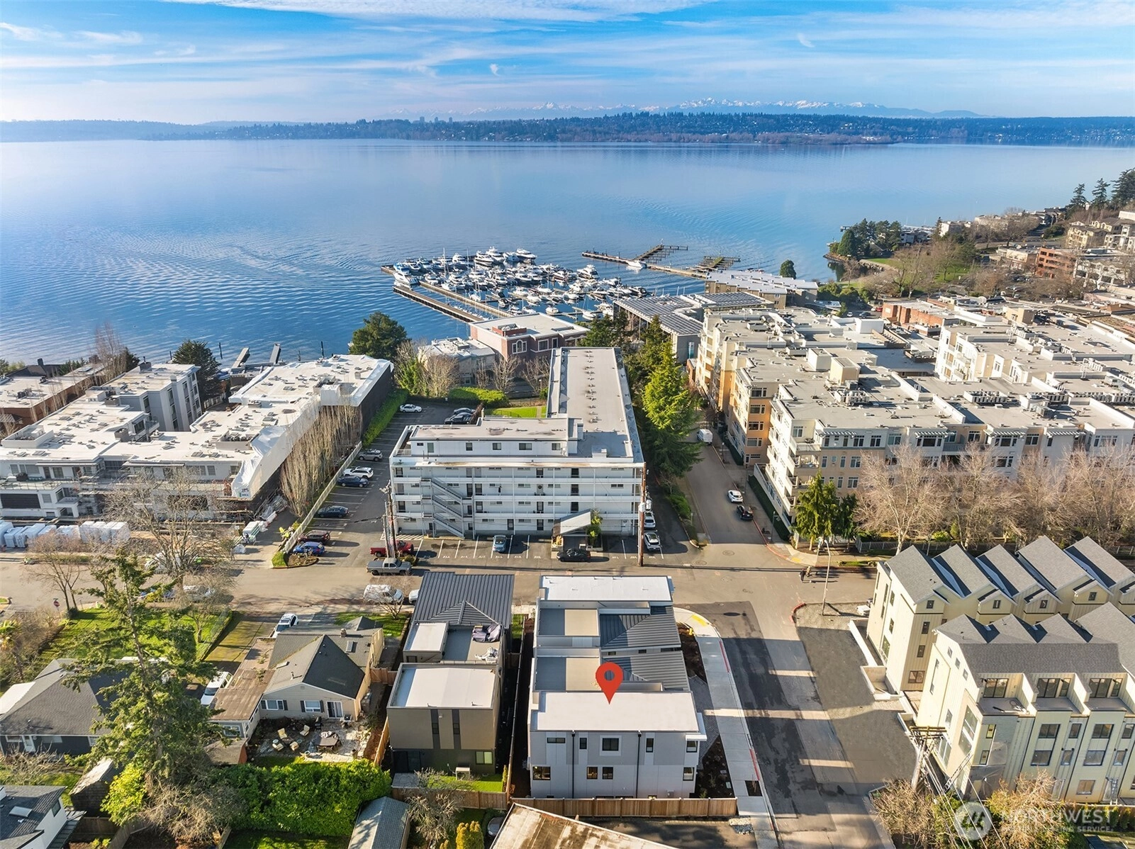 Stunning New Contemporary Home by ESP Custom Homes in coveted Moss Bay community & Lake Washington SD just 1 block from Kirkland's waterfront, marina or downtown cultural amenities. 3 Bedrooms boast their own unique charm, ample natural light, and private bathrooms w designer fixtures. Gorgeous finish quality features a modern take on the mid-century modern aesthetic. Whether you are gathering in the main floor great room & chef's kitchen, enjoying breathtaking sunset, lake, mountain & territorial views from the massive rooftop deck, or heading out on the town or lake, this home is the entertainer's dream. 4 covered parking spots with 2 car garage & EV charging for ample parking & storage. Convenient fully fenced synthetic turf dog run.