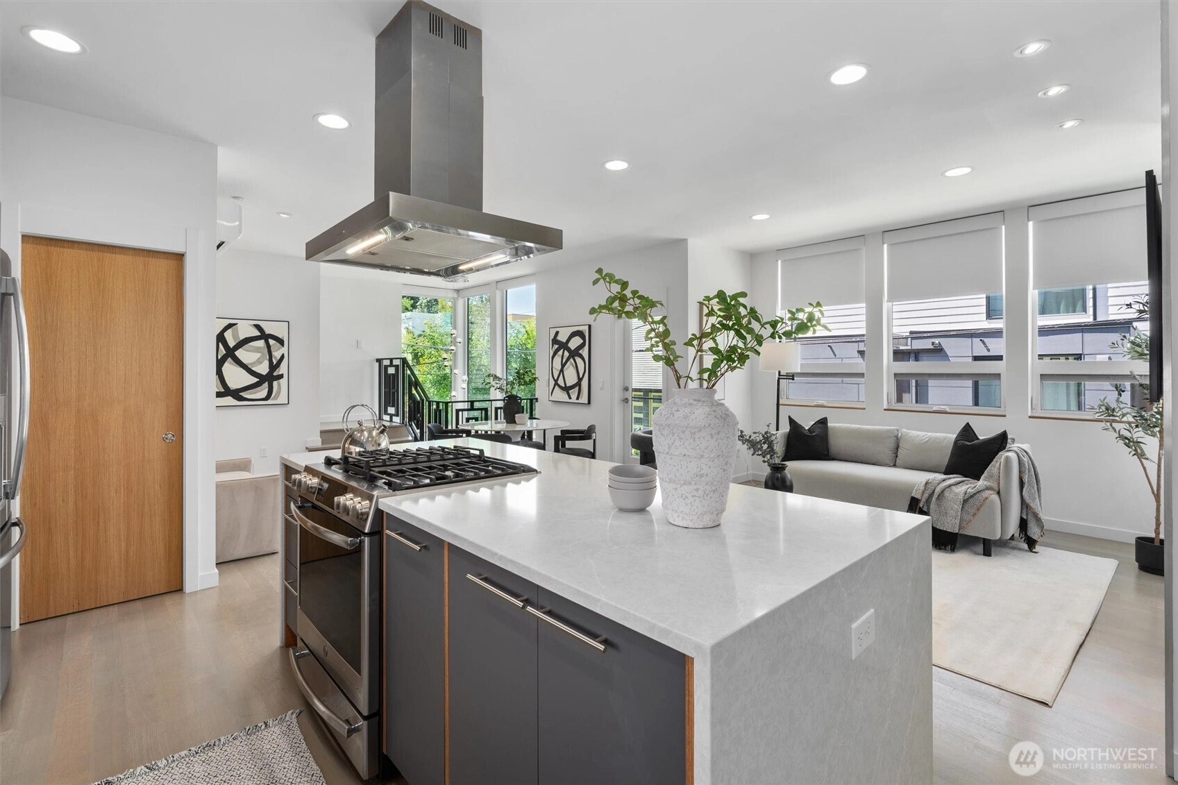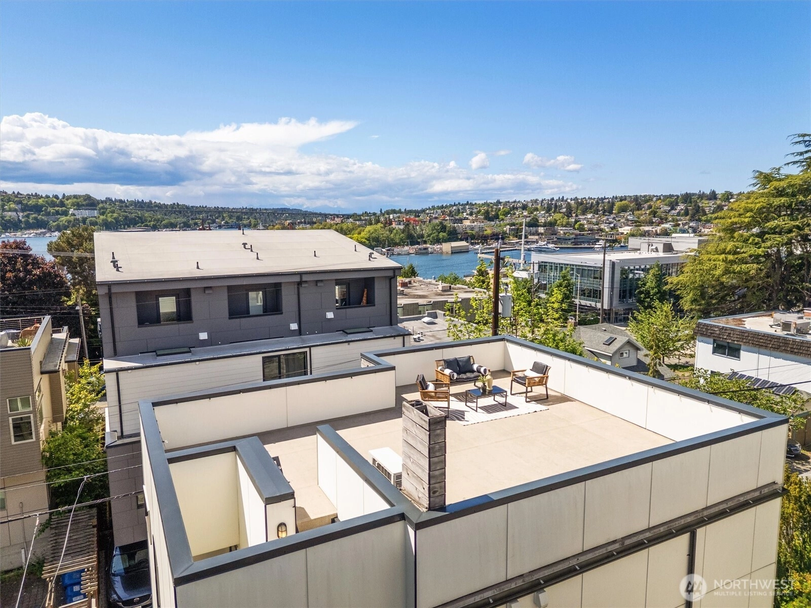 Welcome to 2619 Franklin Ave E—a modern 4-Star Built Green home in Eastlake. Enjoy stunning views of Lake Union from your private rooftop deck! Just blocks from Amazon, Google, MOHAI, and waterfront dining, the location is unbeatable. Inside, solid oak floors, a marble-surround gas fireplace, and expansive windows create a warm, light-filled space. The gourmet kitchen features GE Profile appliances and smart home tech throughout. The primary suite offers more views, a California closet, and a spa-like bath—your perfect urban retreat. The home has been pre-inspected for your peace of mind.