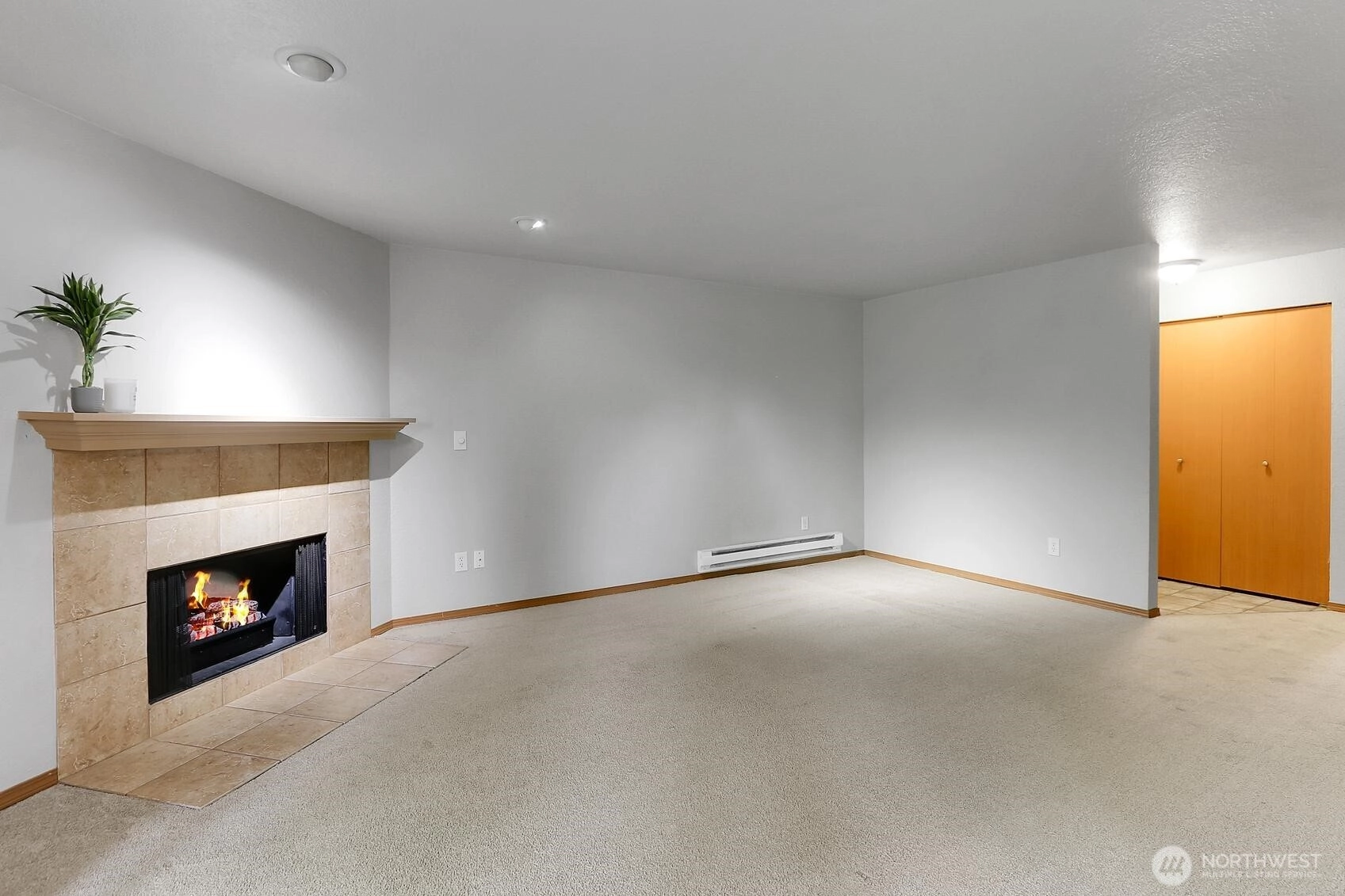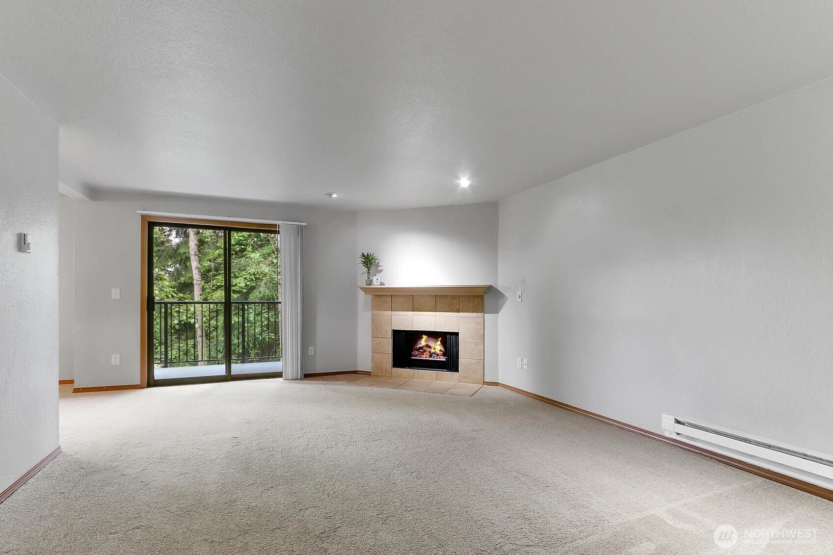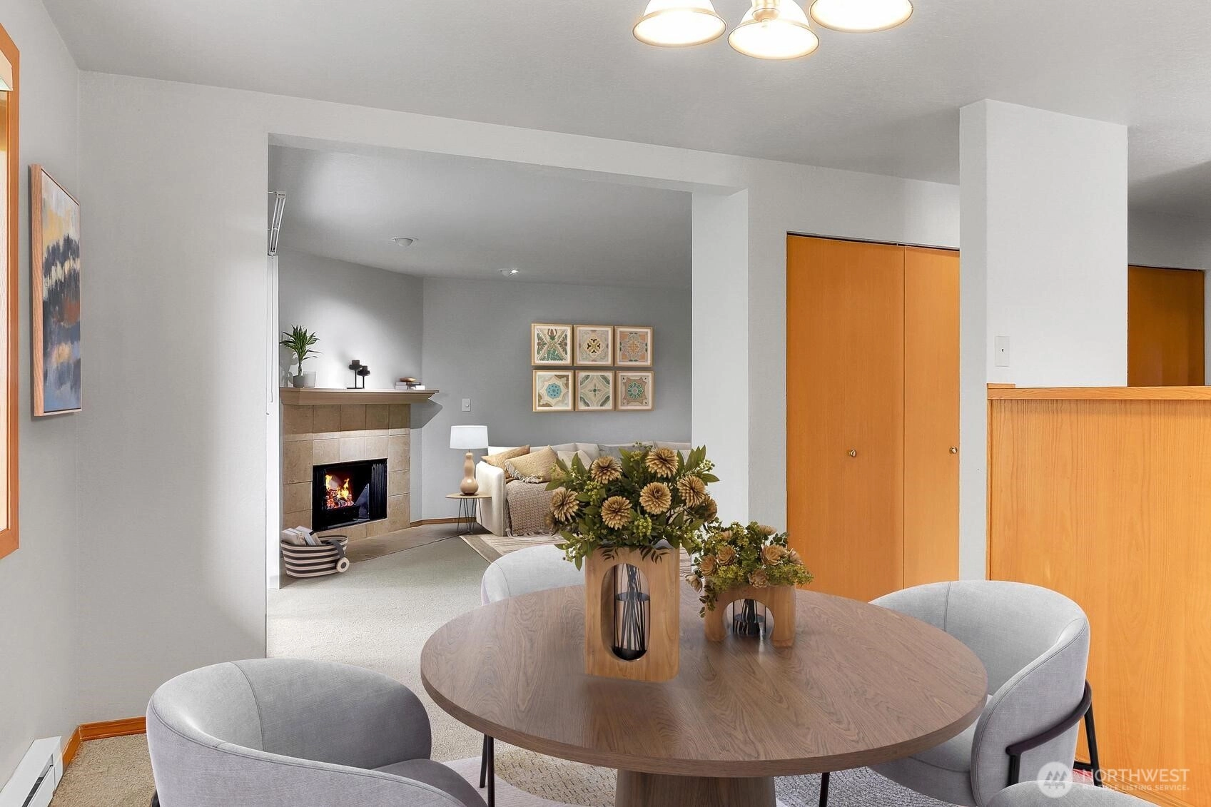 Welcome to Northridge! Nestled in an amazing location with easy commutes, this spacious 2-bedroom, 1.75 bath single level condo is close to vibrant shopping & dining. Enjoy the generous living room which flows to a designated dining space-perfect for entertaining, & open concept kitchen. Extra pantry/closet spaces allow for ultimate organization. Unwind in the primary suite featuring an ensuite bathroom. The secondary bedroom has easy access to the full Hall-bathroom. Cozy up to the living room fireplace & enjoy the serene tree lined view from the long deck, w/ additional storage. Opportunity for investors with no rental cap, 2 pkg spaces, HOA covers Water, Sewer & Garbage. No special assessments. Your blend of comfort & convenience awaits!